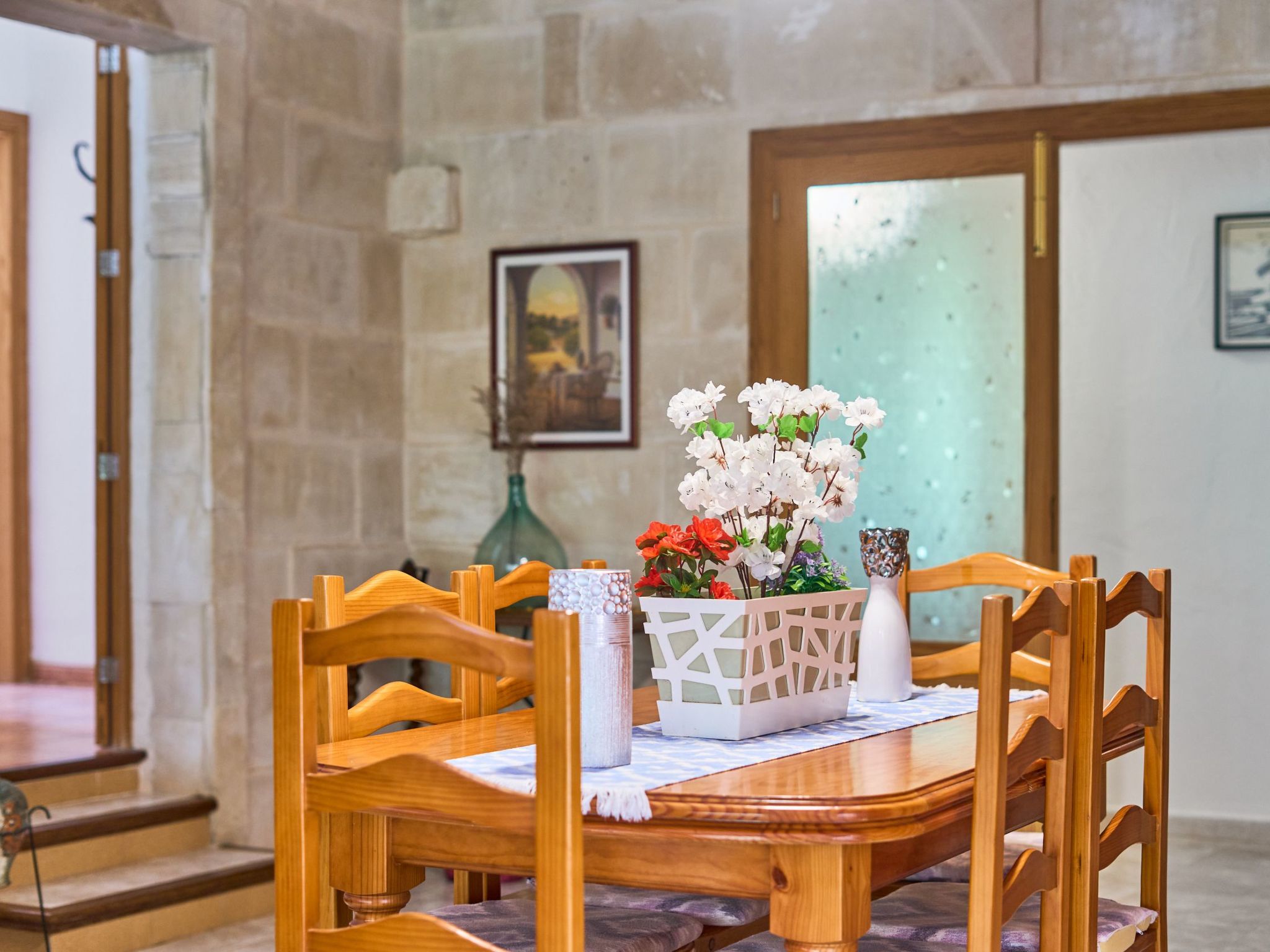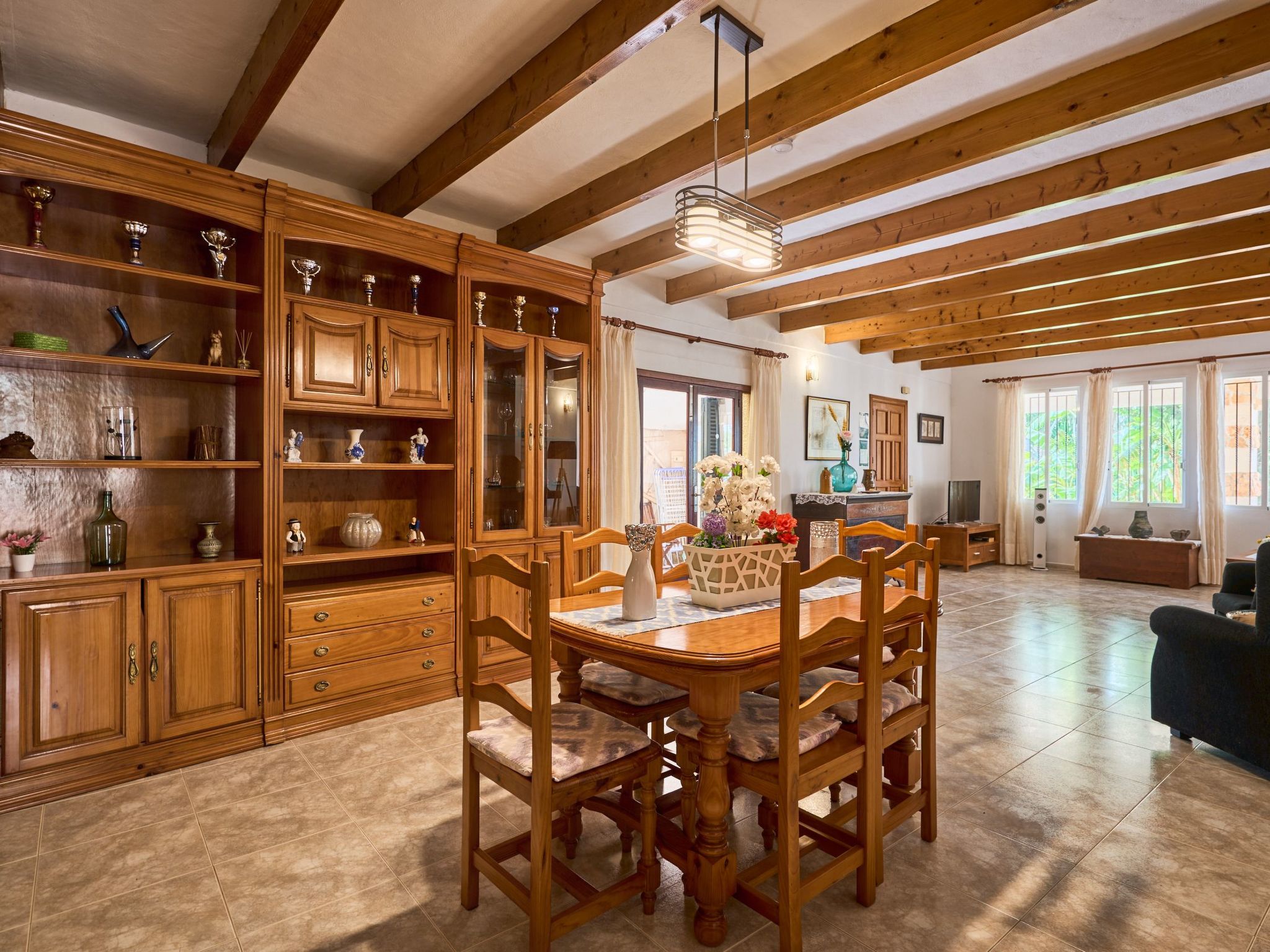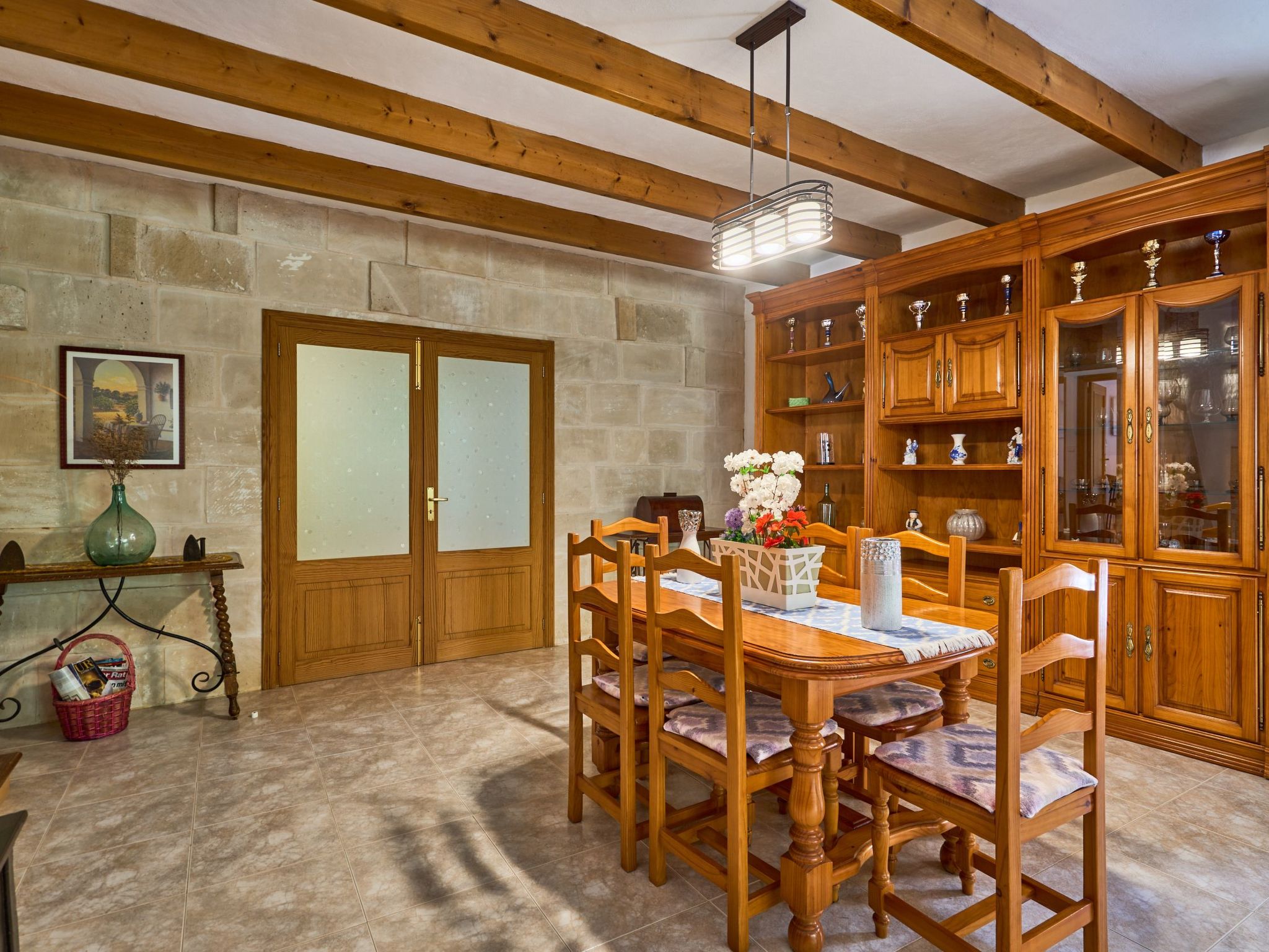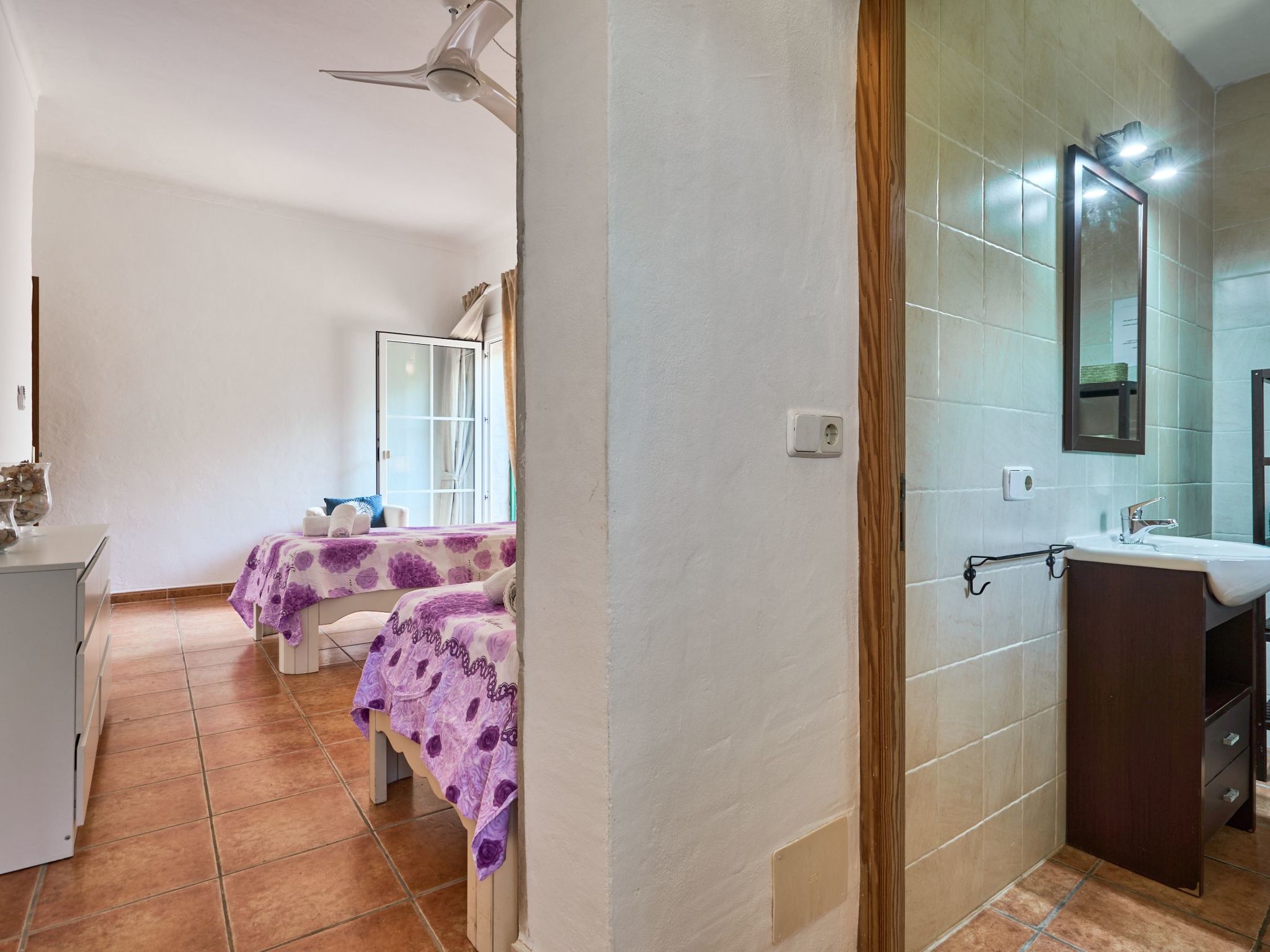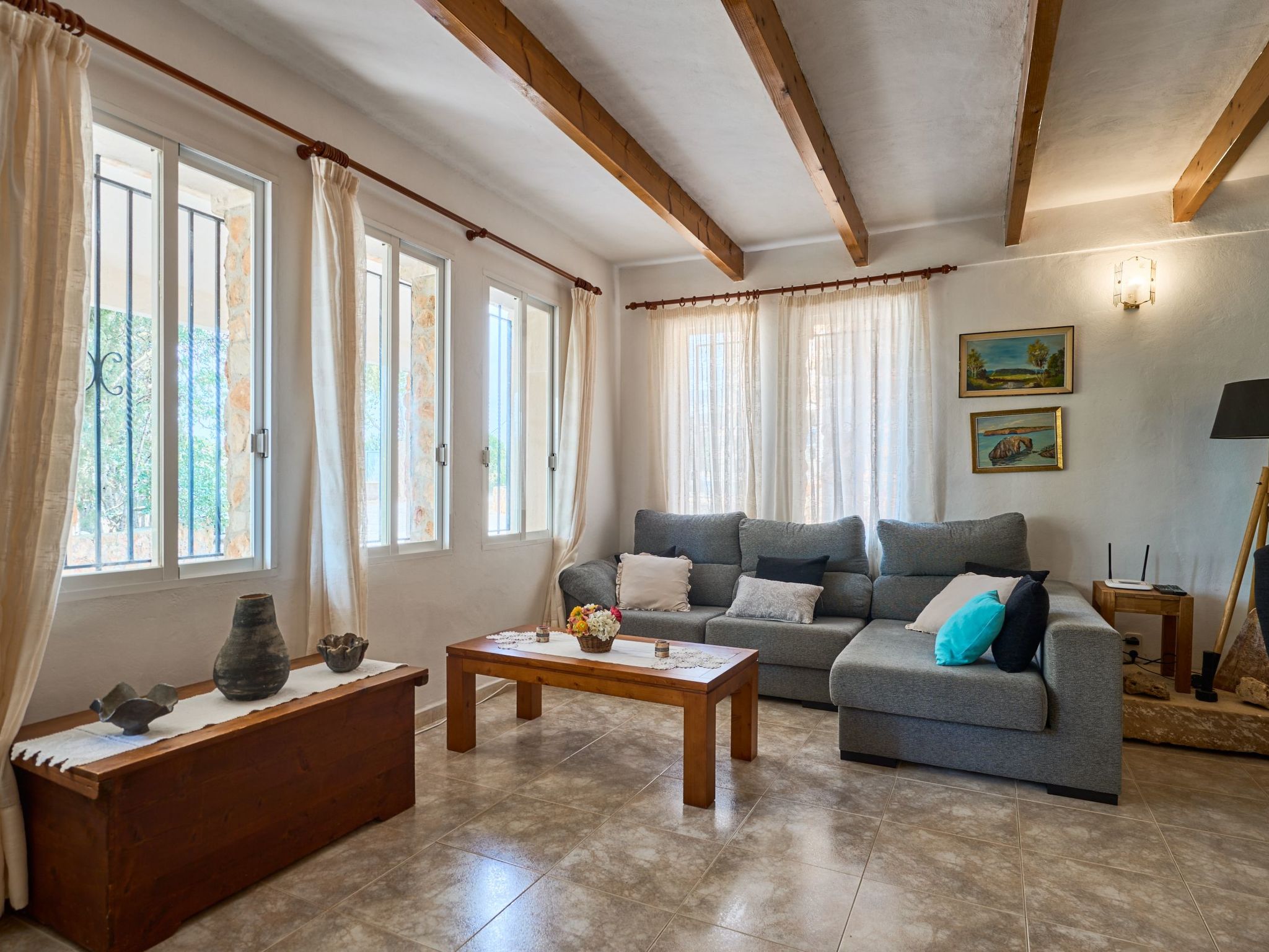 Beautiful single-storey stone finca with large living/dining area and adjoining spacious kitchen in a quiet location in the centre of Portocoloms. The finca offers 5 bedrooms, three with double beds, two with 2 single beds each. Two rooms share a full bathroom. The other three bedrooms each have an en suite shower room.