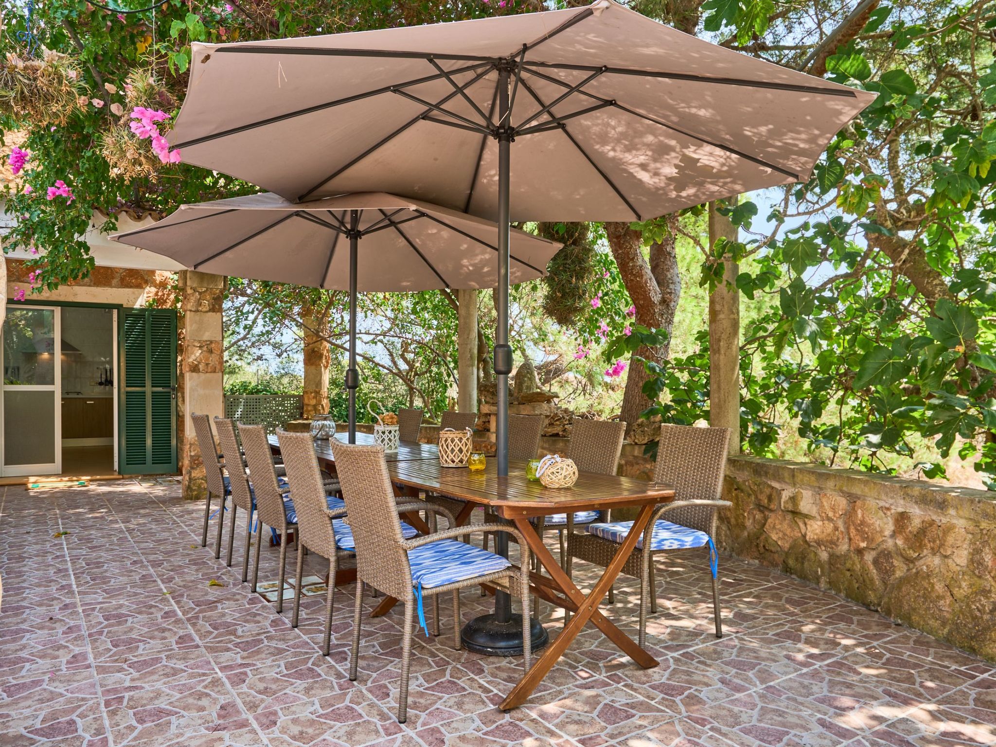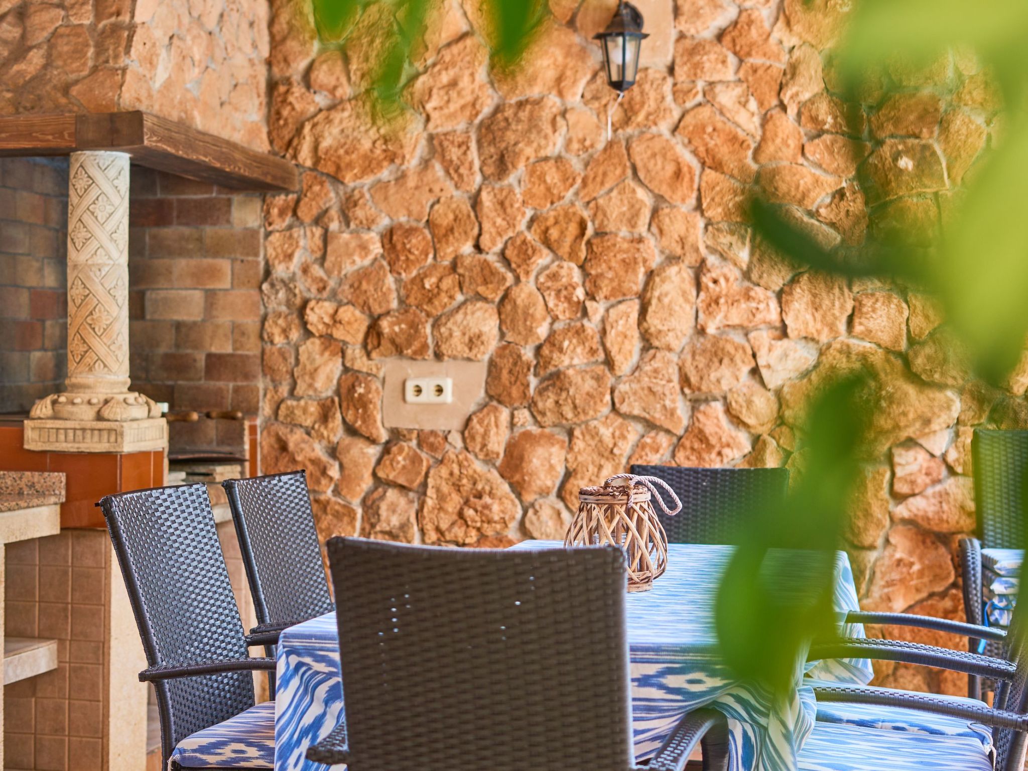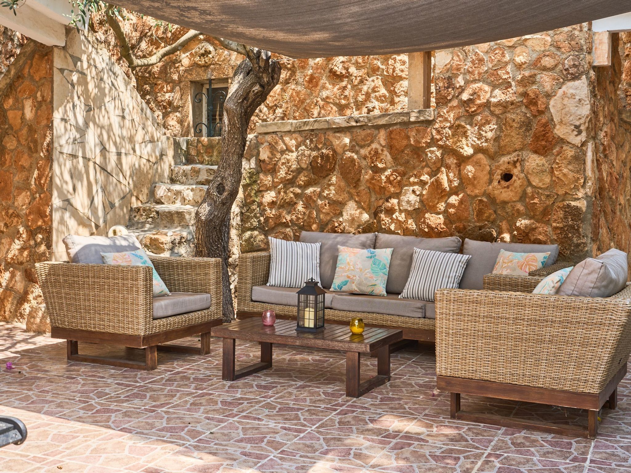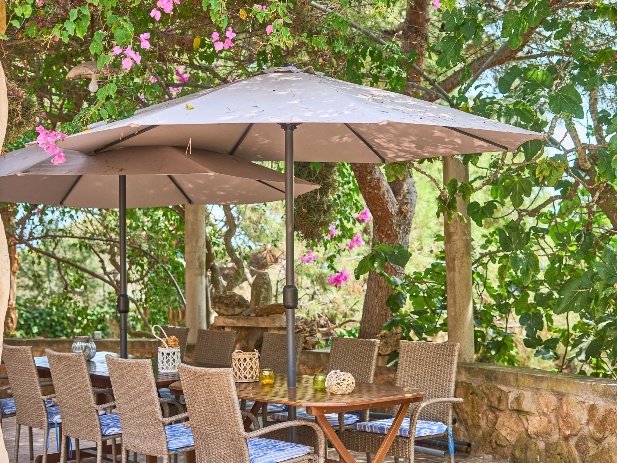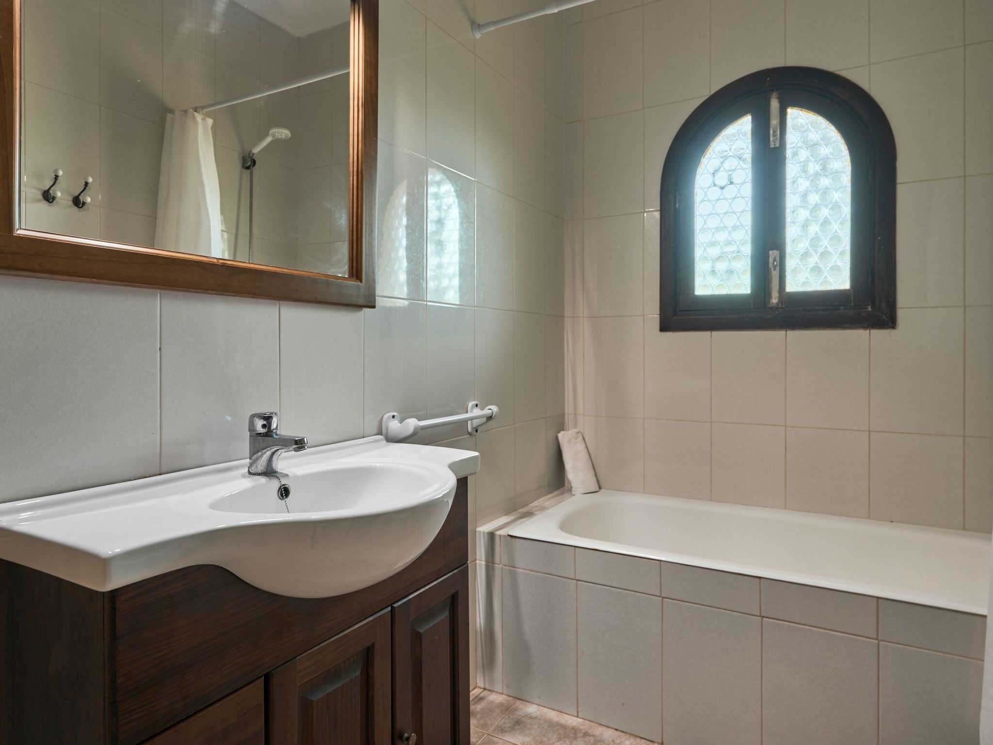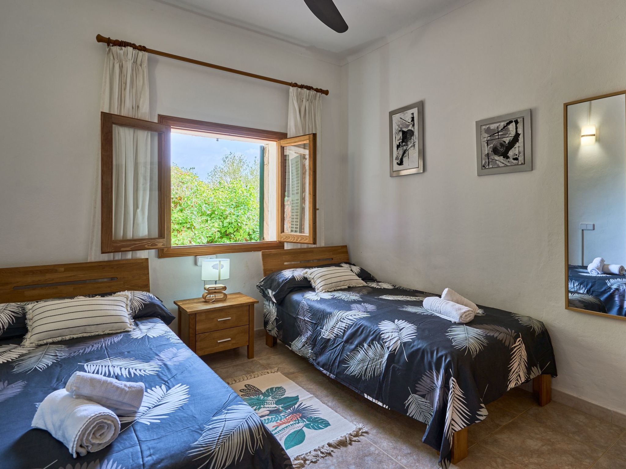 Beautiful single-storey stone finca with large living/dining area and adjoining spacious kitchen in a quiet location in the centre of Portocoloms. The finca offers 5 bedrooms, three with double beds, two with 2 single beds each. Two rooms share a full bathroom. The other three bedrooms each have an en suite shower room.