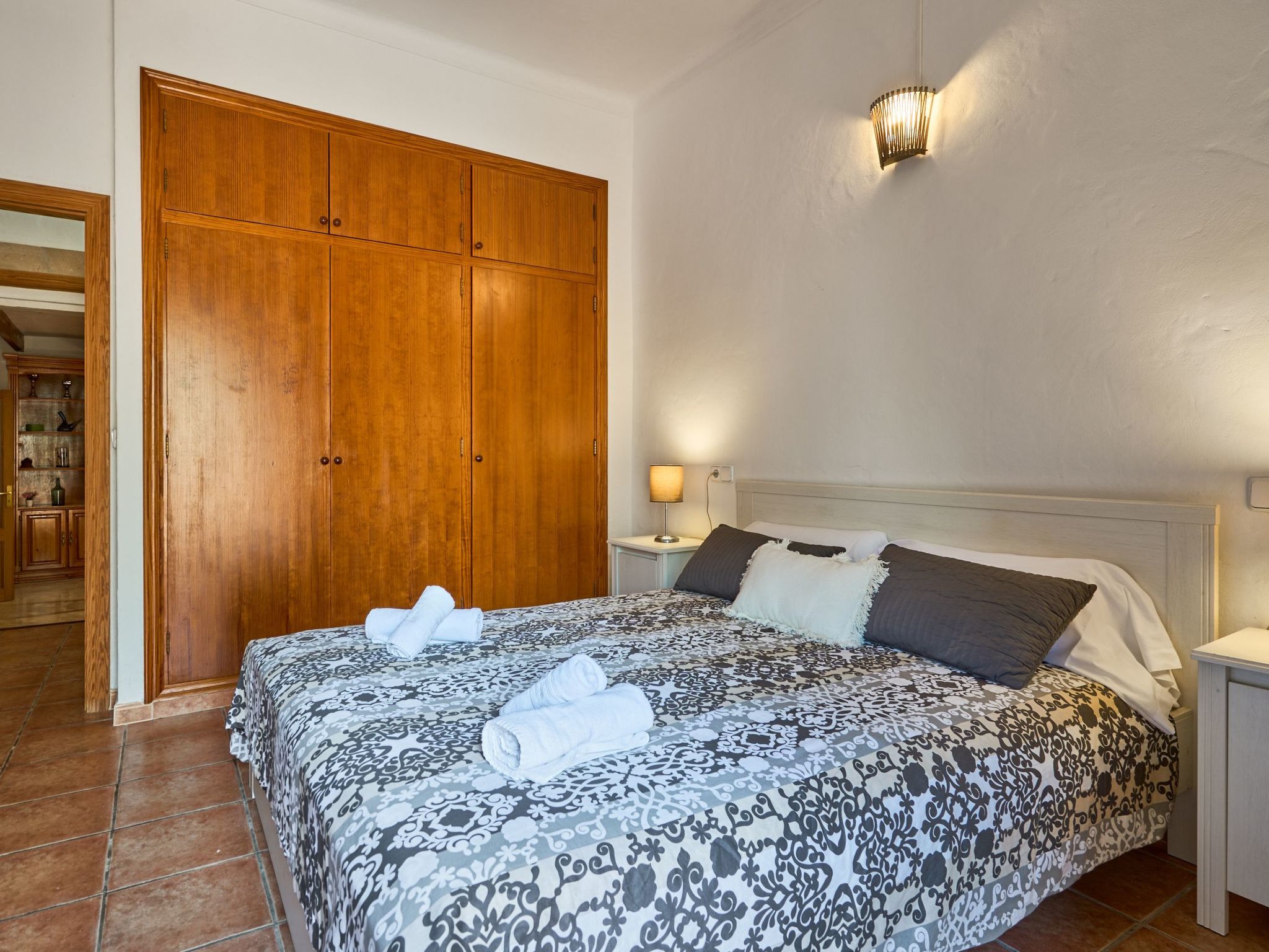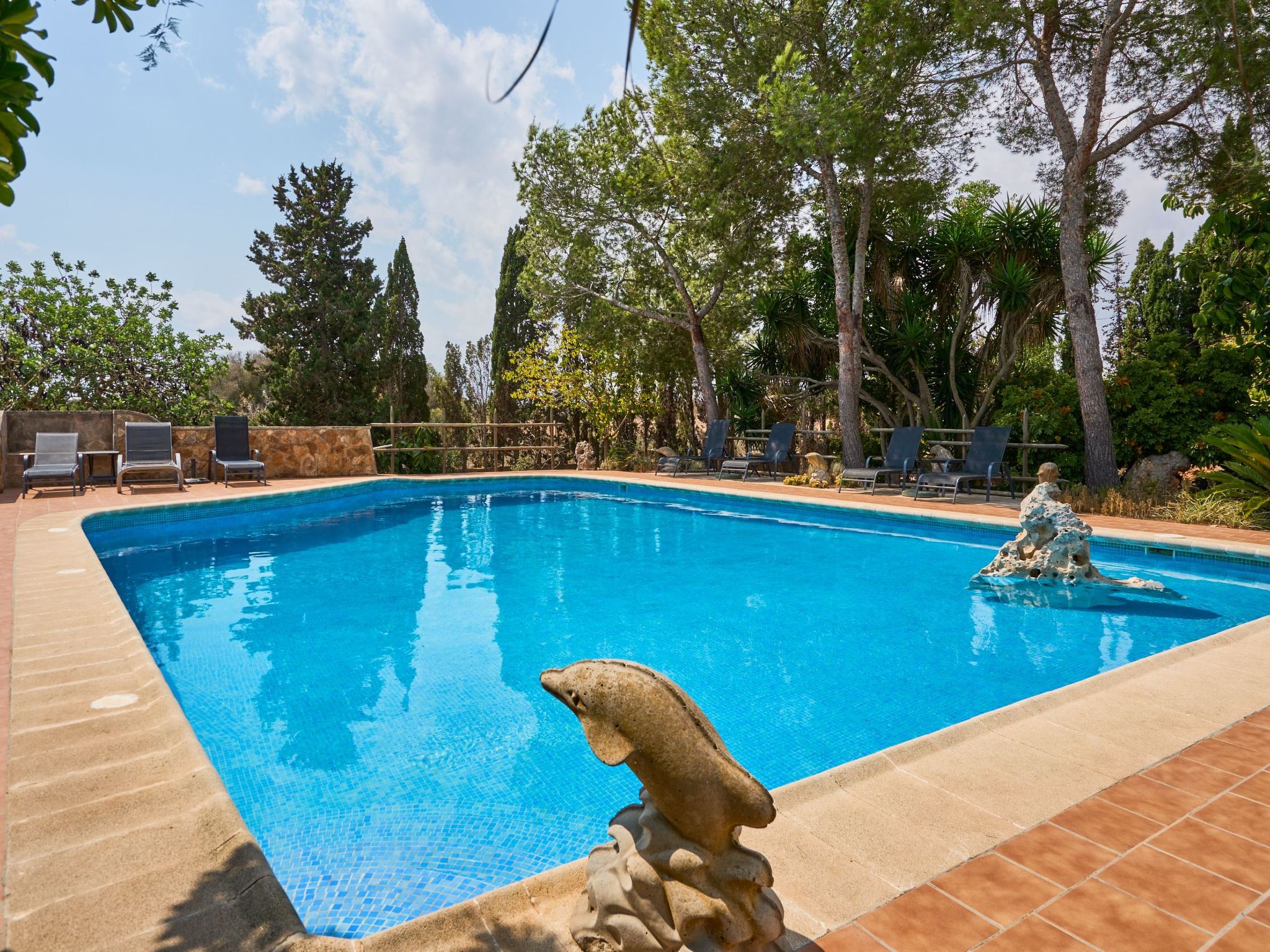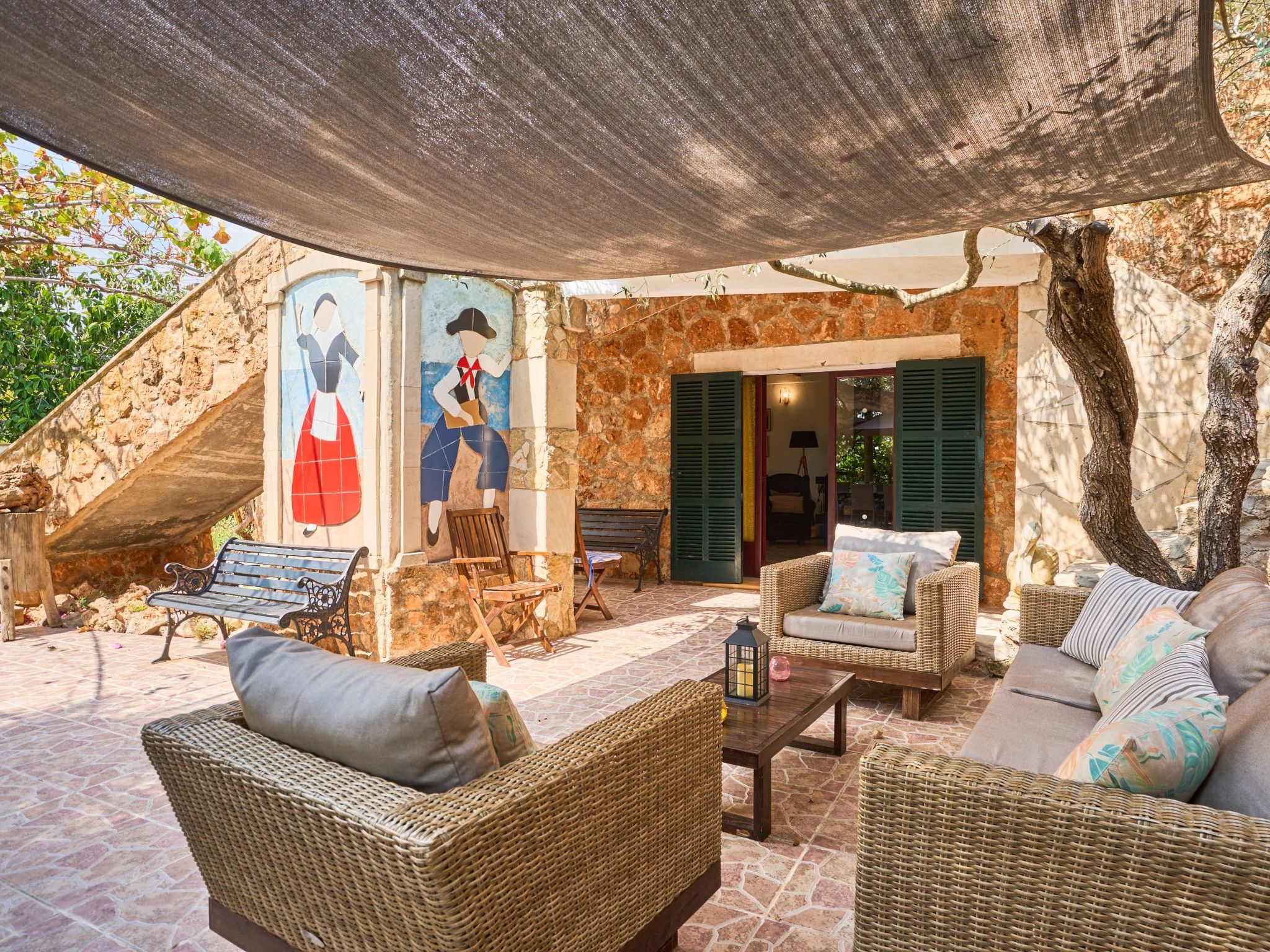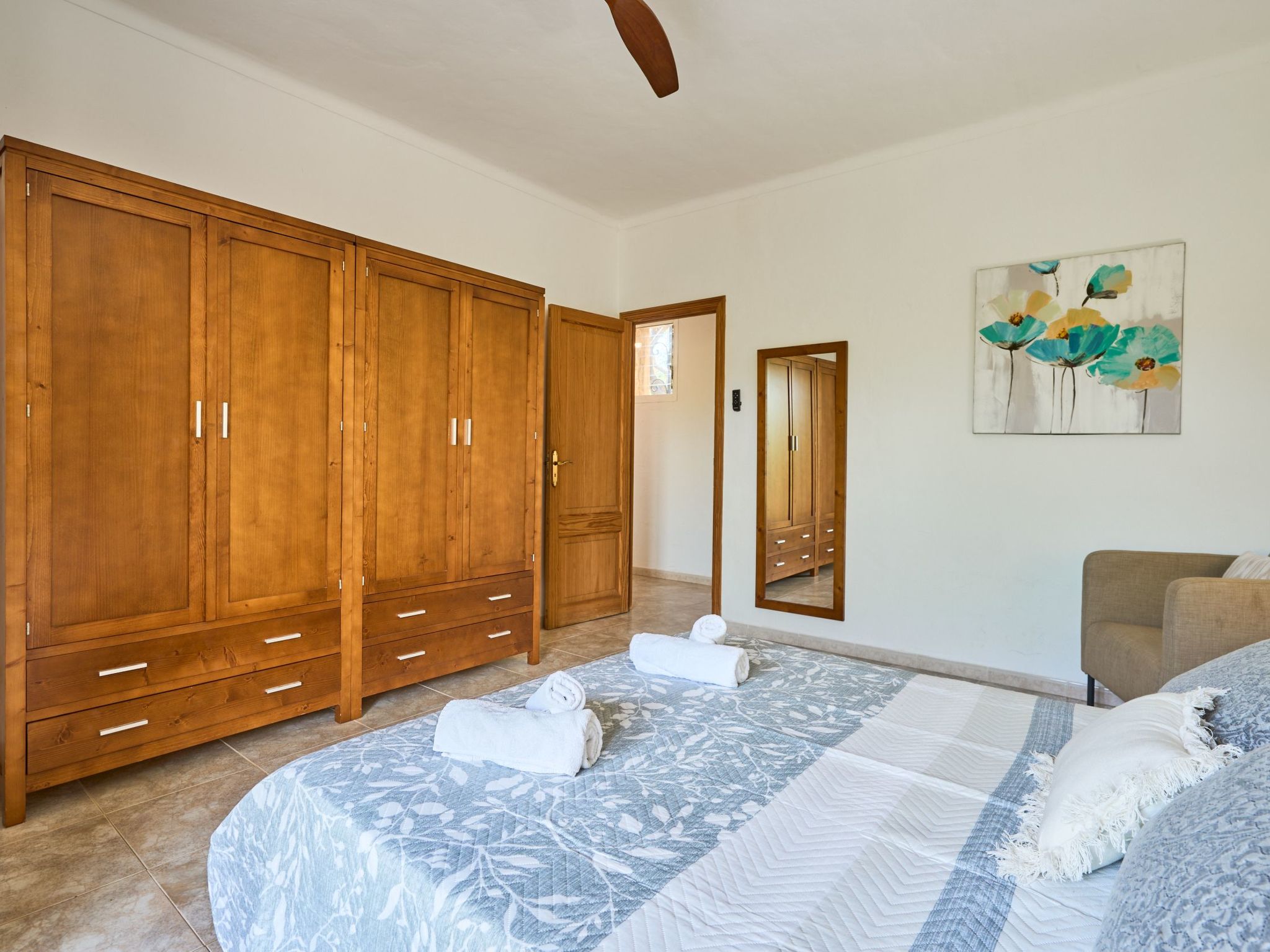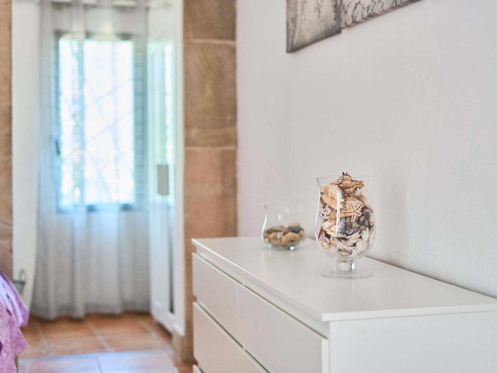 Beautiful single-storey stone finca with large living/dining area and adjoining spacious kitchen in a quiet location in the centre of Portocoloms. The finca offers 5 bedrooms, three with double beds, two with 2 single beds each. Two rooms share a full bathroom. The other three bedrooms each have an en suite shower room.