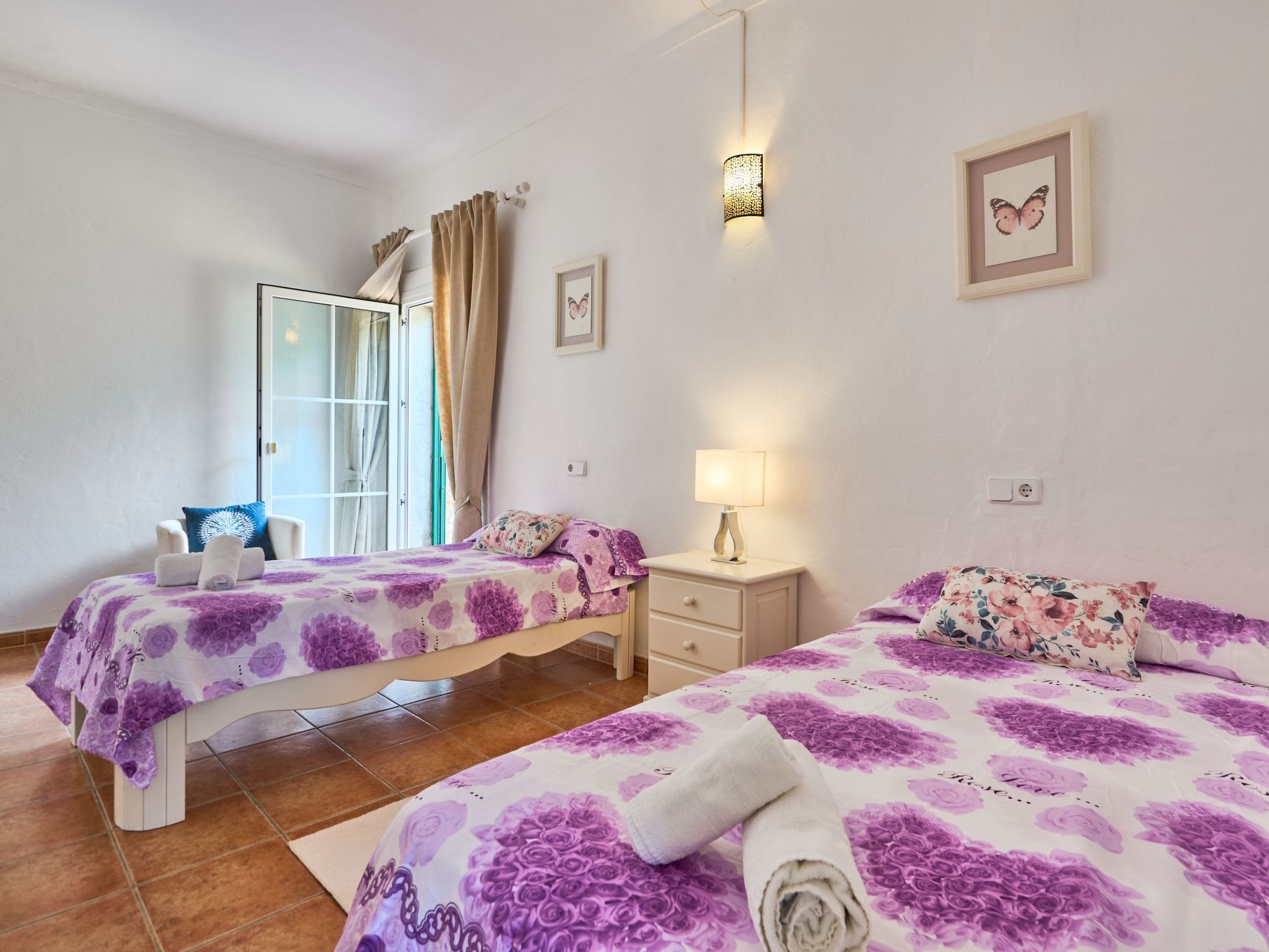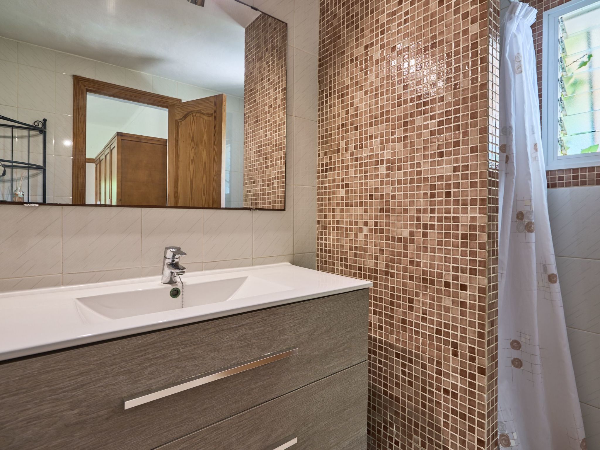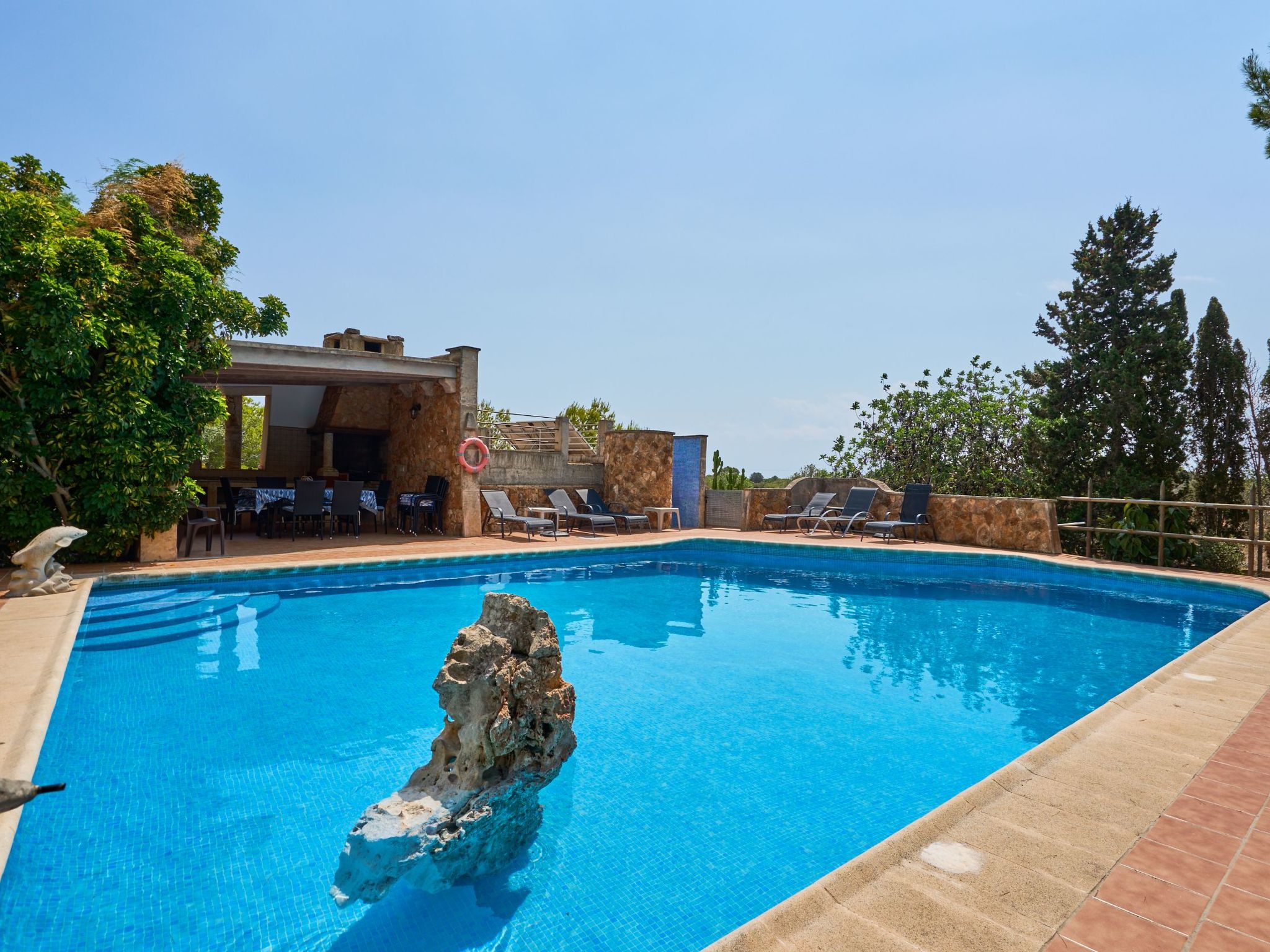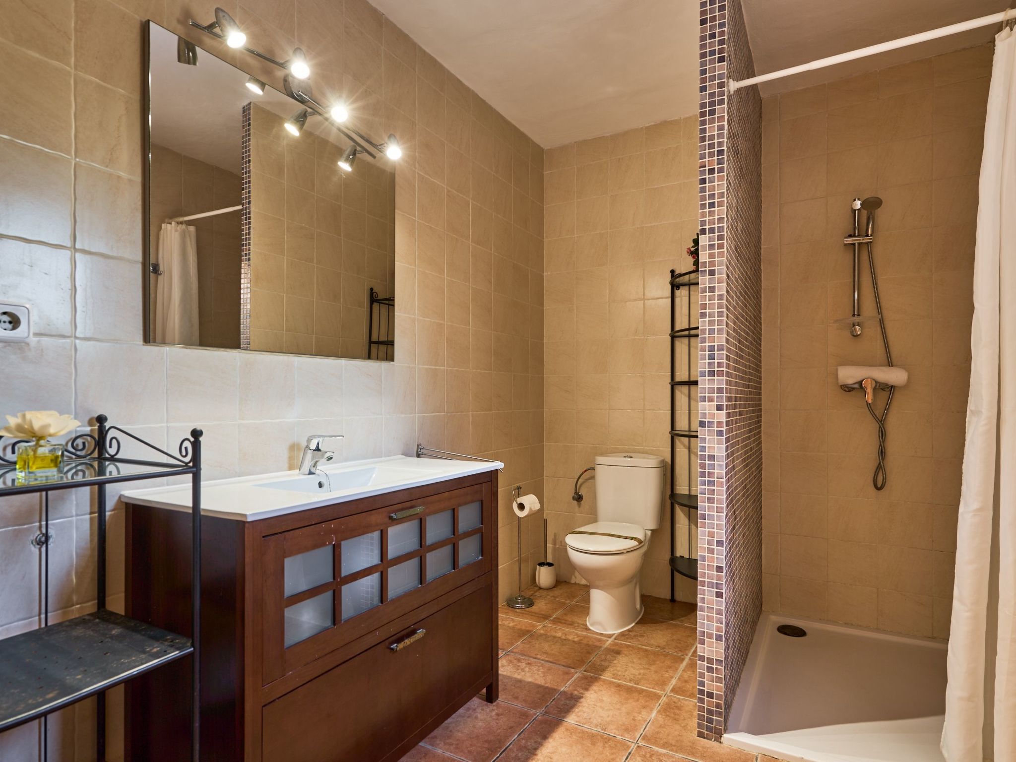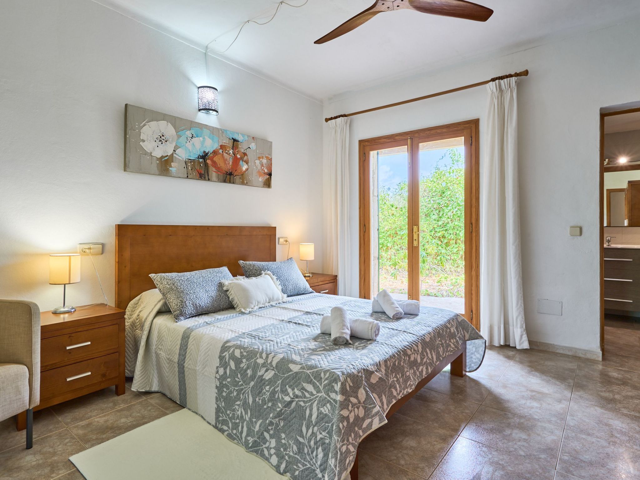 Beautiful single-storey stone finca with large living/dining area and adjoining spacious kitchen in a quiet location in the centre of Portocoloms. The finca offers 5 bedrooms, three with double beds, two with 2 single beds each. Two rooms share a full bathroom. The other three bedrooms each have an en suite shower room.
