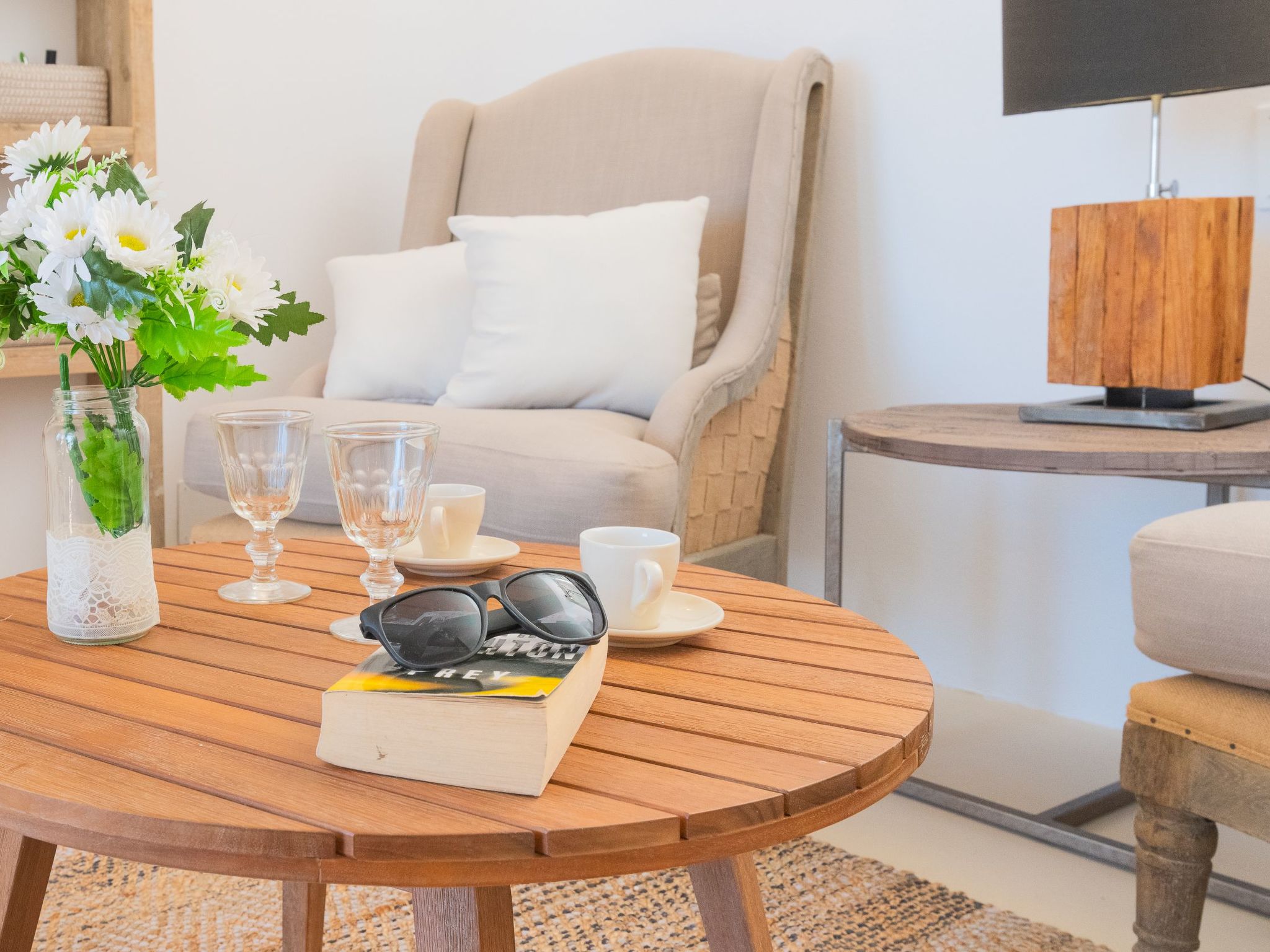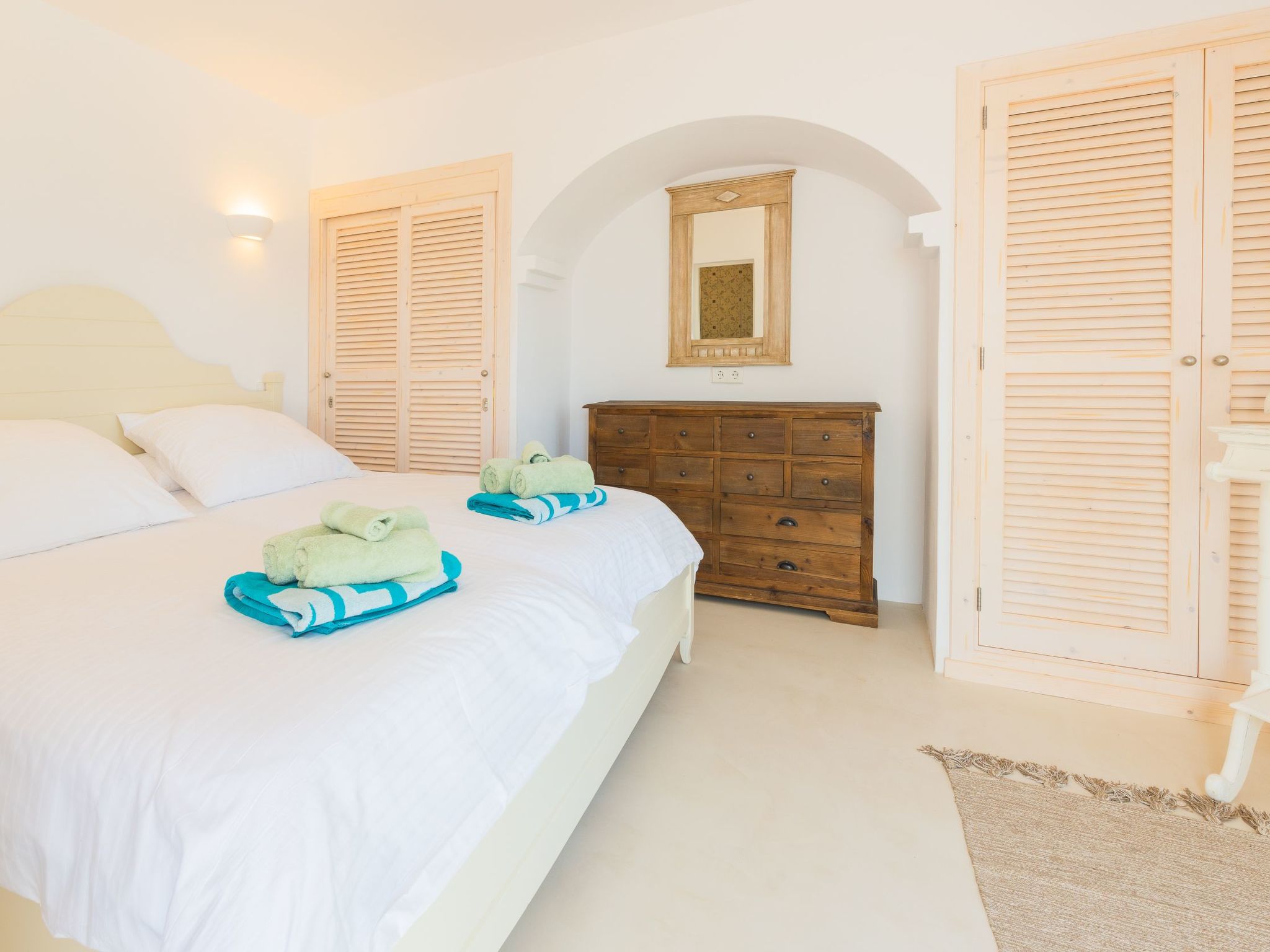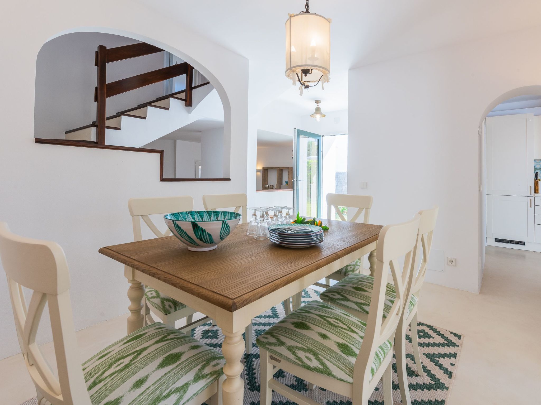The house is spread over two floors, the furniture in neutral colours with accentuated splashes of colour gives the interior of the house a cosy, relaxing atmosphere. The bathrooms and kitchen have a vintage style and the ground floor has a kitchen with pantry, where the washing machine and tumble dryer are located. The dining room offers access to a terrace overlooking the garden. The living area is very cosy and has a reading corner, both offer access to the main covered terrace with views of the pool and the sea. A guest toilet completes the ground floor. There are three double bedrooms on the floor. One of them offers an en suite shower room and a private balcony with incredible sea views. The other two bedrooms share a separate bathroom with bathtub and access to a balcony overlooking the garden.