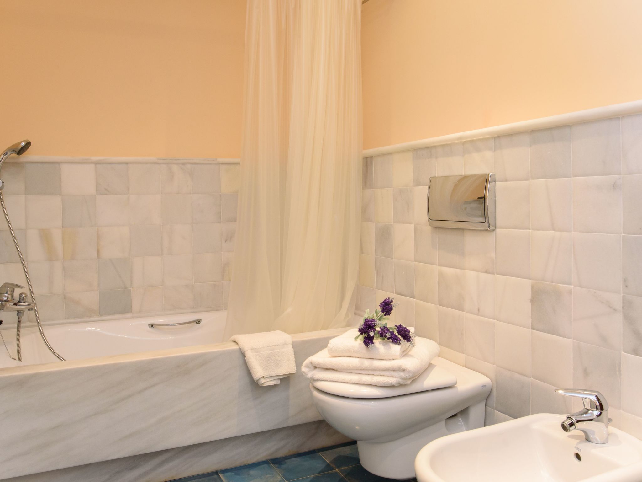 In the middle of the beautiful garden is the 13 x 6 metre pool, surrounded by a wooden terrace, which allows the pool to be fenced off if desired and offers space for various loungers. A spacious terrace adjoins the living room, is covered and offers plenty of space for a large dining table and various patio furniture, the ideal area for long meals in the balmy summer air, for chilling out, reading, listening to music, everything you need for a relaxing holiday.