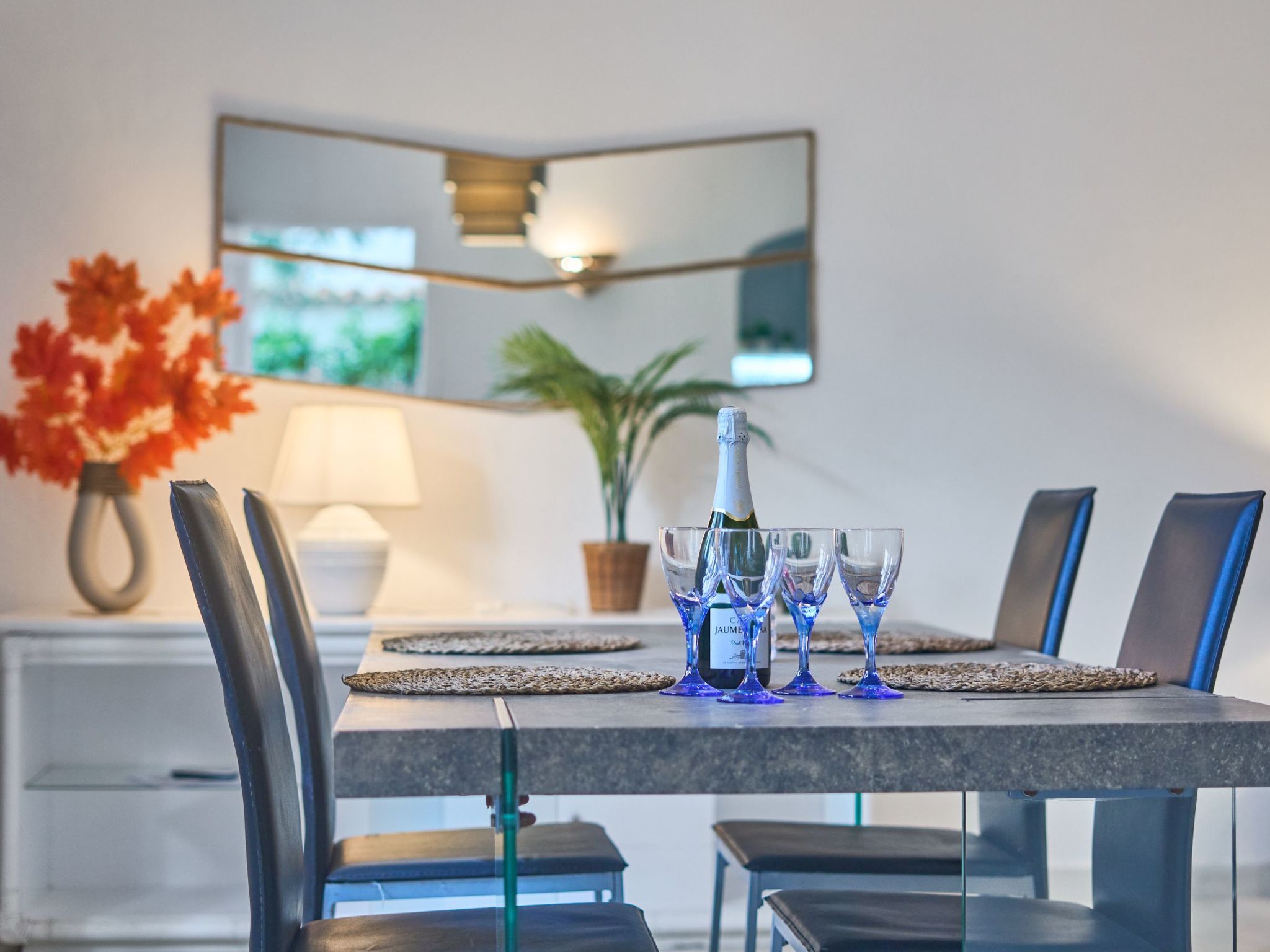 Charming Ibiza-style house with two bedrooms for rent in an ideal location in a beautiful and quiet area of Cala D'Or, just 300 metres from the sandy beach of Cala D'Or. The centre of Cala D'Or with leisure areas, restaurants and shops is within easy walking distance. The marina of Cala D'Or with restaurants and cafés is 800 metres away.