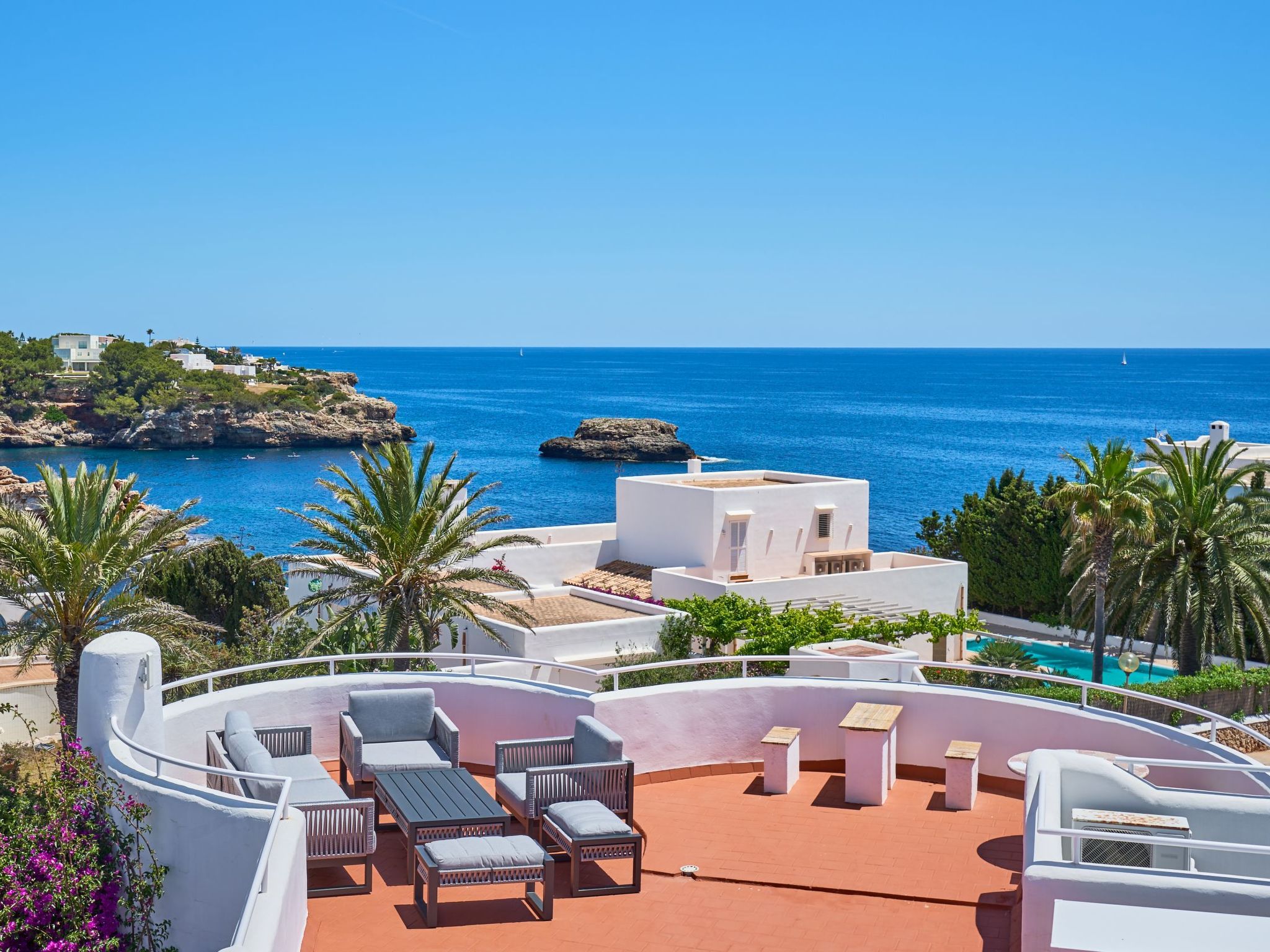 La villa offre beaucoup de lumière naturelle et est construite sur deux niveaux indépendants dans le style ibicenco.
