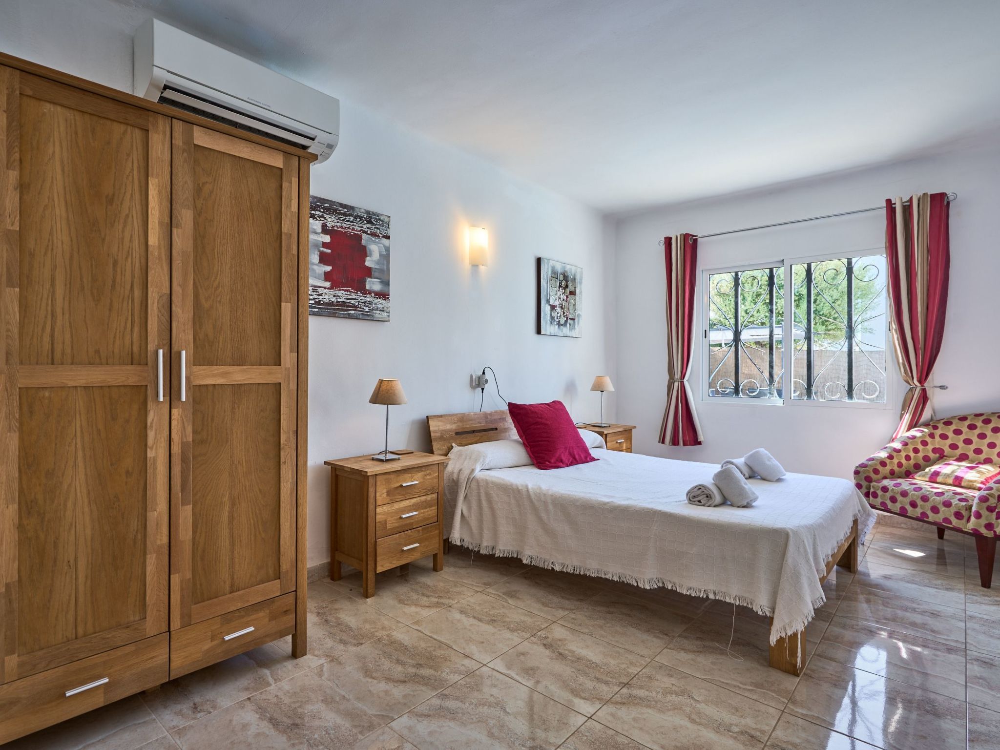 In the front area you will find a covered veranda with dining table. Artificial grass garden with table tennis table. To the side is a parking space for 2 to 3 hire cars. At the rear of the house is the beautiful pool. A pergola with another dining table and a charcoal barbecue round off this area. There are 8 sun loungers for sun worshippers.