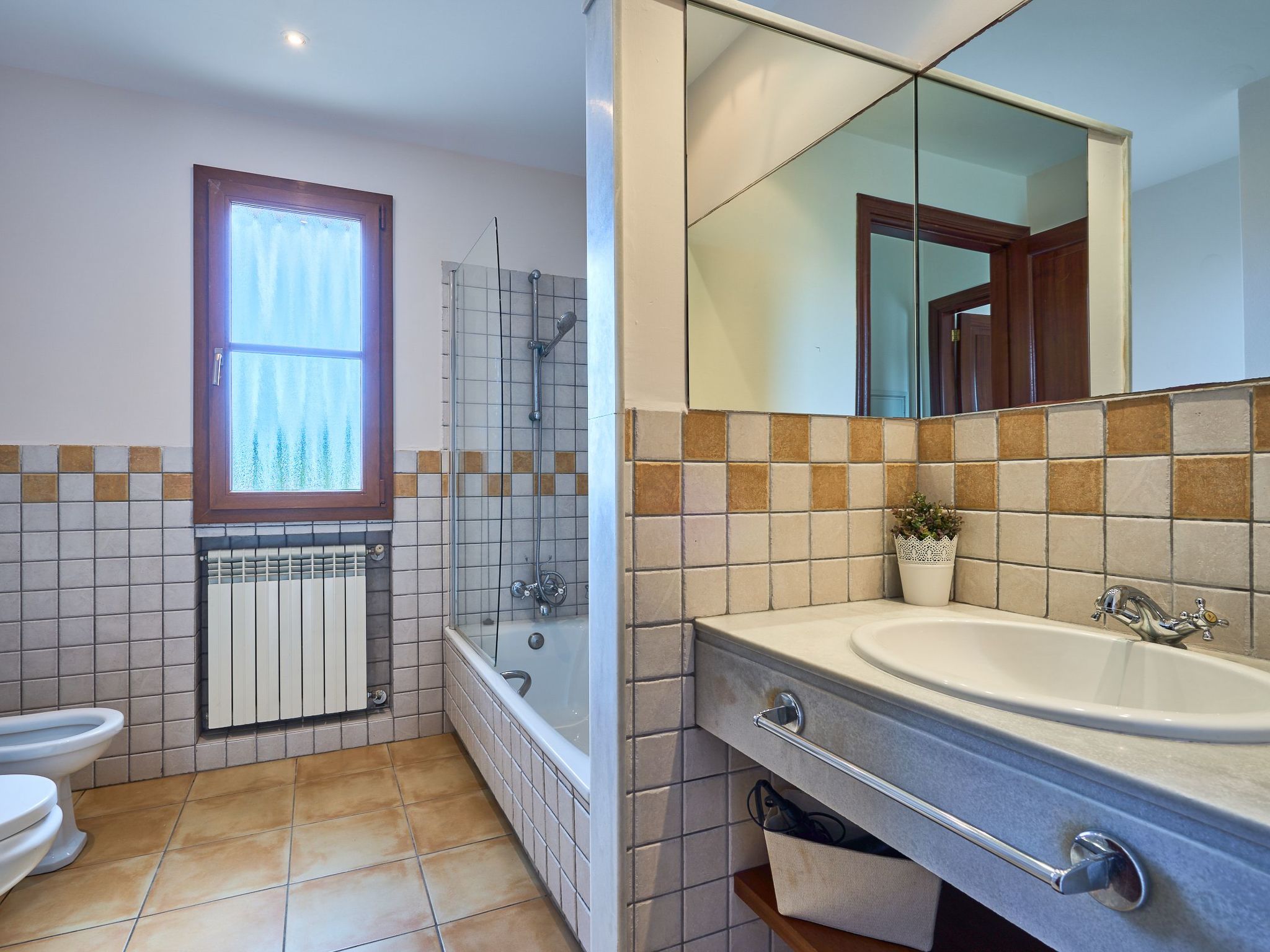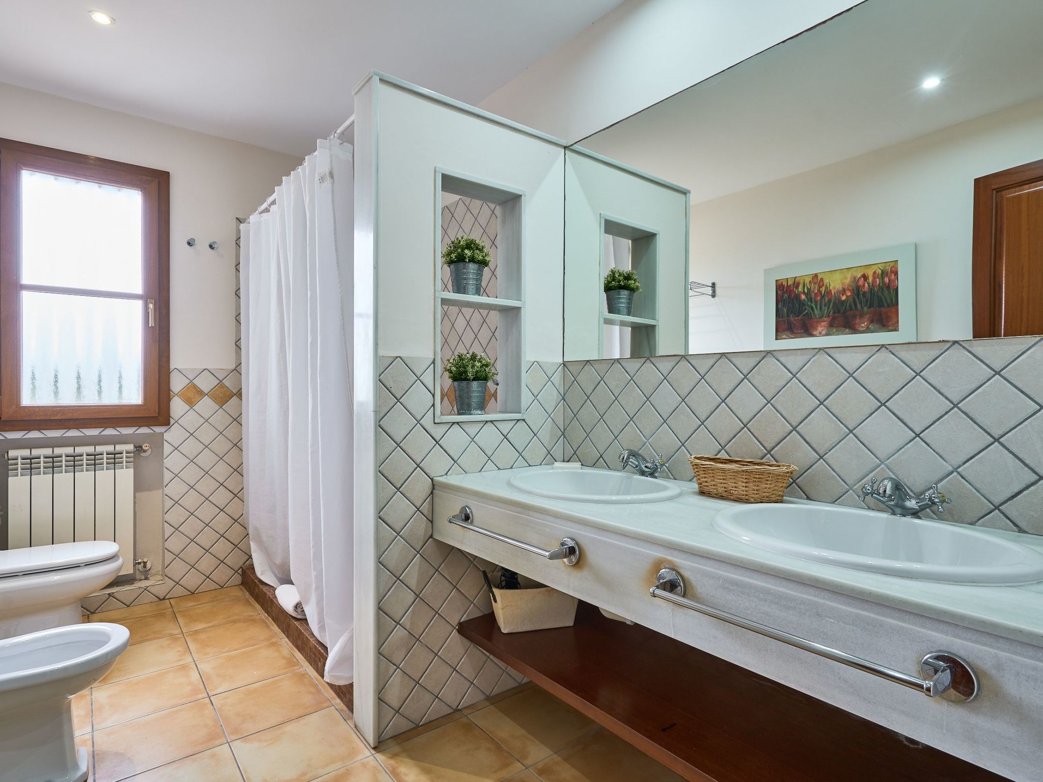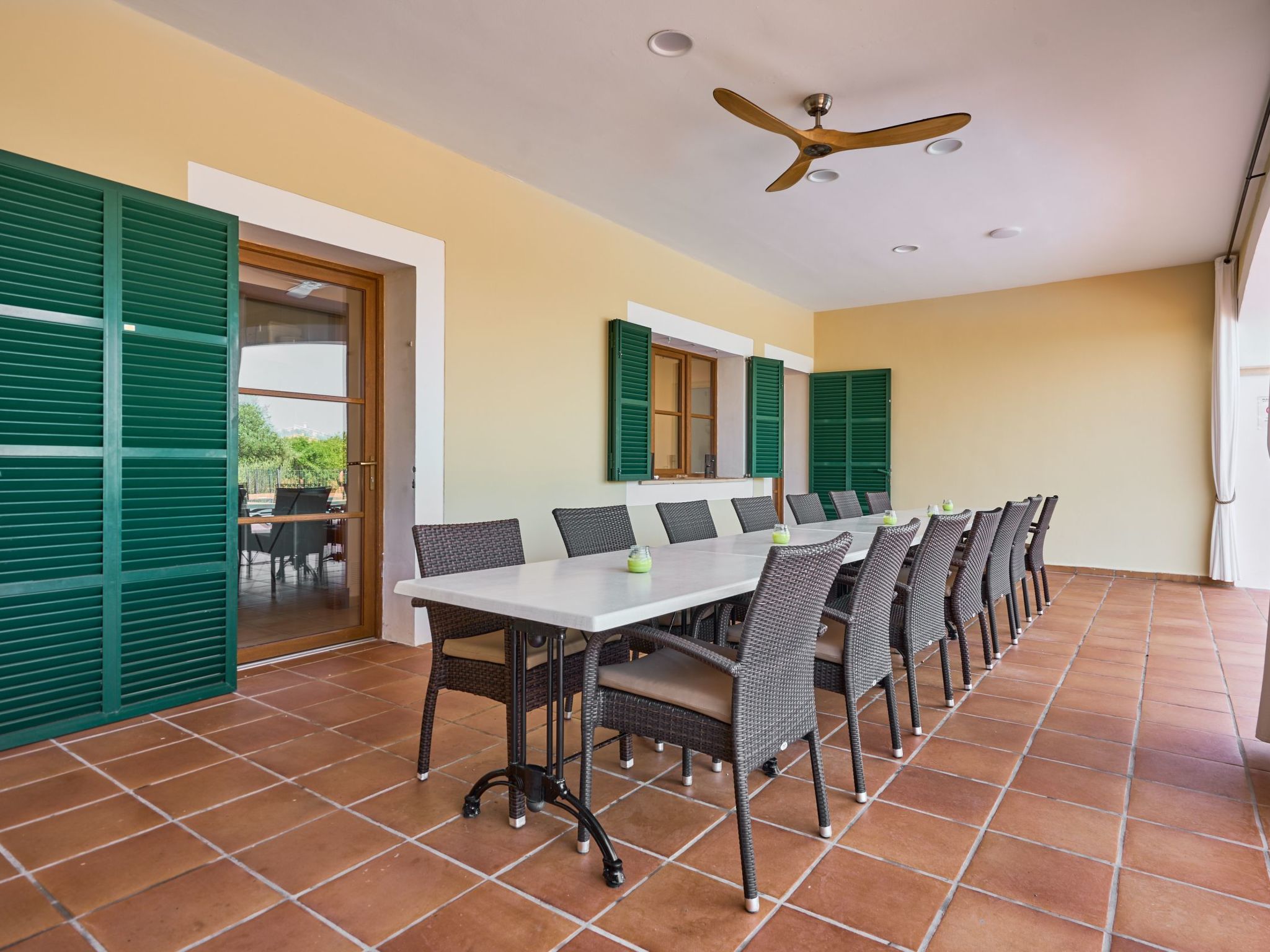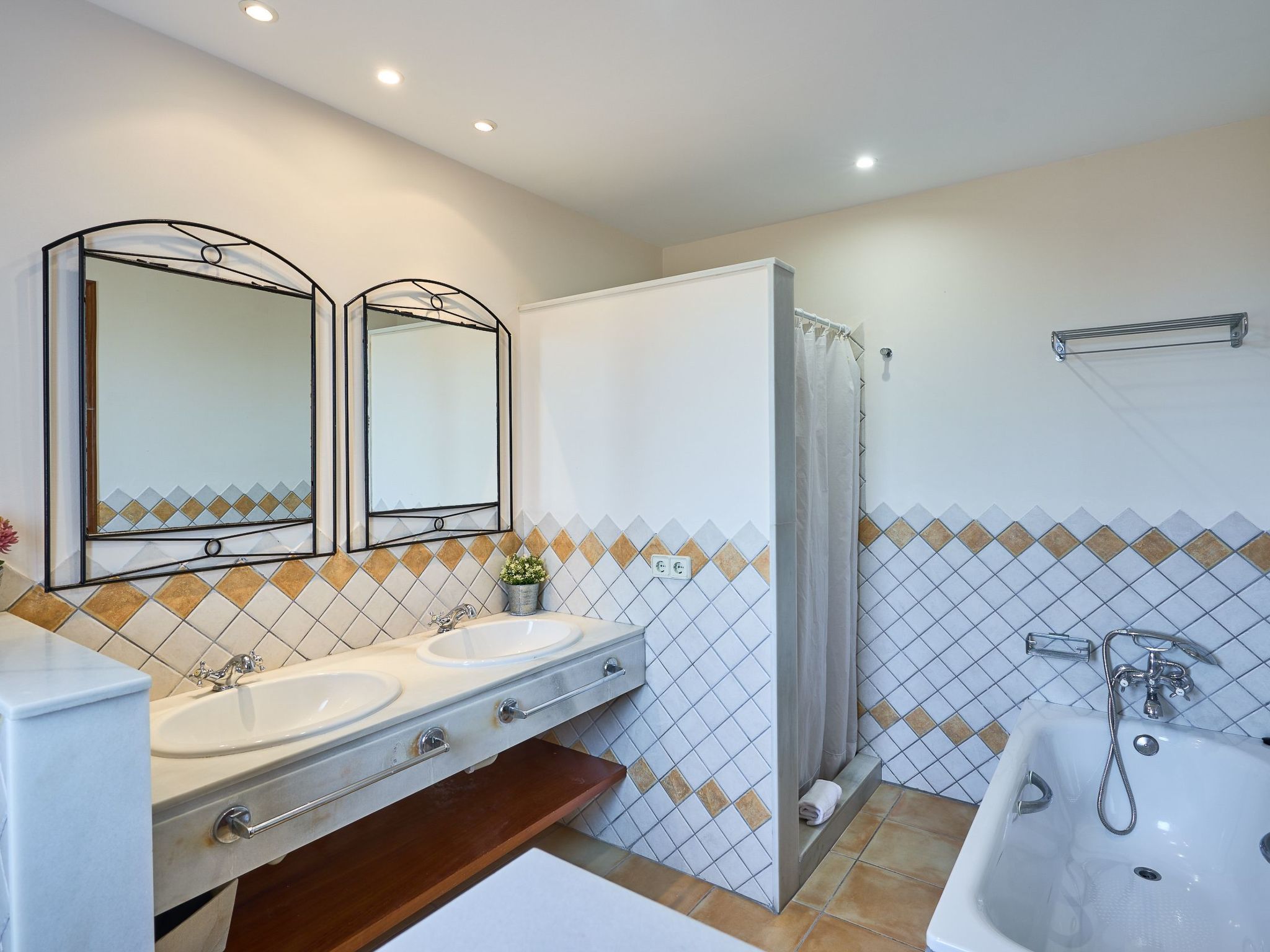 We also find two bedrooms with two single beds - one bedroom with a covered terrace with armchairs and sofa - that share an adjoining full bathroom with shower.