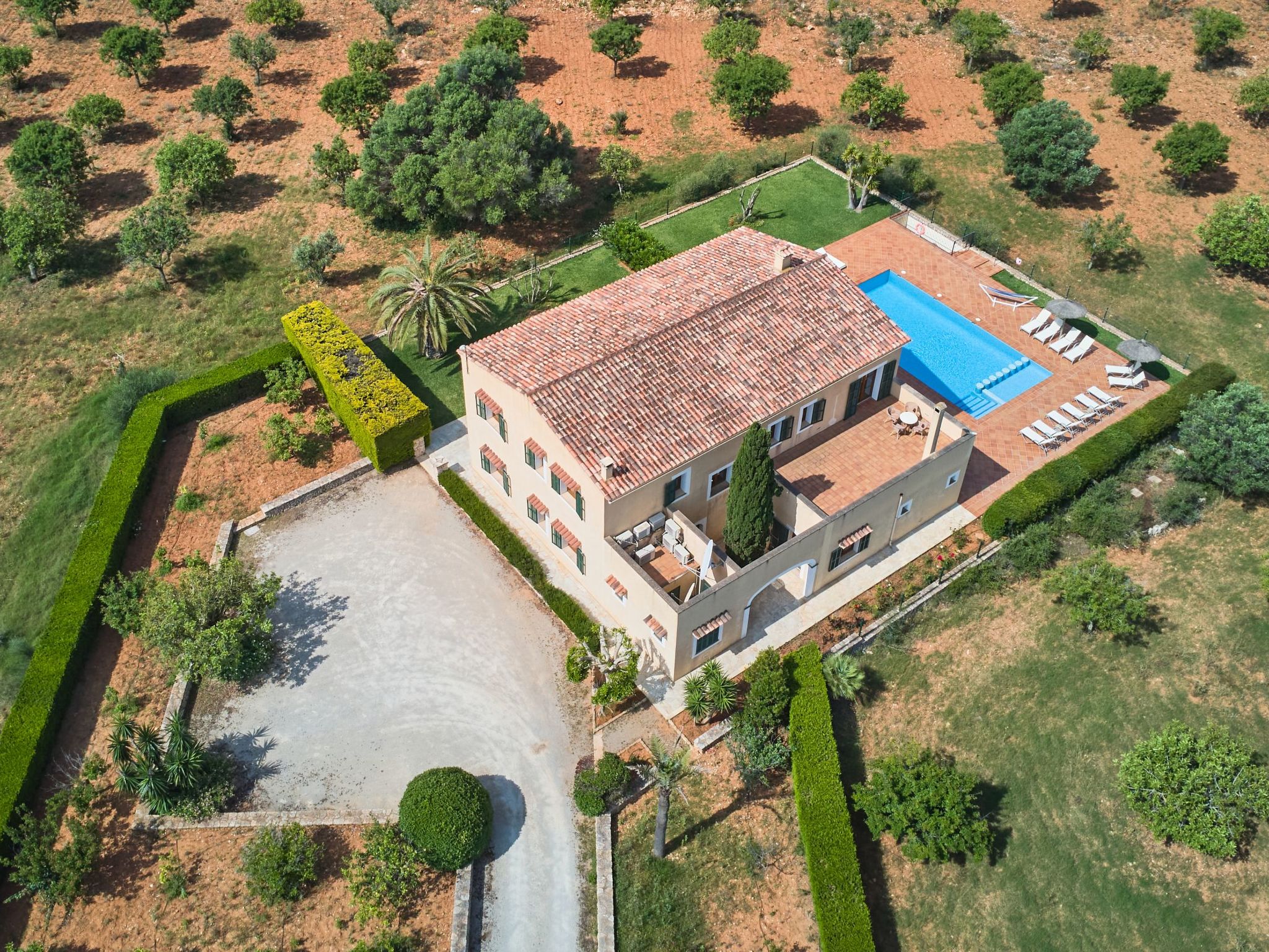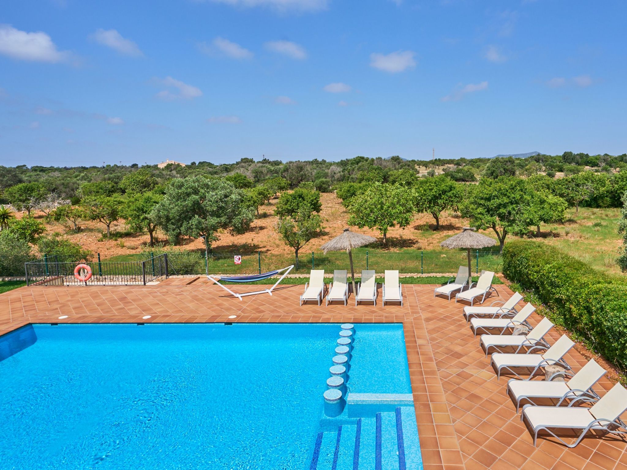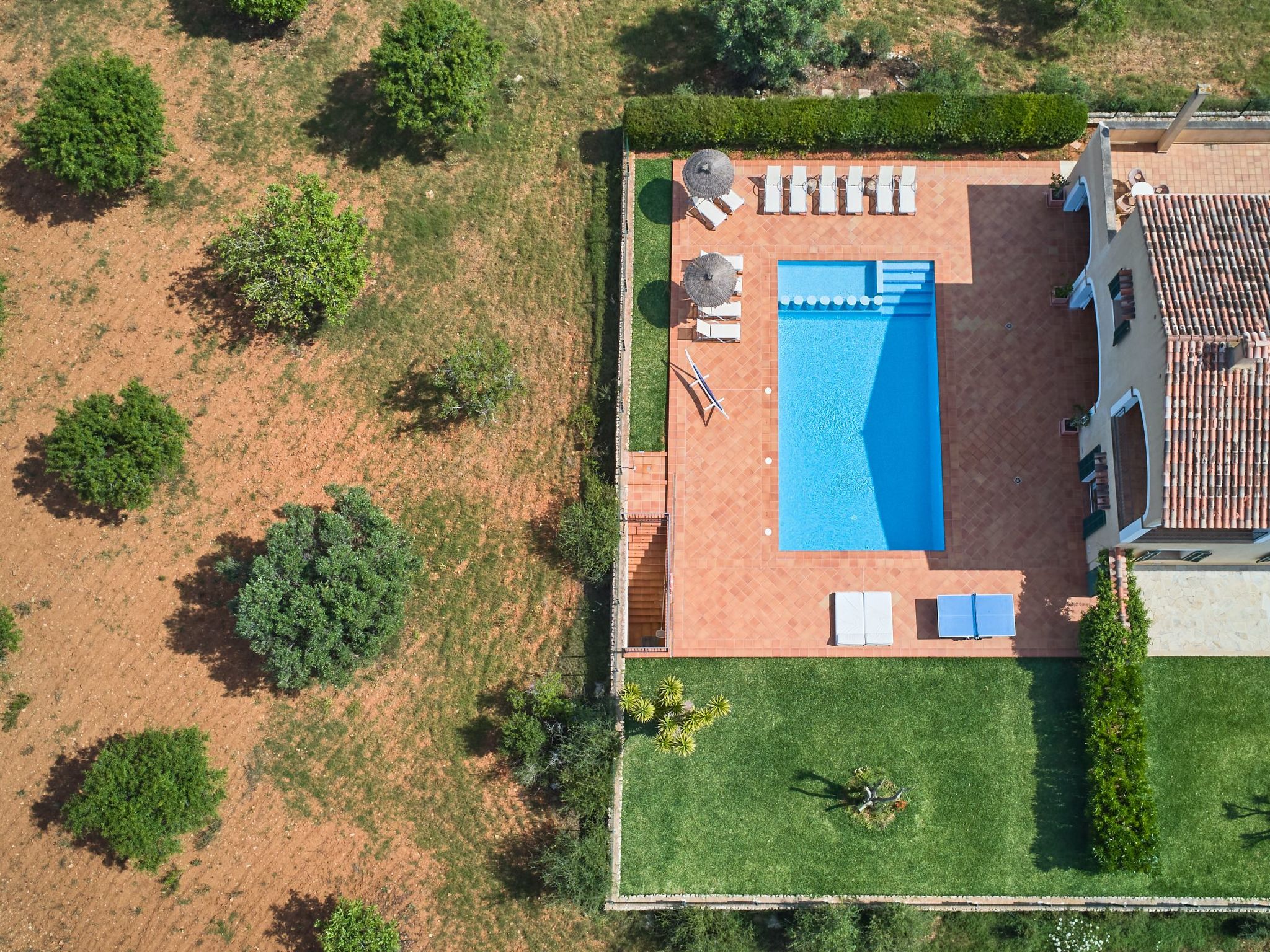 The property has fruit trees, almond trees and olive trees, which create a very natural rural atmosphere.