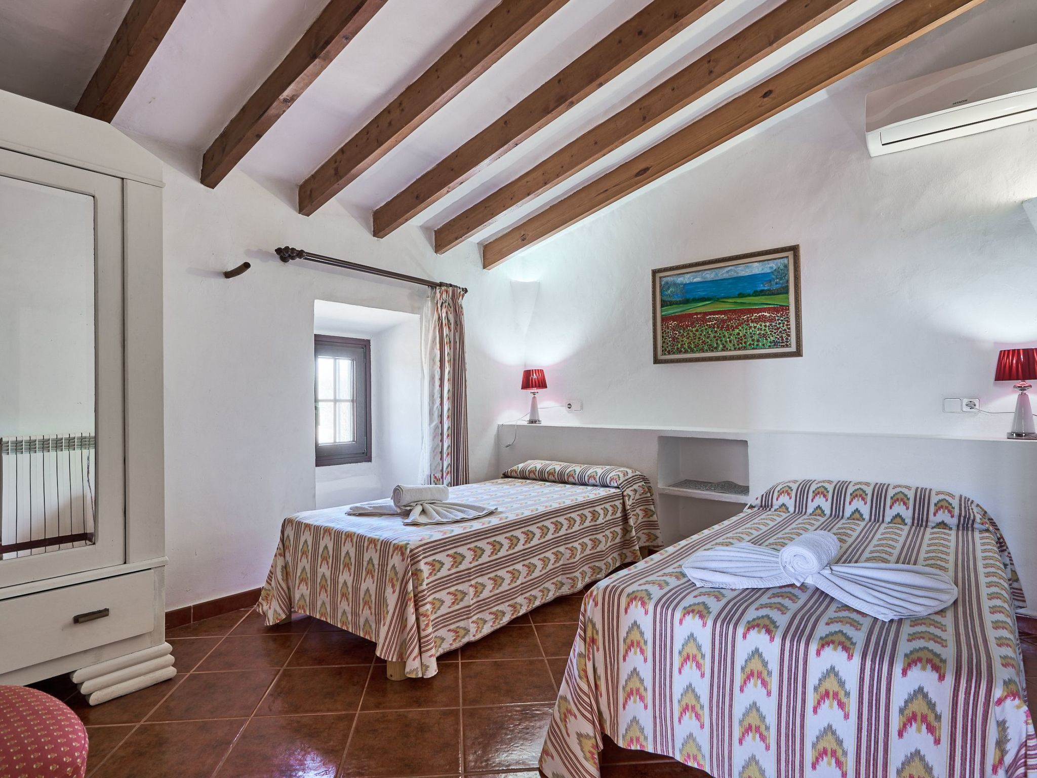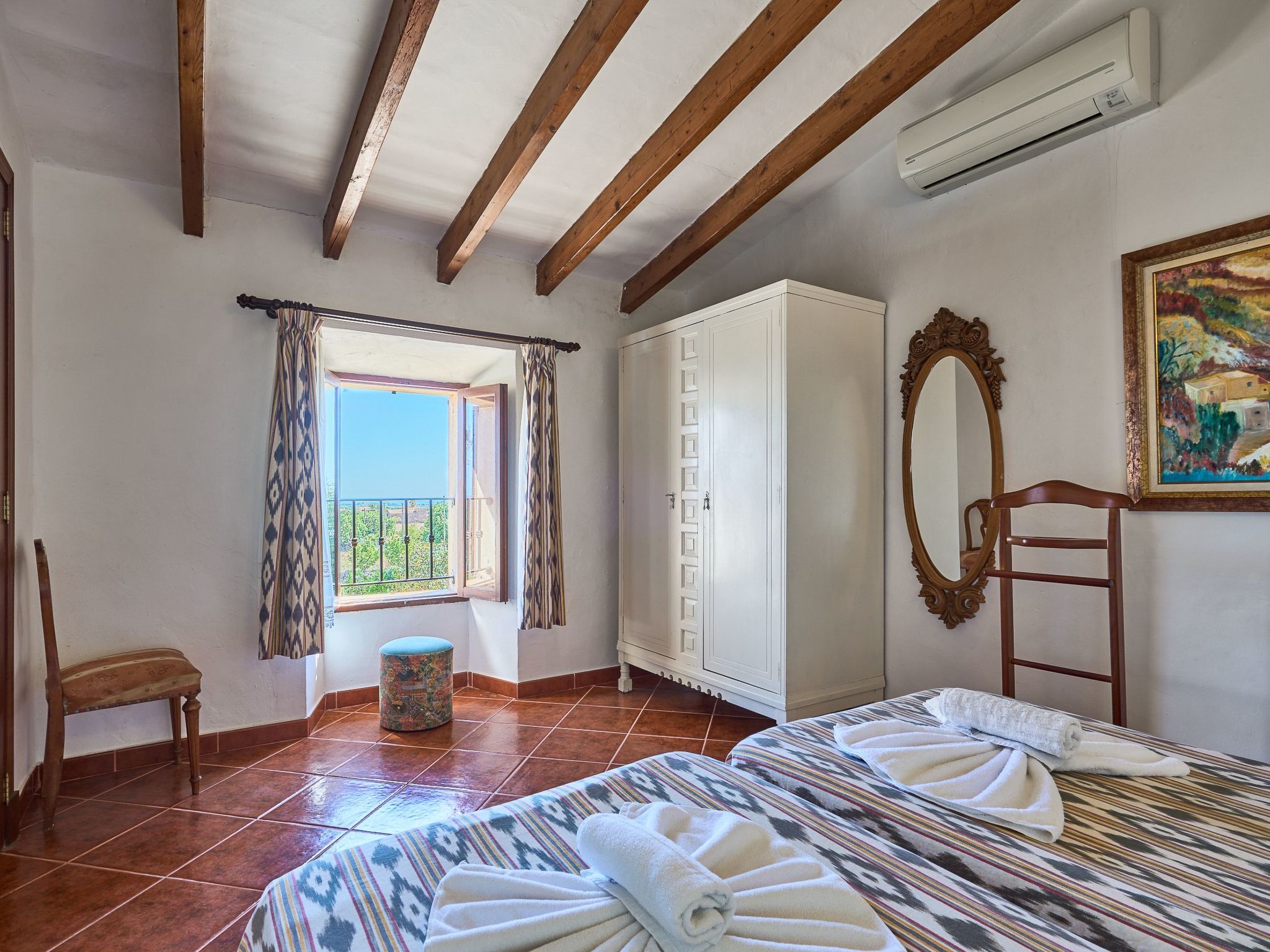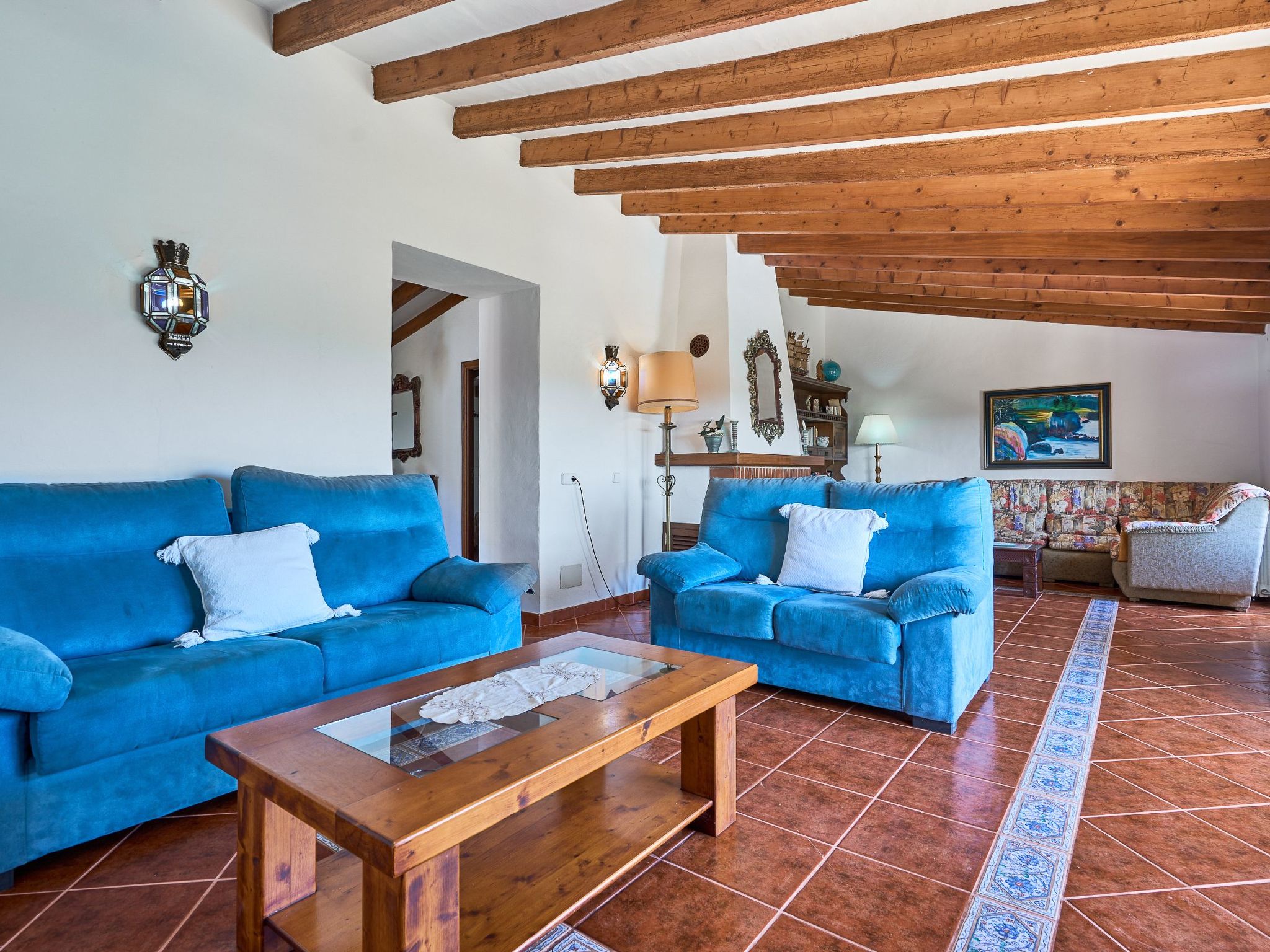 Can Tanca est une maison de campagne typiquement majorquine qui a conservé son ambiance traditionnelle, avec de hauts plafonds entrecoupés de poutres en bois rustiques et des meubles en bois sombre et ancien si typiques de l'île. L'entrée donne sur une vaste salle de réception d'où partent deux chambres doubles et la cuisine. La cuisine très spacieuse sert en outre de salle à manger et donne accès à la terrasse extérieure et à l'espace jardin/piscine. Les deux chambres du rez-de-chaussée sont équipées de lits doubles et de meubles anciens majorquins. Les deux chambres disposent de salles de bains en suite. L'étage supérieur offre un espace de vie avec des canapés, une télévision par satellite et une belle vue sur le jardin. Il y a également deux autres chambres doubles, chacune équipée de deux lits simples. Les deux chambres se partagent une salle de bain avec baignoire et douche. Une petite terrasse ensoleillée avec une vue fantastique sur la mer complète l'étage supérieur.