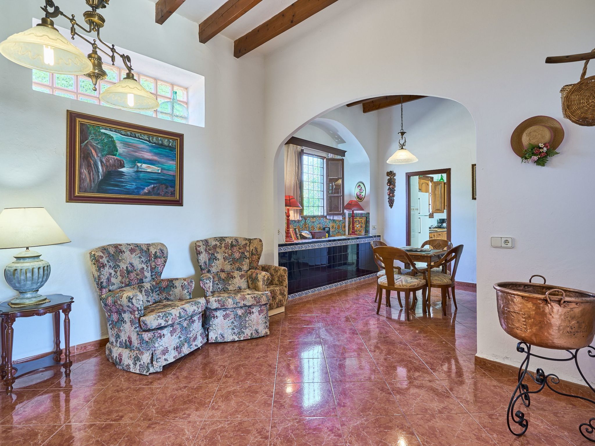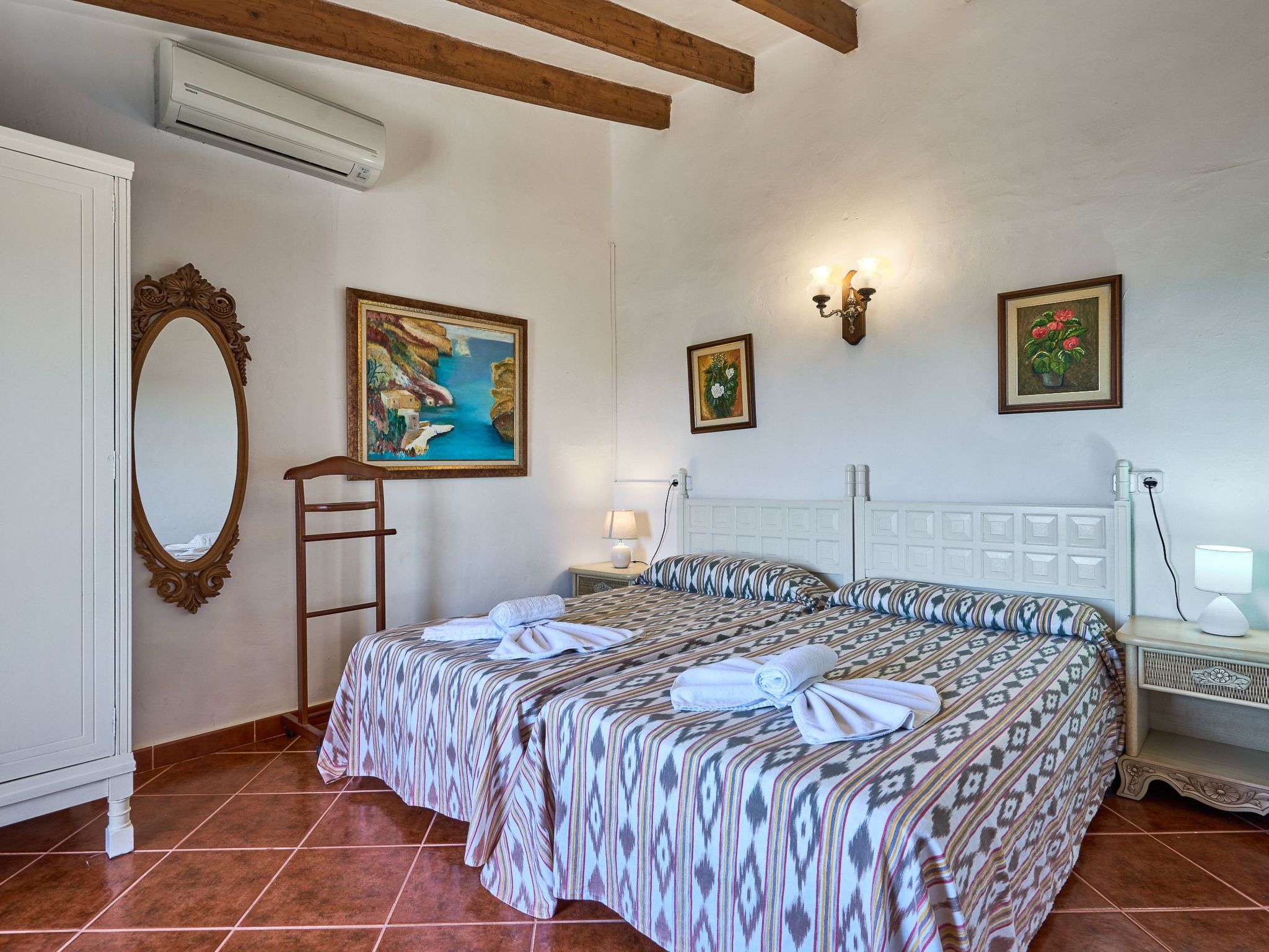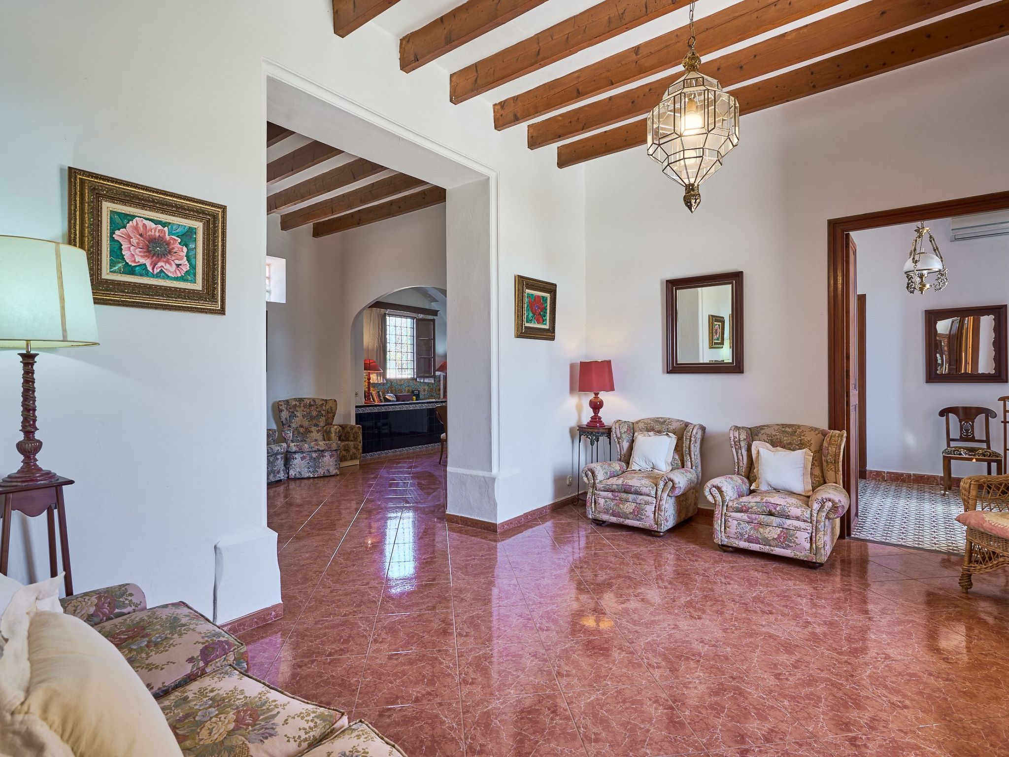 Can Tanca est une maison de campagne typiquement majorquine qui a conservé son ambiance traditionnelle, avec de hauts plafonds entrecoupés de poutres en bois rustiques et des meubles en bois sombre et ancien si typiques de l'île. L'entrée donne sur une vaste salle de réception d'où partent deux chambres doubles et la cuisine. La cuisine très spacieuse sert en outre de salle à manger et donne accès à la terrasse extérieure et à l'espace jardin/piscine. Les deux chambres du rez-de-chaussée sont équipées de lits doubles et de meubles anciens majorquins. Les deux chambres disposent de salles de bains en suite. L'étage supérieur offre un espace de vie avec des canapés, une télévision par satellite et une belle vue sur le jardin. Il y a également deux autres chambres doubles, chacune équipée de deux lits simples. Les deux chambres se partagent une salle de bain avec baignoire et douche. Une petite terrasse ensoleillée avec une vue fantastique sur la mer complète l'étage supérieur.