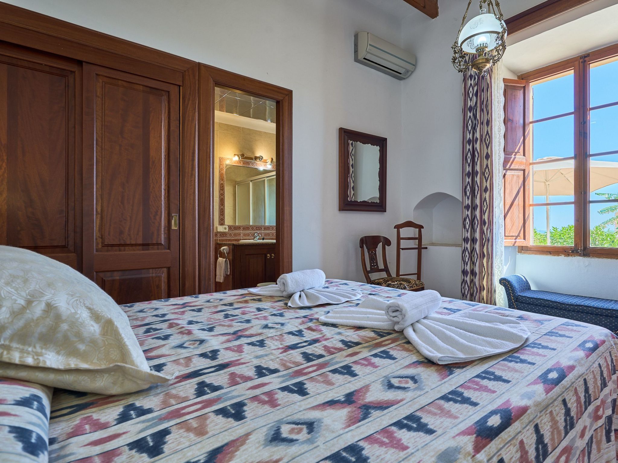 Toutes les chambres à coucher sont équipées de l'air conditionné chaud/froid à des heures d'utilisation fixes et limitées.