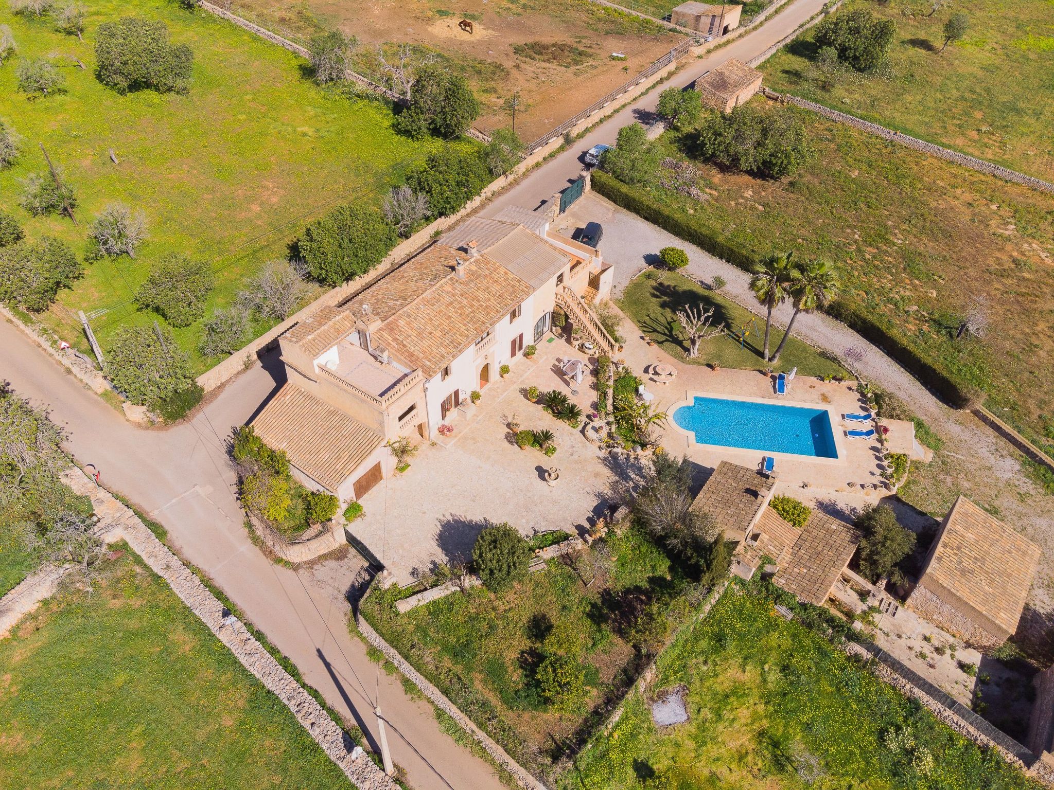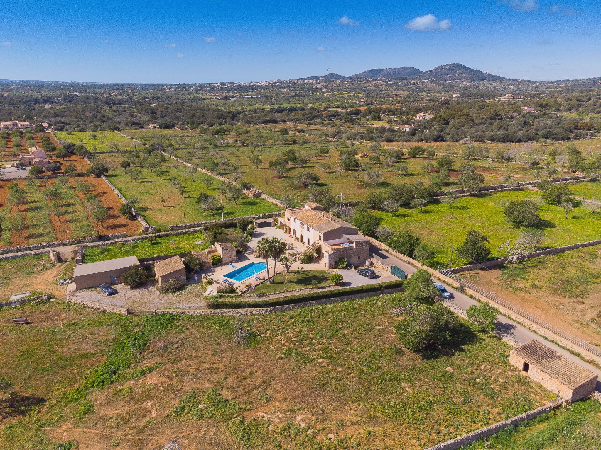Cette maison de campagne traditionnelle située au calme se trouve un peu en dehors du petit village de Calonge et offre une vue magnifique sur le paysage jusqu'à la mer. Dans le village de Calonge, à seulement 800 mètres, on trouve un petit supermarché, quelques cafés et bars ainsi que plusieurs bons restaurants et boutiques de décoration. La station touristique animée de Cala D'Or, avec ses nombreuses petites criques de sable, une grande variété de restaurants, de bars et de lieux de vie nocturne ainsi que des magasins, des boutiques de souvenirs et des boutiques, ne se trouve qu'à environ 4,5 km. Le port de plaisance exclusif de Cala D'Or propose, en plus de nombreux excellents restaurants, différentes locations de bateaux ainsi que des excursions en bateau le long de la pittoresque côte sud-est. Diverses autres activités nautiques sont proposées dans les petites criques. Le club de golf de Vall D'Or se trouve à moins de 10 minutes en voiture et est devenu un lieu de rencontre pour les non-golfeurs grâce à sa gastronomie et sa terrasse accueillante.