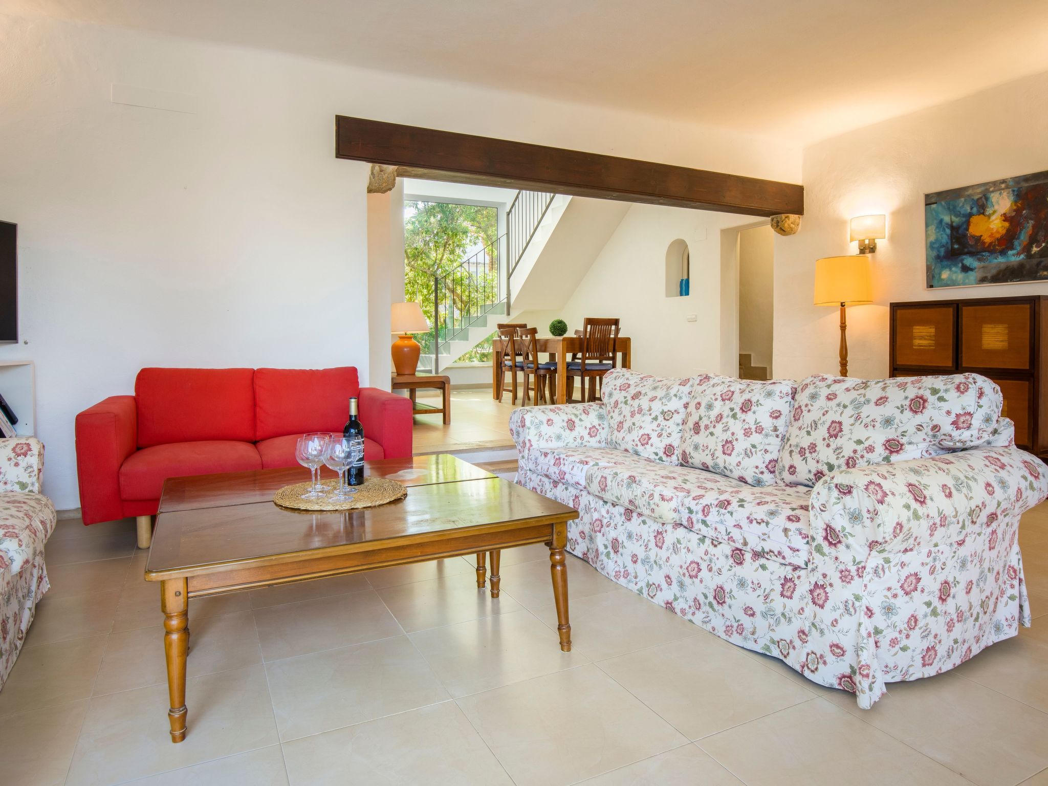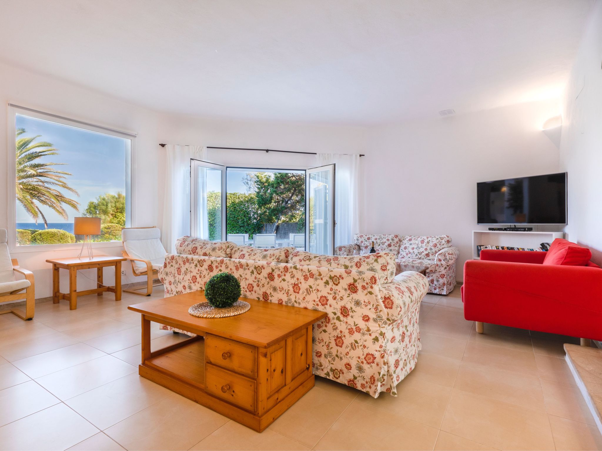 This pretty villa is situated in a privileged location above the bay of Cala Esmeralda and offers wonderful sea views from the roof terrace. A beautiful bay in the holiday resort of Cala Dor on the south-east coast of Mallorca. A walk of less than 10 minutes will take you to two wonderful beaches. In the centre of the small town, just a 12-minute walk away, there is a pedestrian zone with shops, open-air bars, restaurants and cafés. The famous fashionable marina is also worth a visit