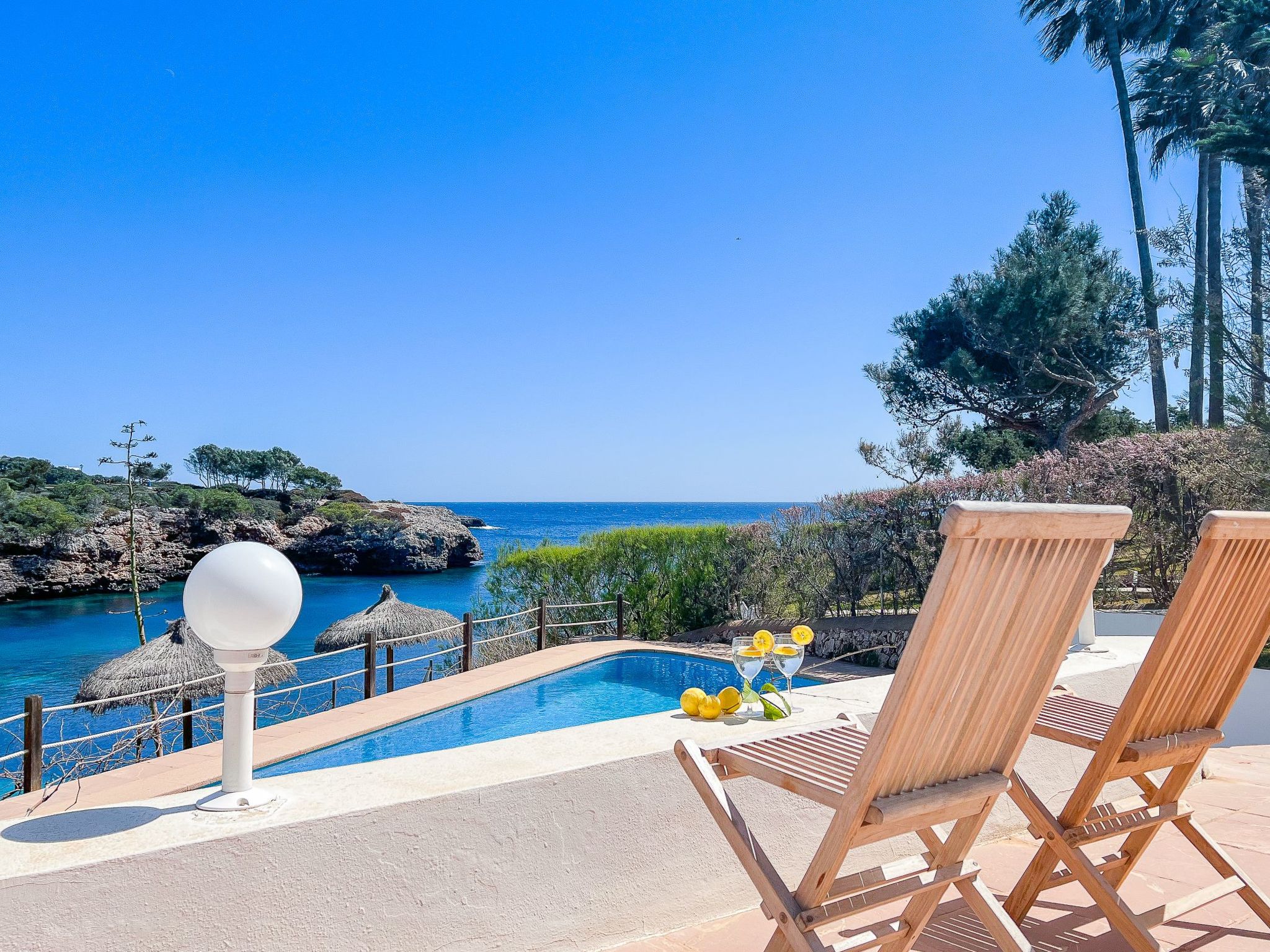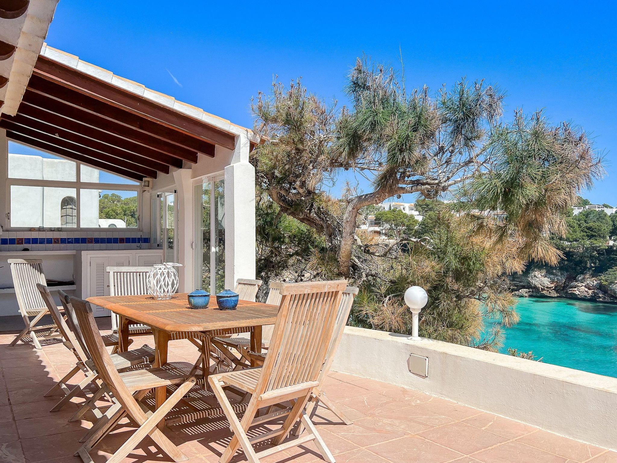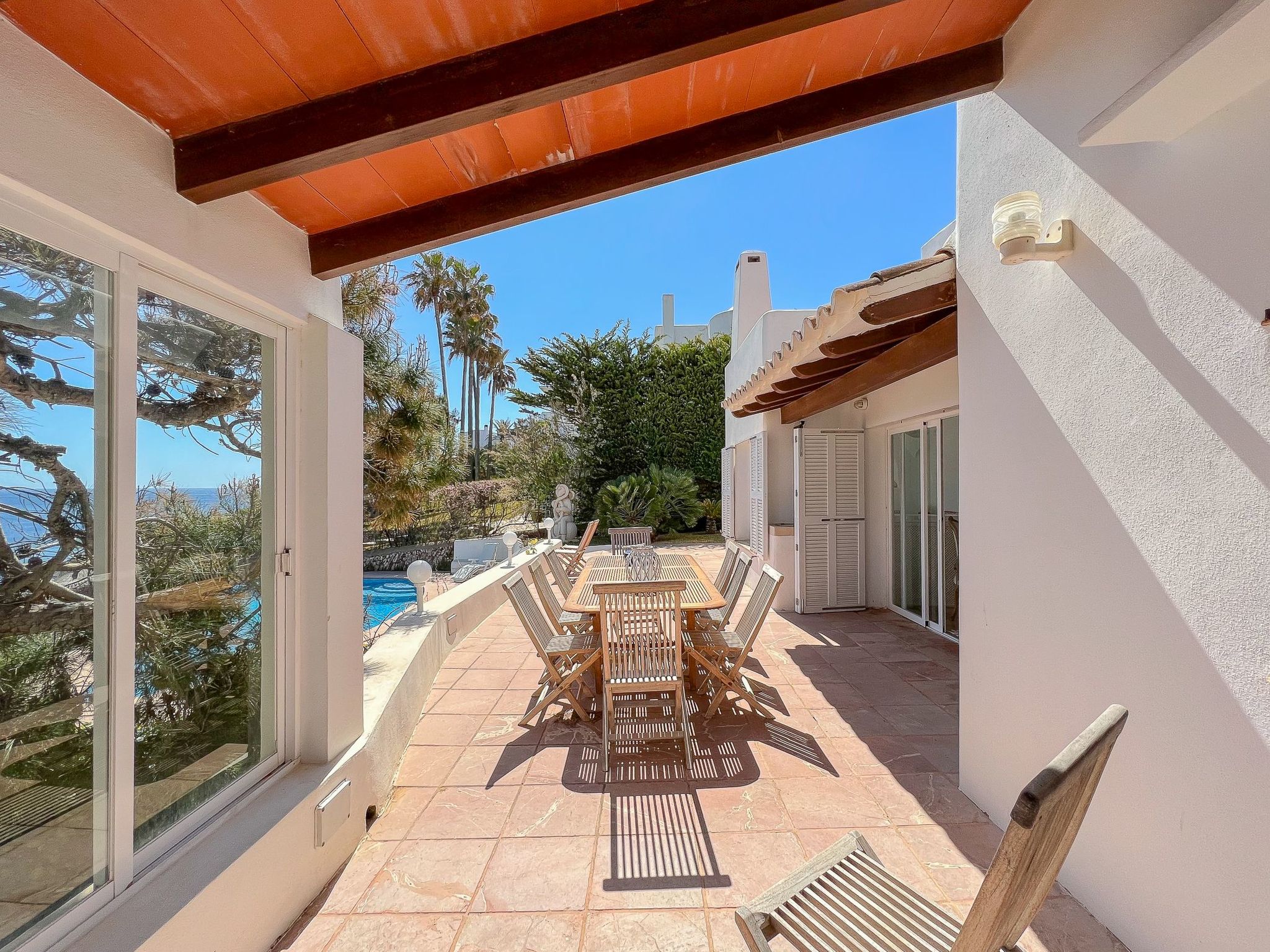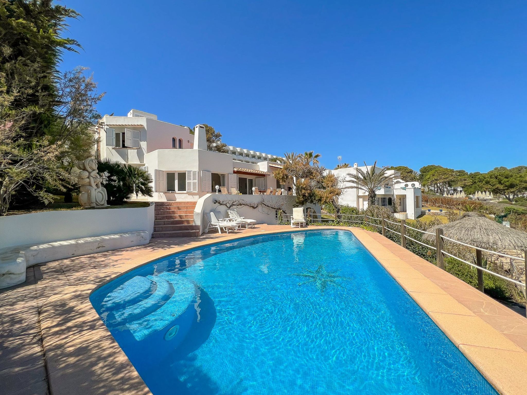 Spacious Ibiza-style holiday home for 10 people right by the sea, just a few metres from Cala Esmeralda beach, Cala D'Or, for rent. Enjoy an excellent location with marvellous views. Pool and terraces with views. Direct access to the sea from the rocks. You can swim to the beach.