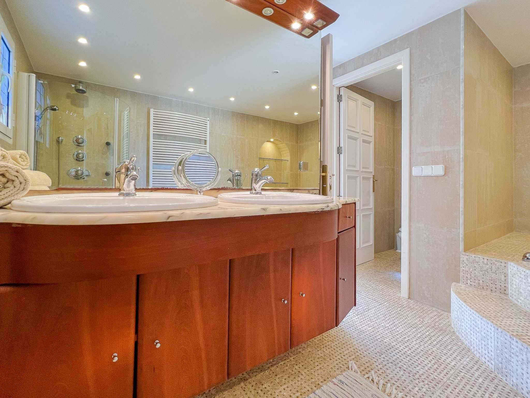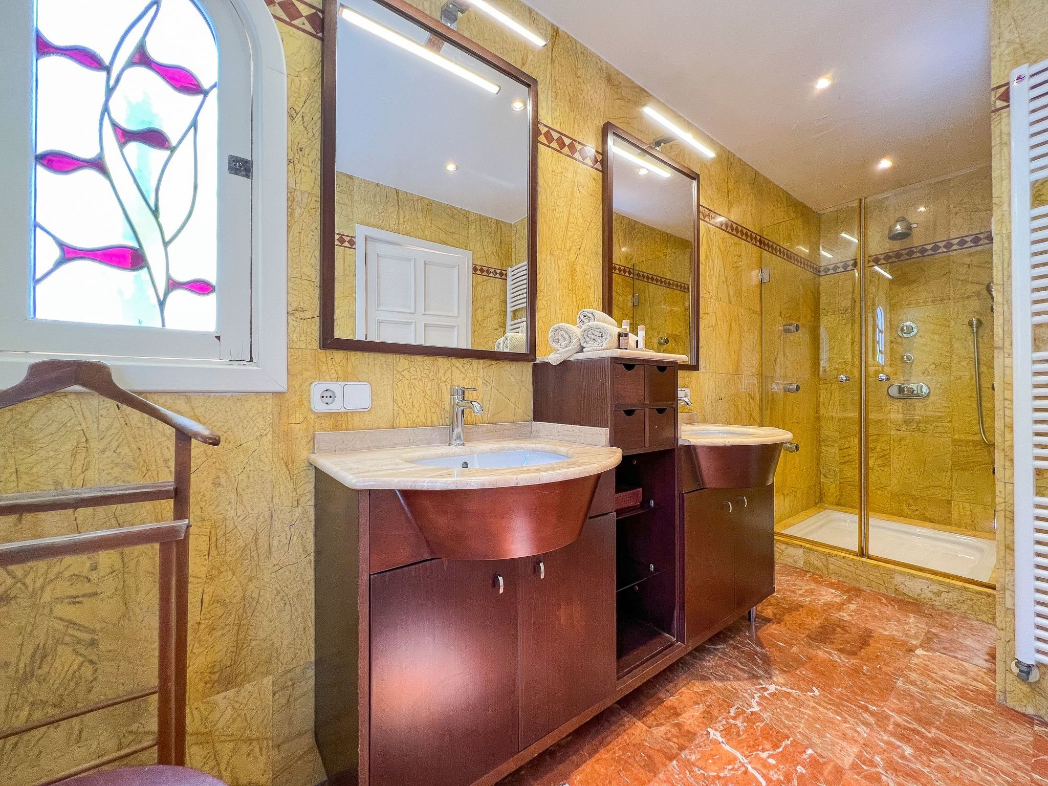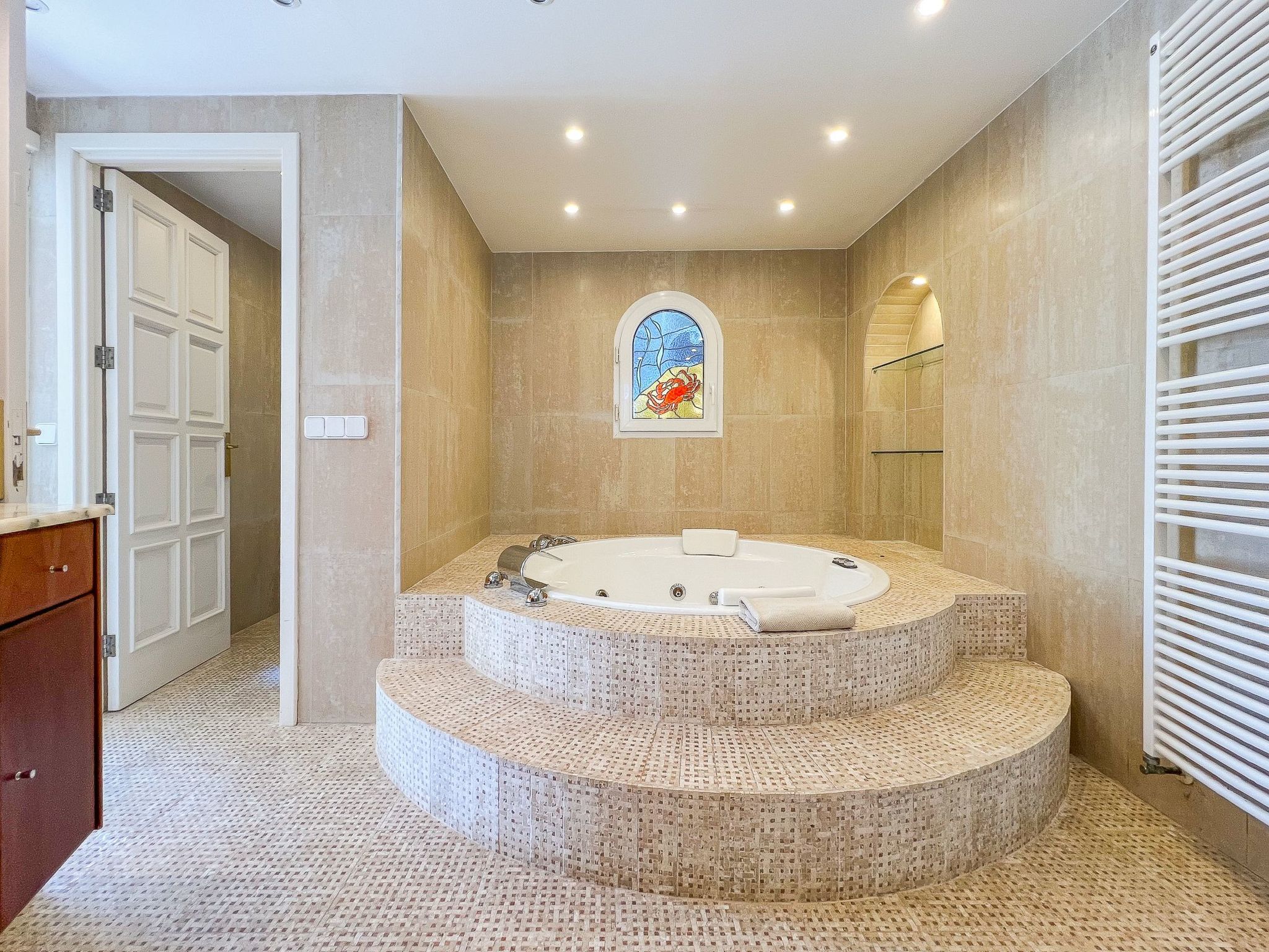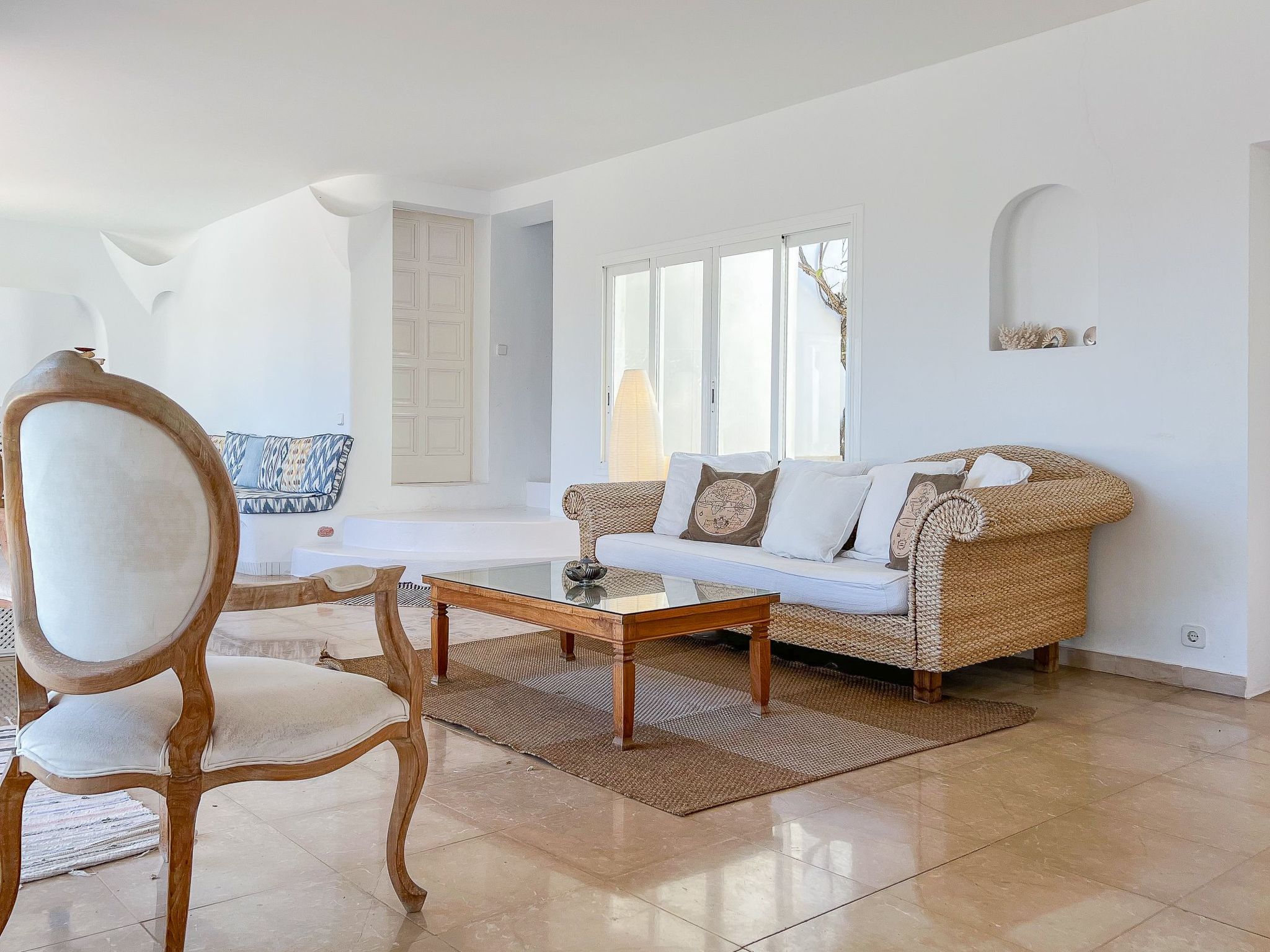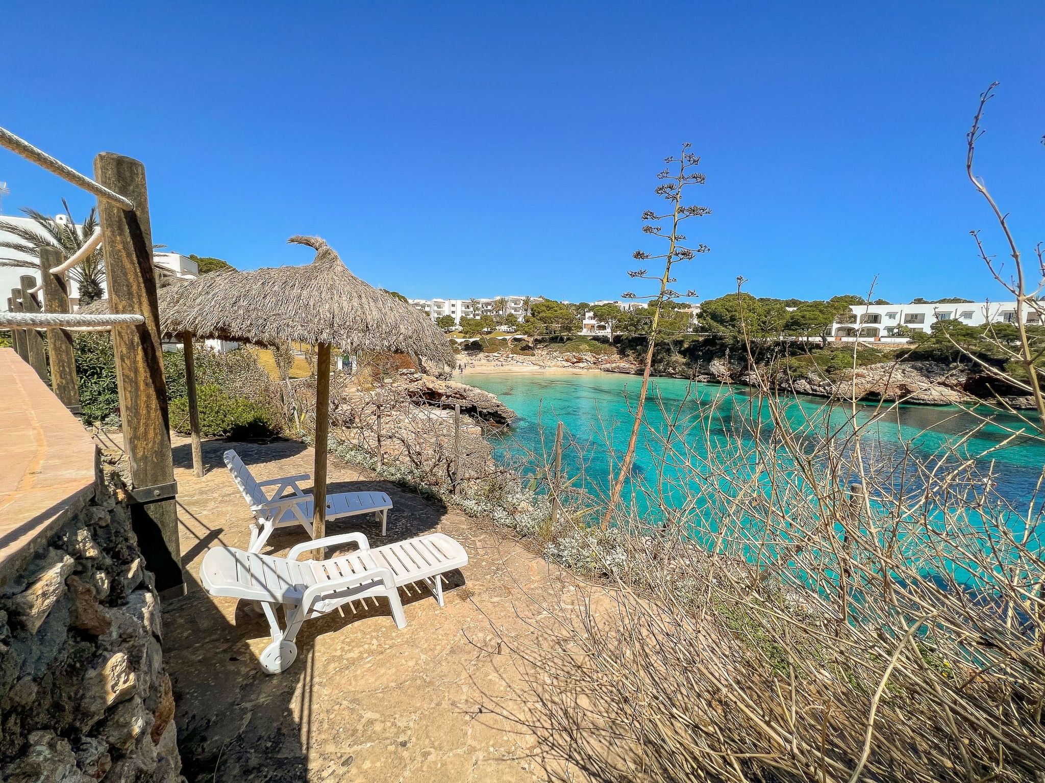 Spacious Ibiza-style holiday home for 10 people right by the sea, just a few metres from Cala Esmeralda beach, Cala D'Or, for rent. Enjoy an excellent location with marvellous views. Pool and terraces with views. Direct access to the sea from the rocks. You can swim to the beach.