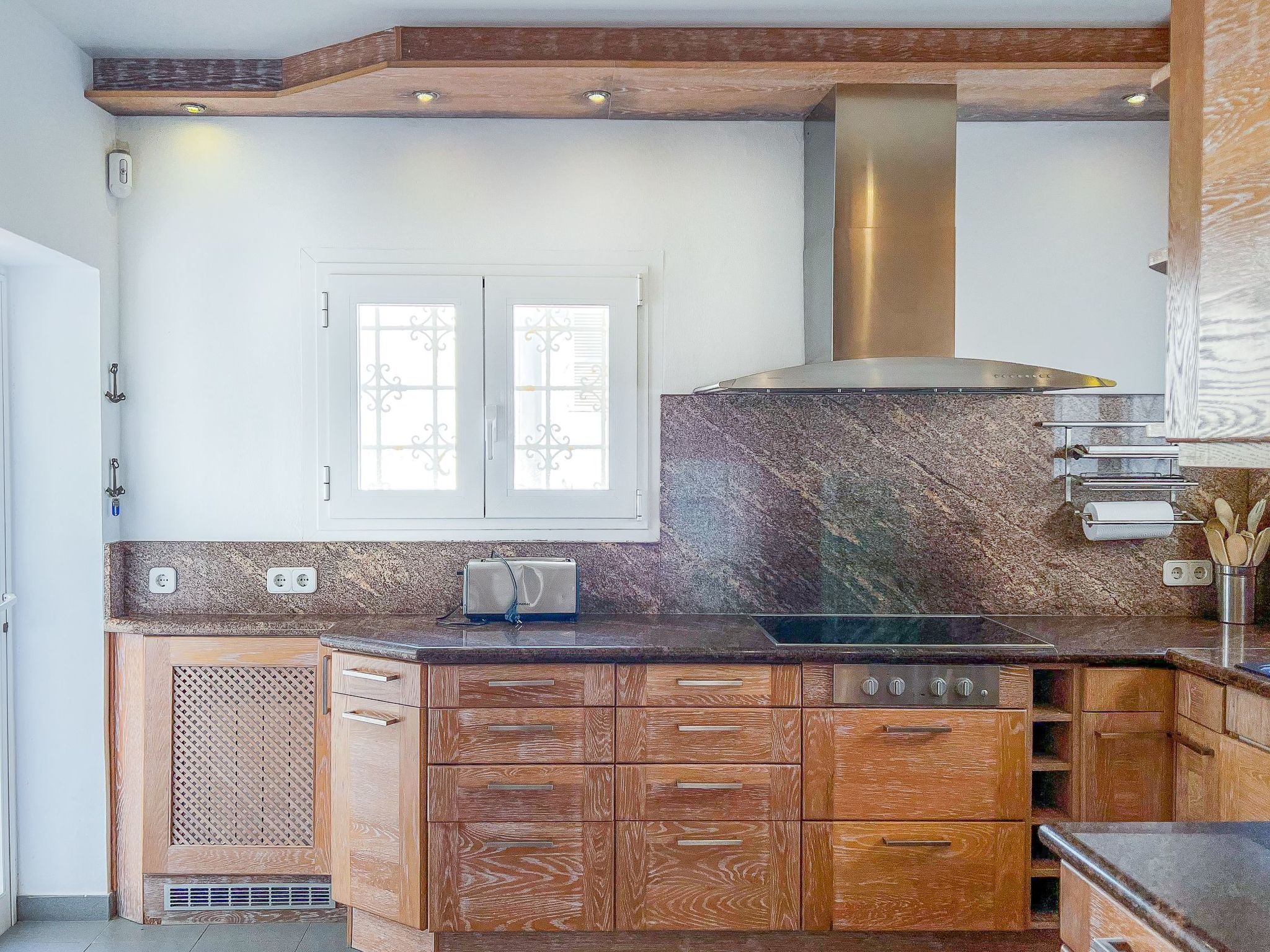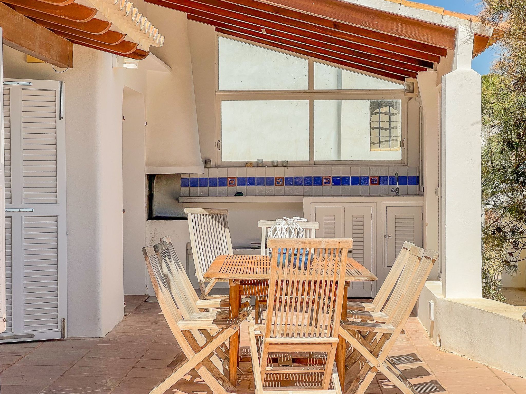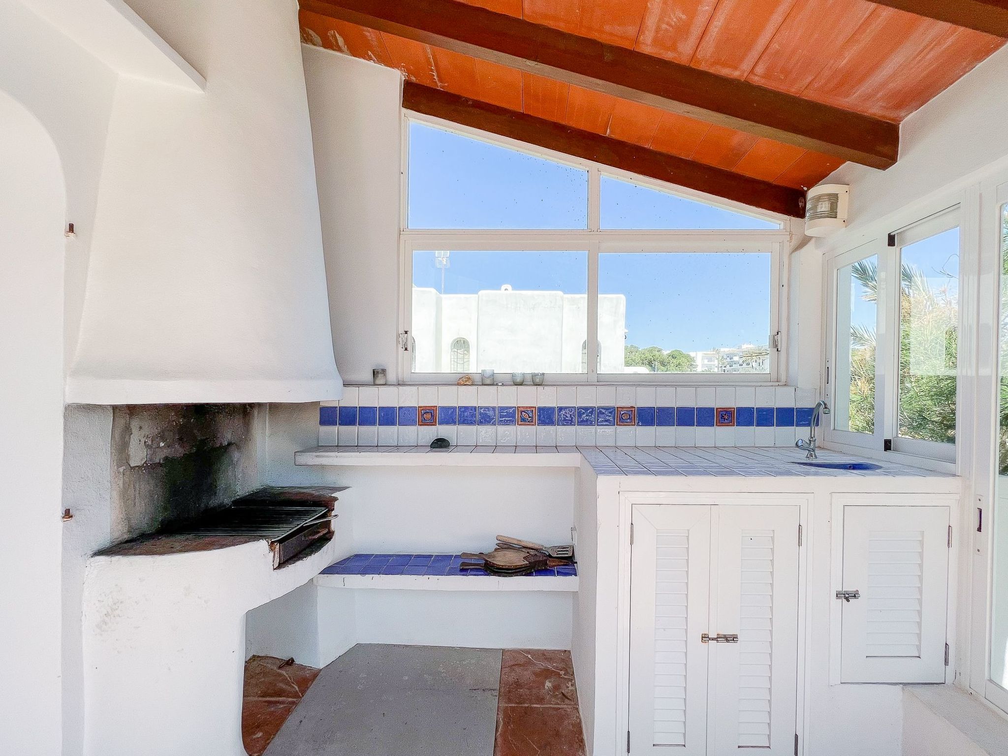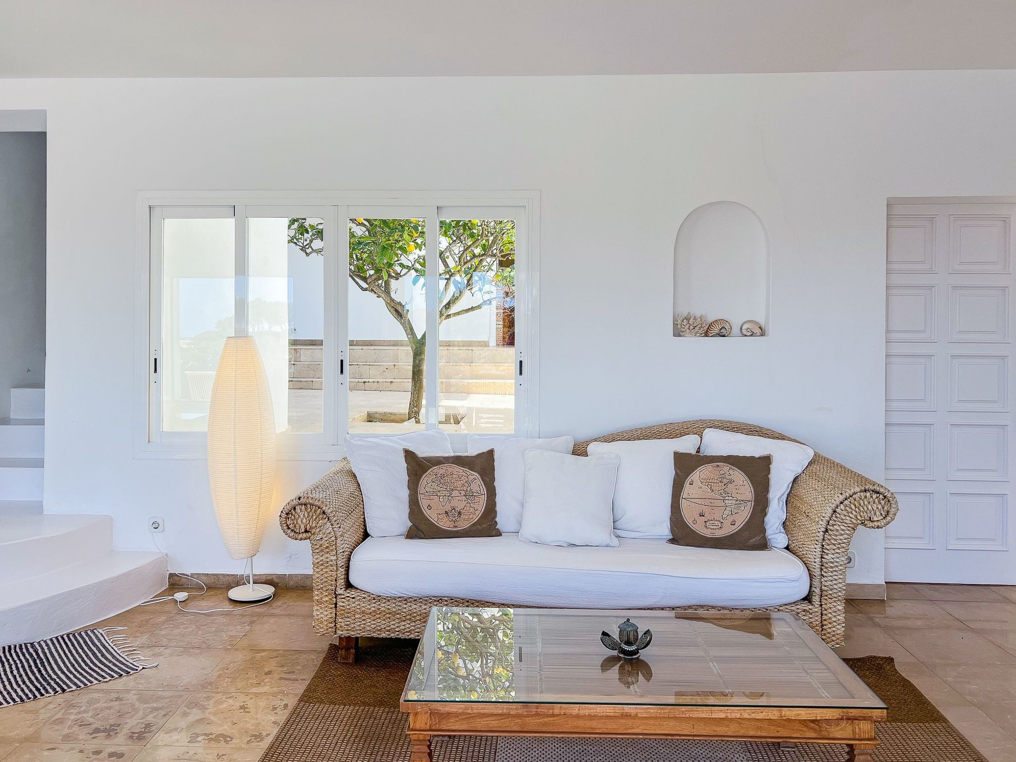 The holiday home is distributed over two floors. It is spacious and has different areas where you can enjoy the sun and relax.on the ground floor is the living room with brick benches, great views of the sea and dining area, access to the terrace. Spacious kitchen. From the living room there is access to a bedroom with double bed and ensuite bathroom. This bedroom has access to the terrace. From the living room, a spiral staircase in Ibizan style leads to the floor, where there is another double bedroom and an en-suite bathroom with shower.The house has an inner courtyard with three bedrooms. One bedroom for children, with a single bed plus a pull-out bed and a small bathroom en suite. Another bedroom with a double bed and an adjacent bathroom. The last bedroom has a double bed and an en suite bathroom. Unbeatable outdoor area with barbecue area, table to enjoy meals with sea views. Private pool and several areas where you can enjoy the sun and shade. Access to the sea from the rocks. Air conditioning in the bedrooms with a fixed and limited schedule.
