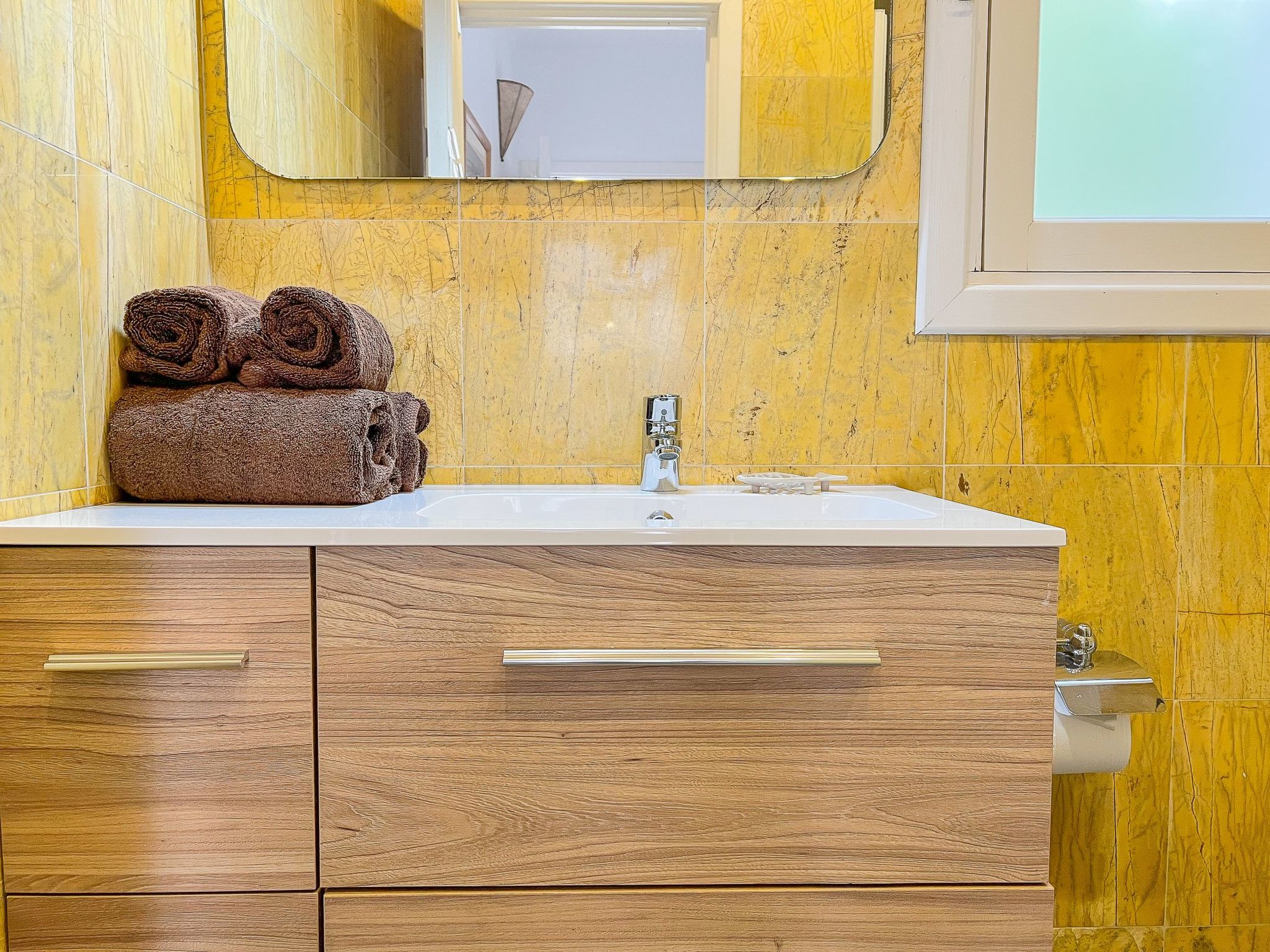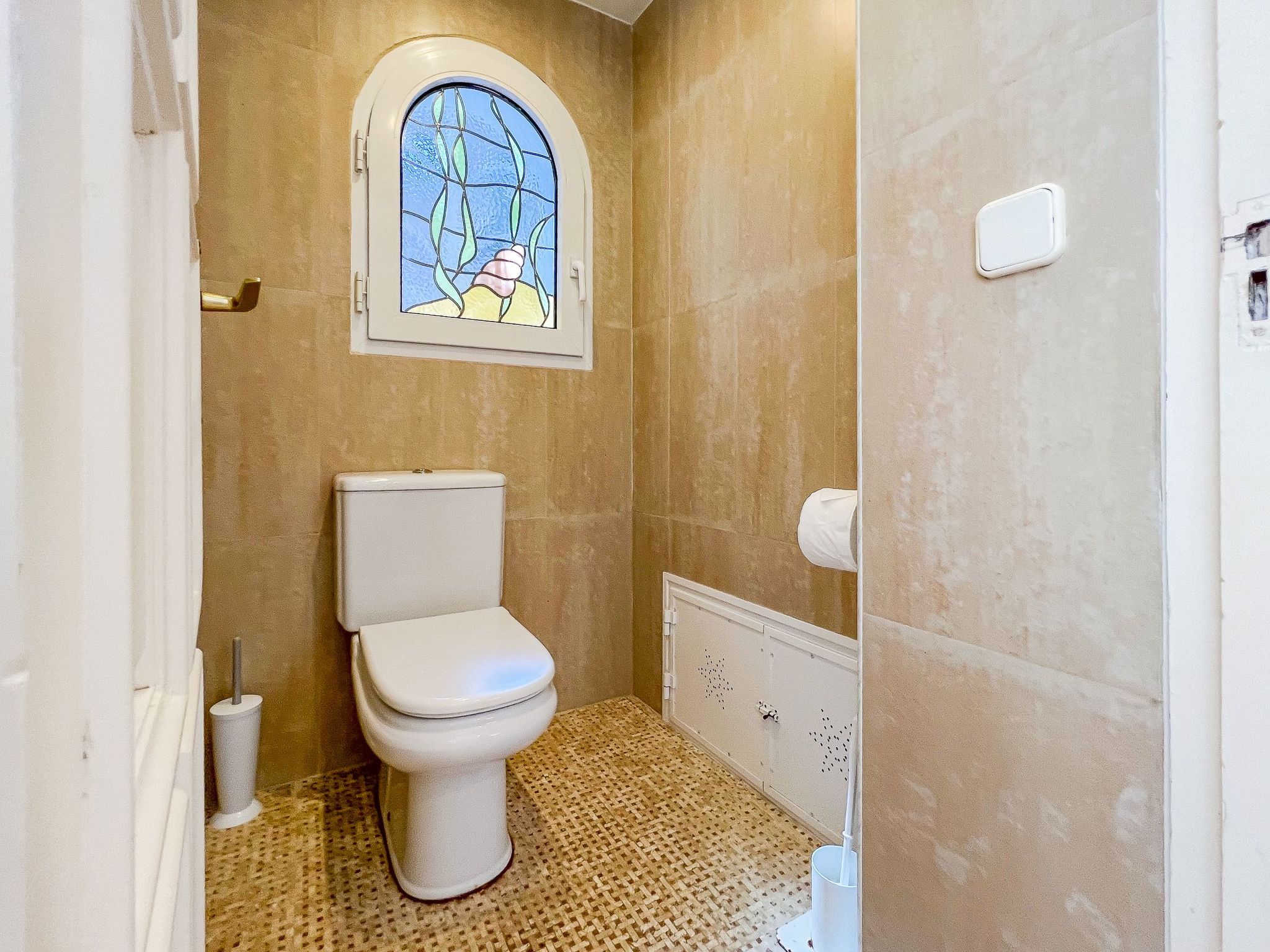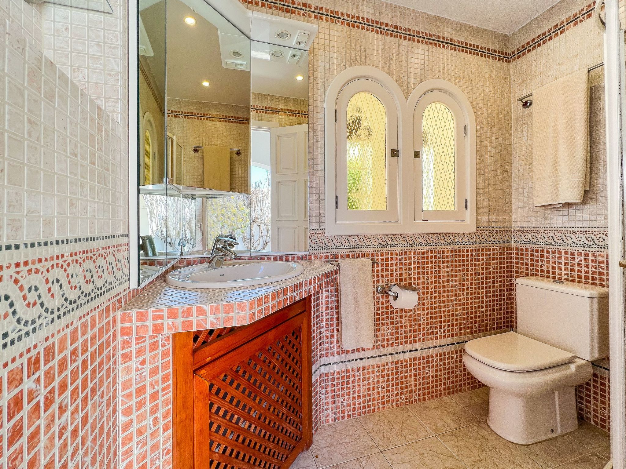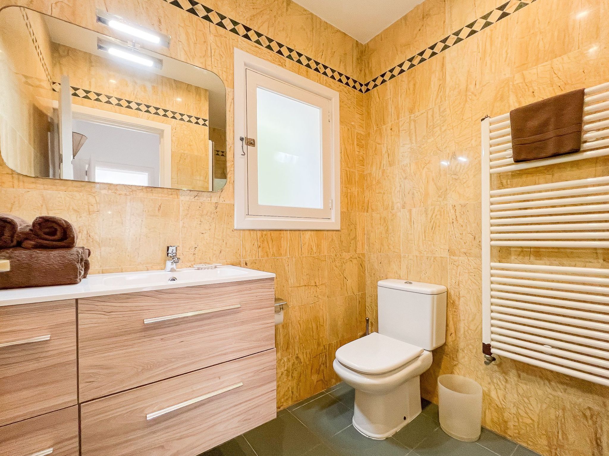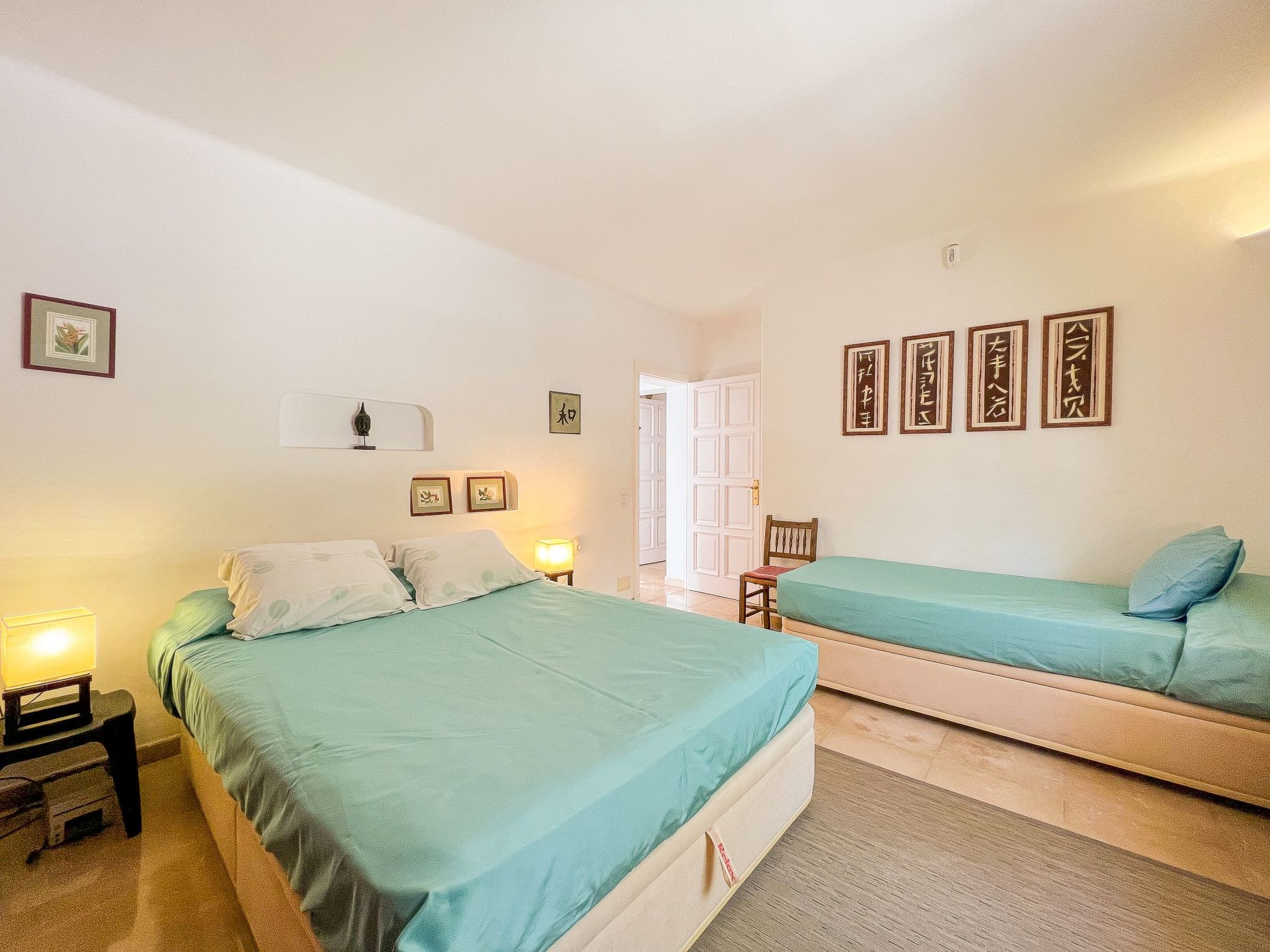 The holiday home is distributed over two floors. It is spacious and has different areas where you can enjoy the sun and relax.on the ground floor is the living room with brick benches, great views of the sea and dining area, access to the terrace. Spacious kitchen. From the living room there is access to a bedroom with double bed and ensuite bathroom. This bedroom has access to the terrace. From the living room, a spiral staircase in Ibizan style leads to the floor, where there is another double bedroom and an en-suite bathroom with shower.The house has an inner courtyard with three bedrooms. One bedroom for children, with a single bed plus a pull-out bed and a small bathroom en suite. Another bedroom with a double bed and an adjacent bathroom. The last bedroom has a double bed and an en suite bathroom. Unbeatable outdoor area with barbecue area, table to enjoy meals with sea views. Private pool and several areas where you can enjoy the sun and shade. Access to the sea from the rocks. Air conditioning in the bedrooms with a fixed and limited schedule.