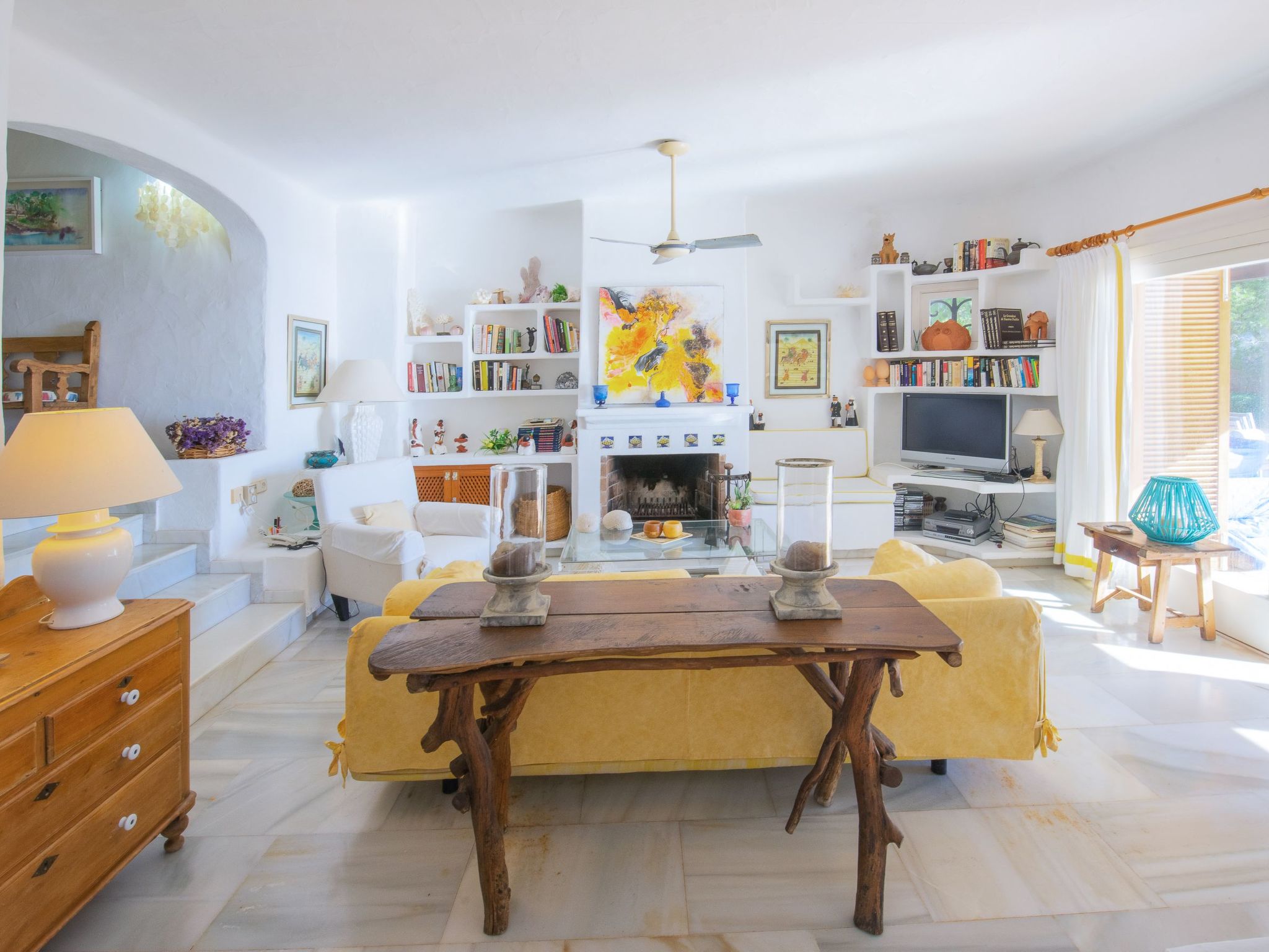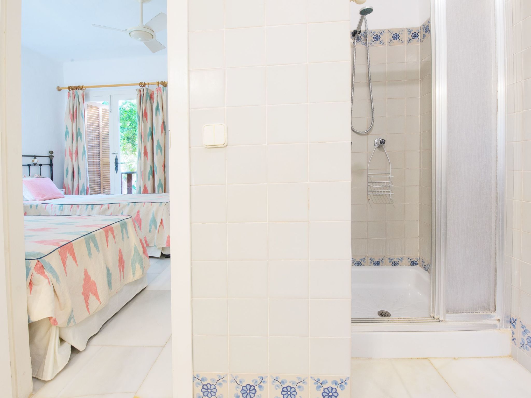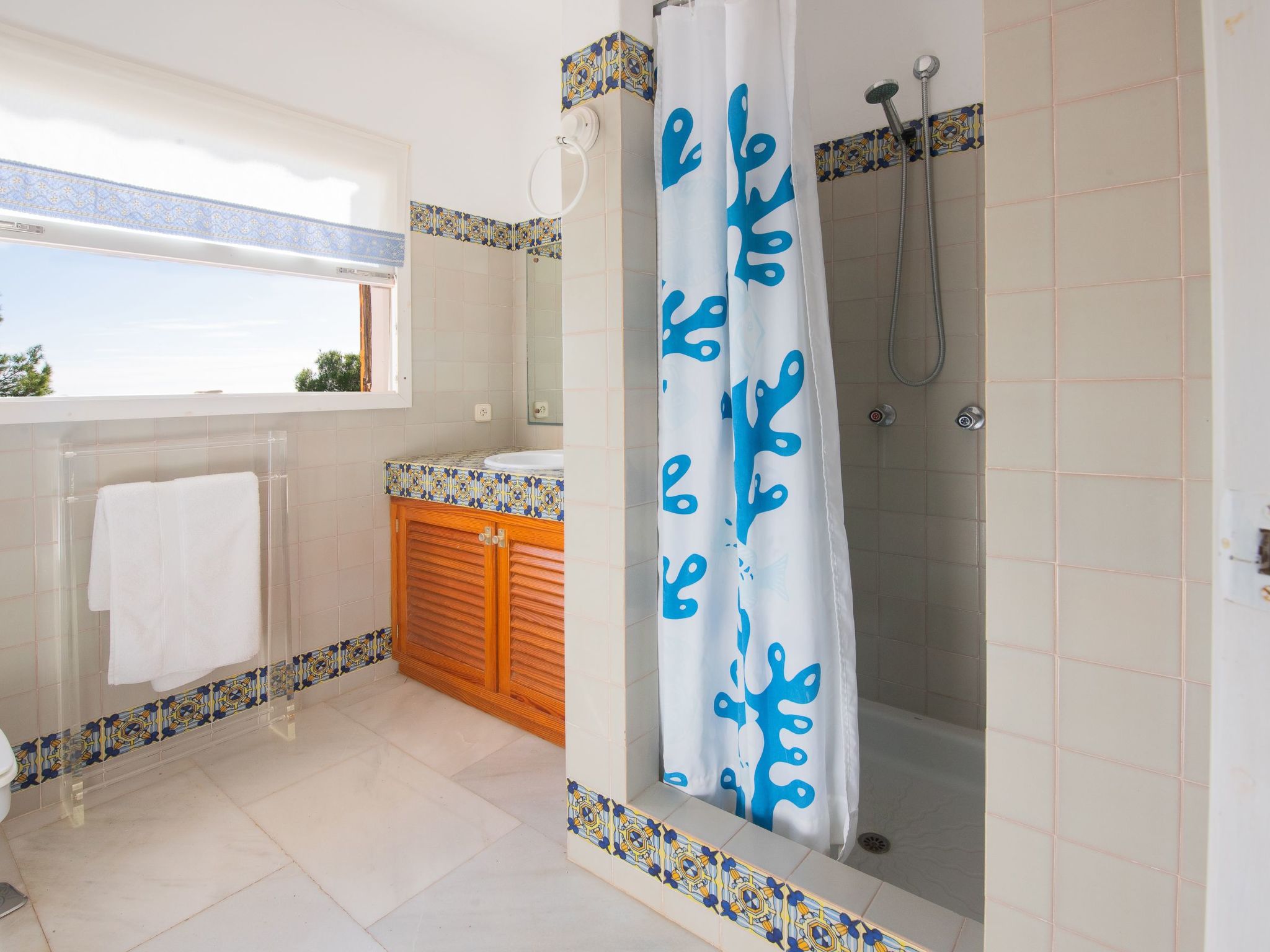 Two-storey villa. From the hallway you enter an open-plan living/dining area with access to a covered terrace with beautiful sea views. The kitchen can be accessed via the dining area as well as from the entrance, adjoining a guest WC with shower and the utility room. There are also two double bedrooms on the ground floor, each with an en suite shower room. The two further bedrooms are located on the floor. One has a double bed (2 single mattresses) and a full bathroom en suite. The 4th bedroom has two single beds and an en suite shower room. Both bedrooms have access to a terrace with stunning sea views. This floor is also accessible via an external staircase* From the hallway on the ground floor, 4 steps lead to the living/dining area, the kitchen and the 2 lower bedrooms.