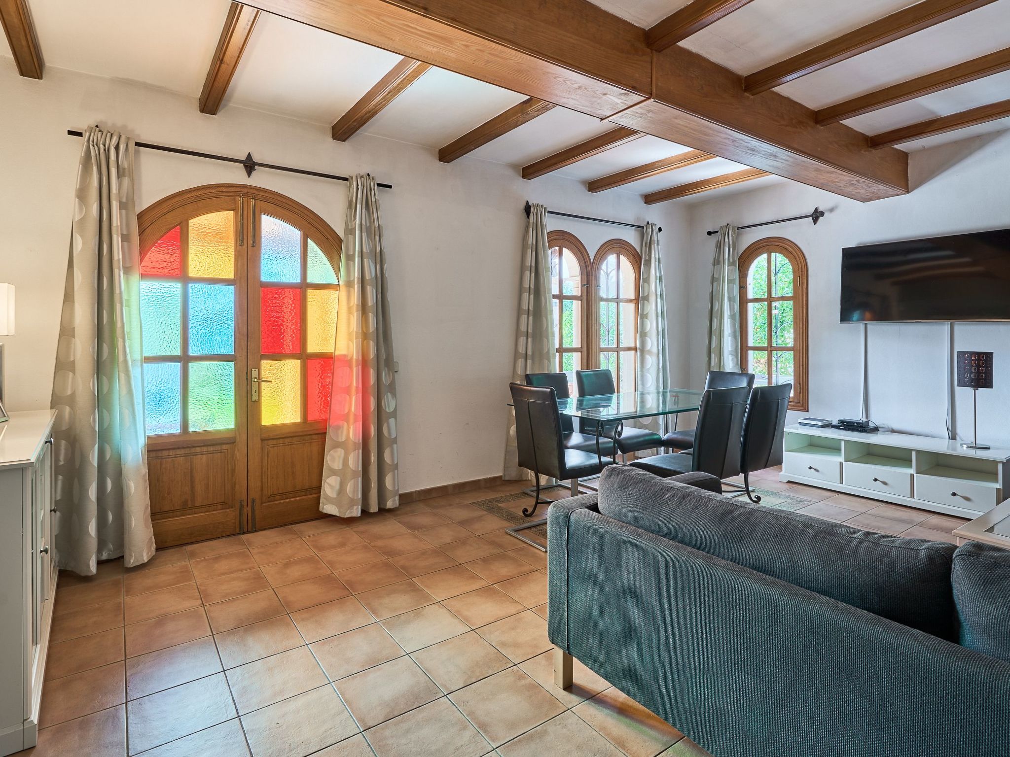 The villa benefits from its excellent location in Cala d'Or. Just 500 metres separate you from the glistening beaches and clear sea, putting water sports within easy reach. The lively town centre and grocery store are also within easy reach, making self-catering effortless. For those who want to explore the surrounding area, the proximity to cafés, restaurants and bars in the marina area offers a variety of options for unforgettable experiences.