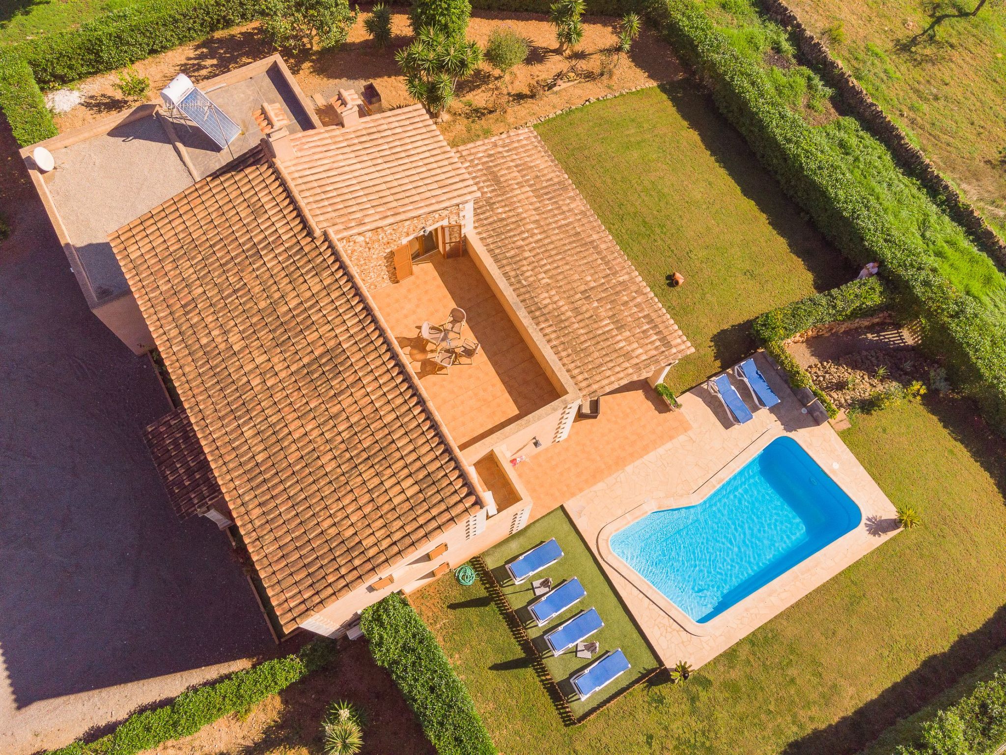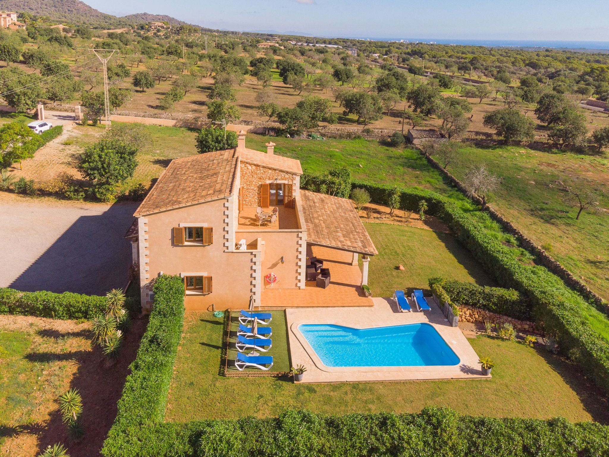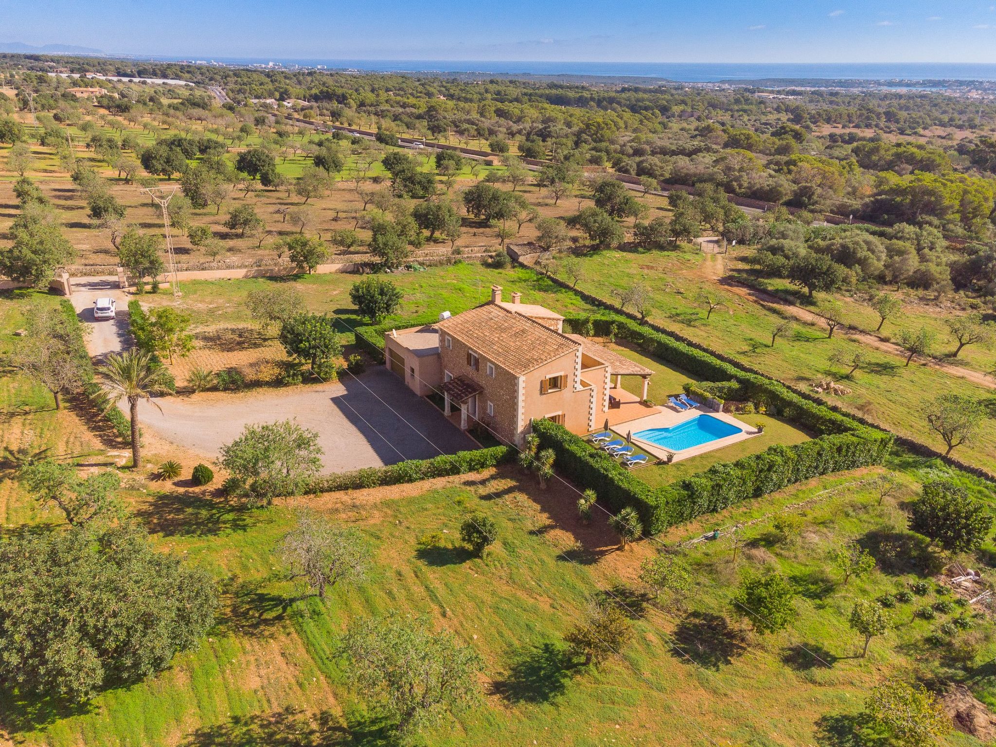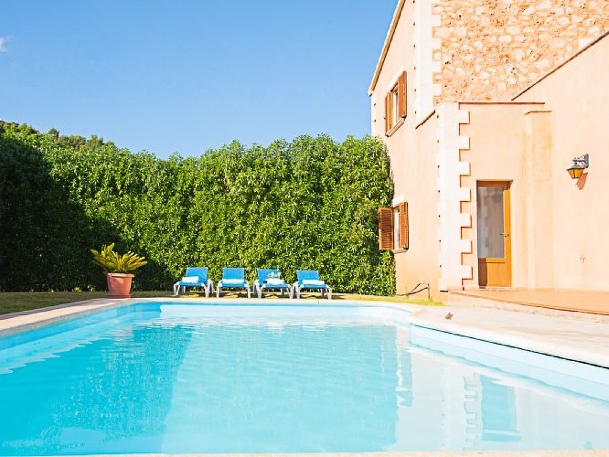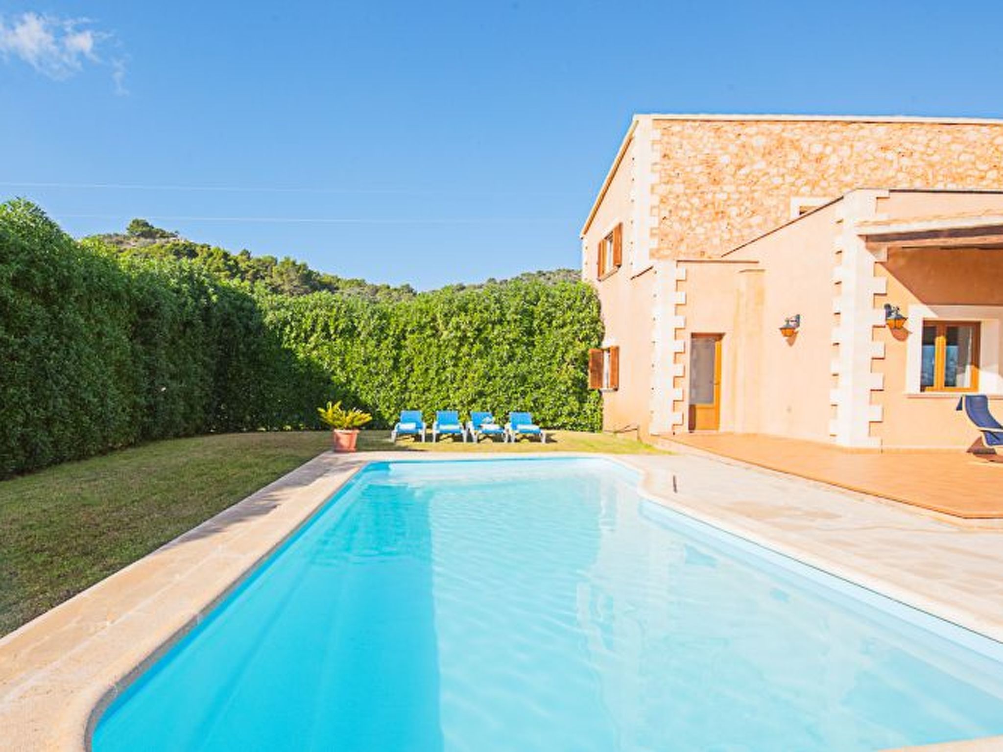 Finca for 7 people + 1 child with private pool for rent, only 1.4 km. from the small village of S'Horta; close to the road that connects S'Horta with Porto Colom, in the south-east of Mallorca. Beautiful sandy beaches such as Cala Sanau and the coastal towns of Porto Colom and Cala D'Or are only a few minutes away by car.