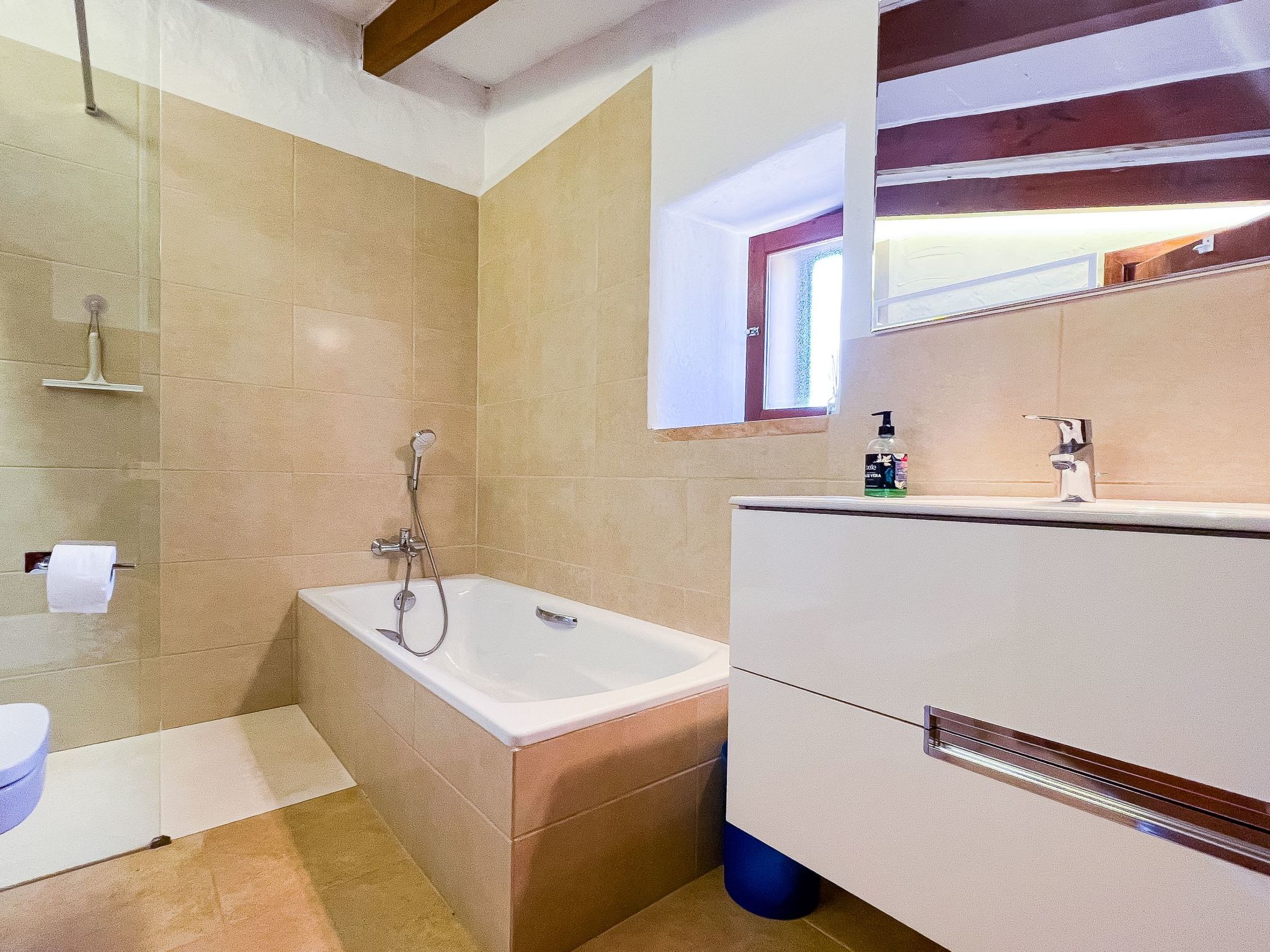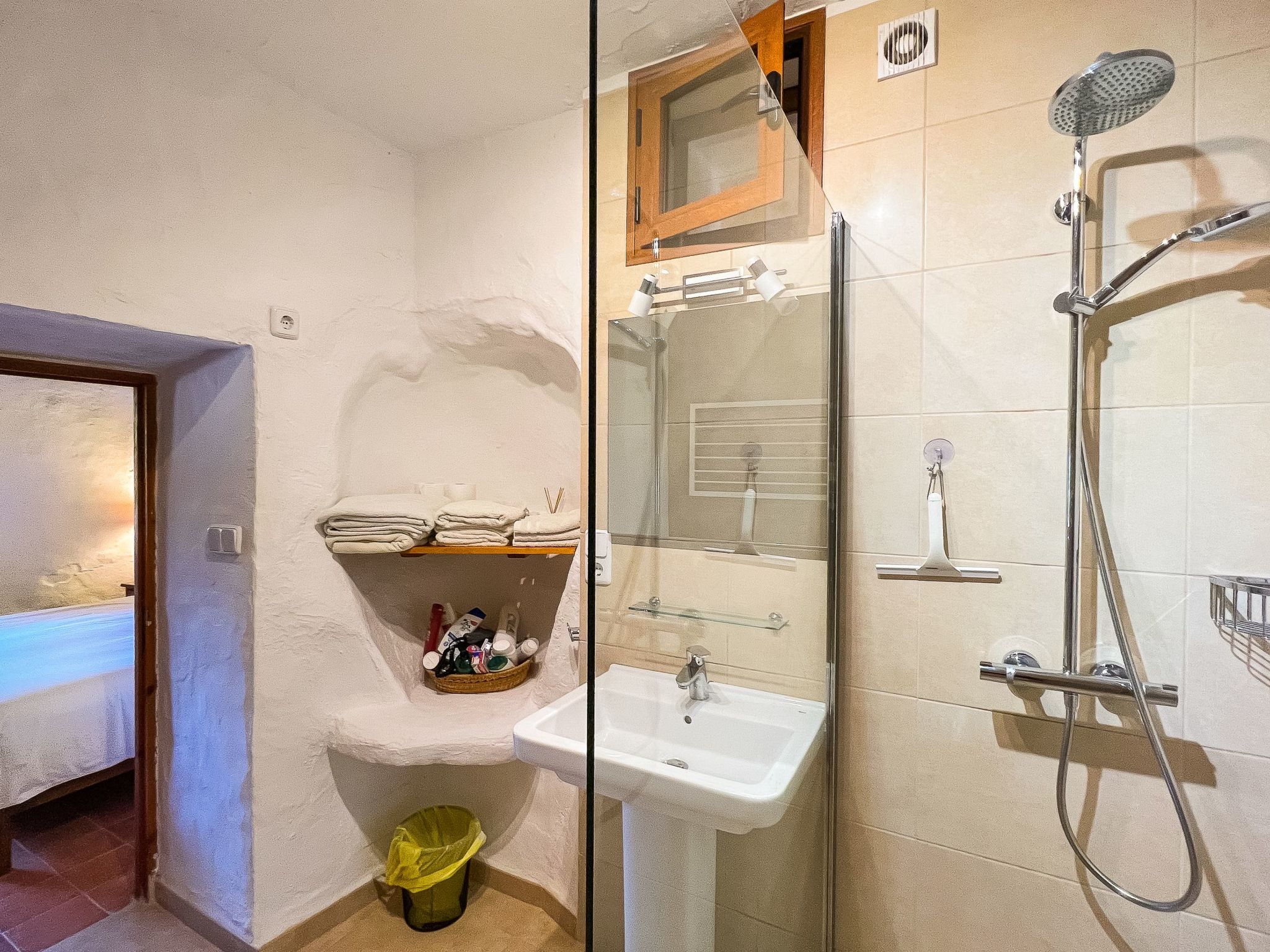 Cosy farmhouse with a beautiful garden. When we enter the house, we arrive in a bright living-dining area. On this floor we also have a fully equipped kitchen, a guest toilet and the master bedroom with en suite shower. On the floor there are three more bedrooms, two of them with two single beds and another with a double bed. These bedrooms share a bathroom with shower and bath.Air conditioning in the bedrooms with fixed and limited schedule from 21.00 to 08.00.If your stay is longer than a week and you wish to change the bed linen/towels, this is only possible for an extra fee.