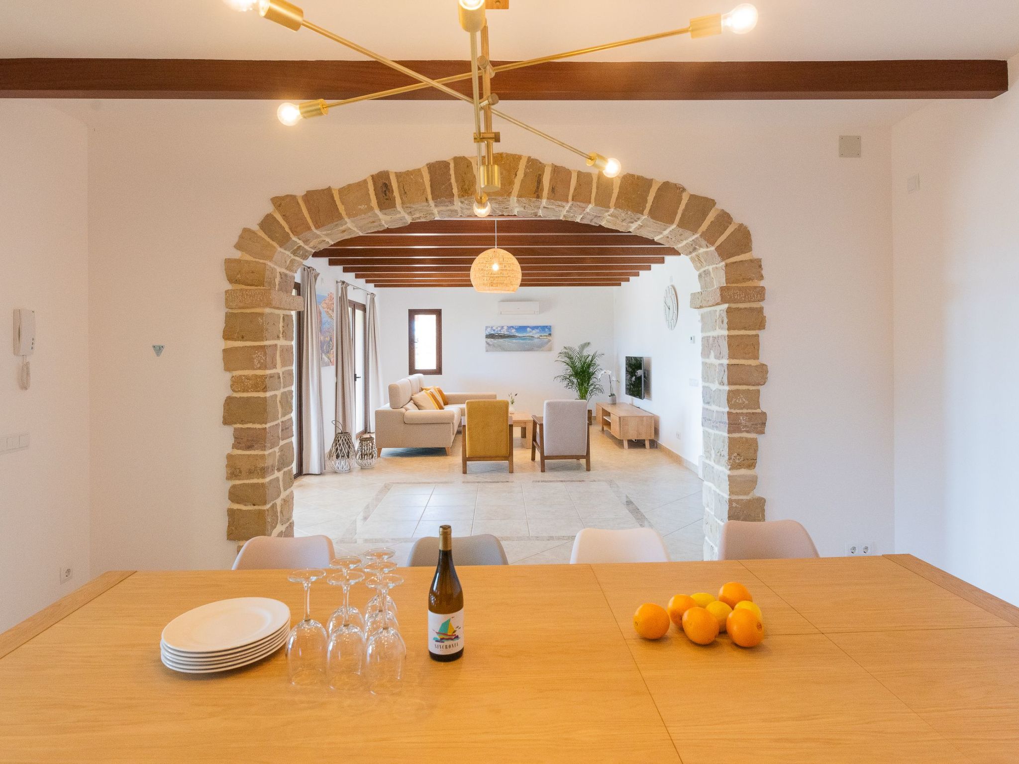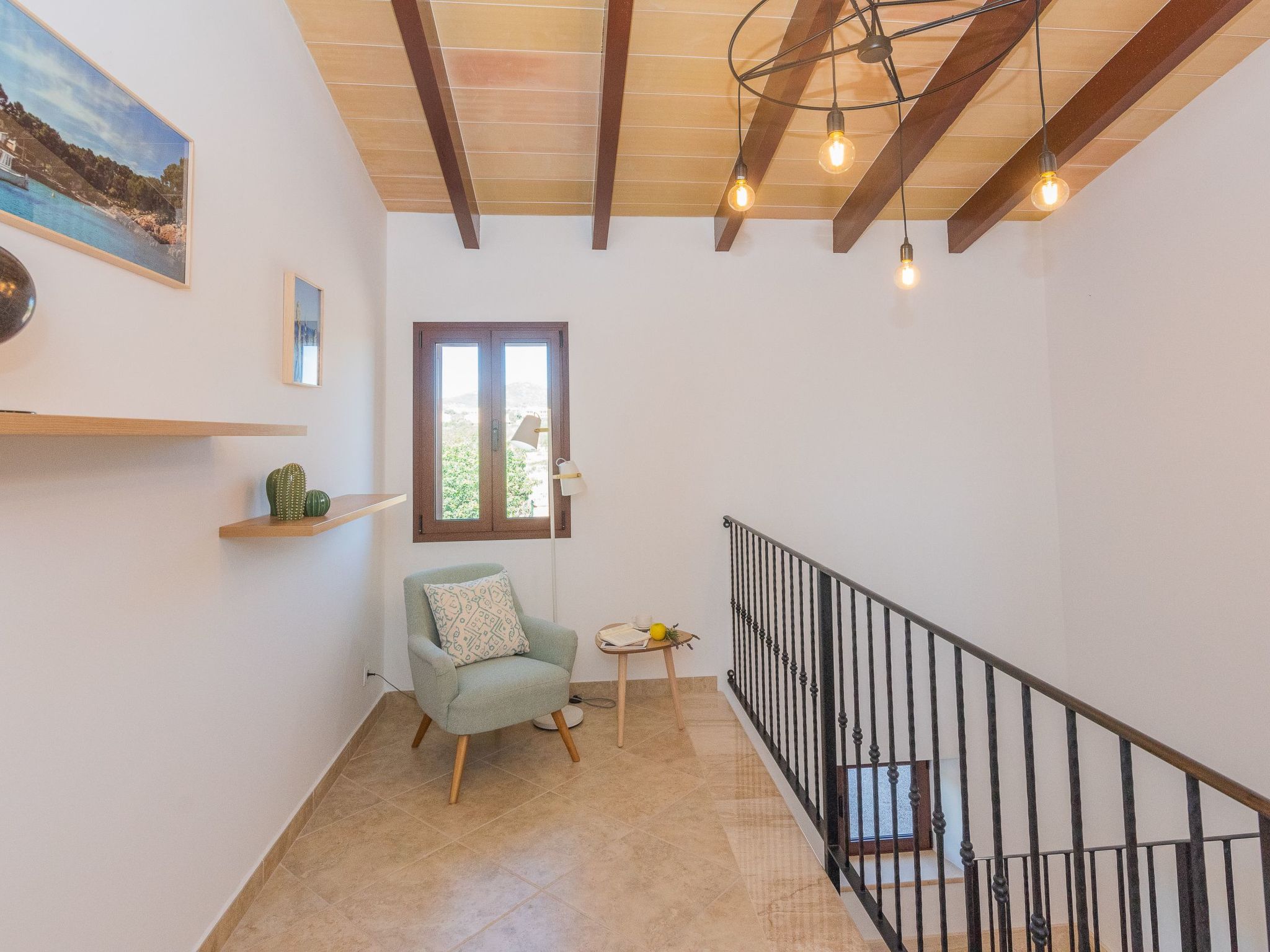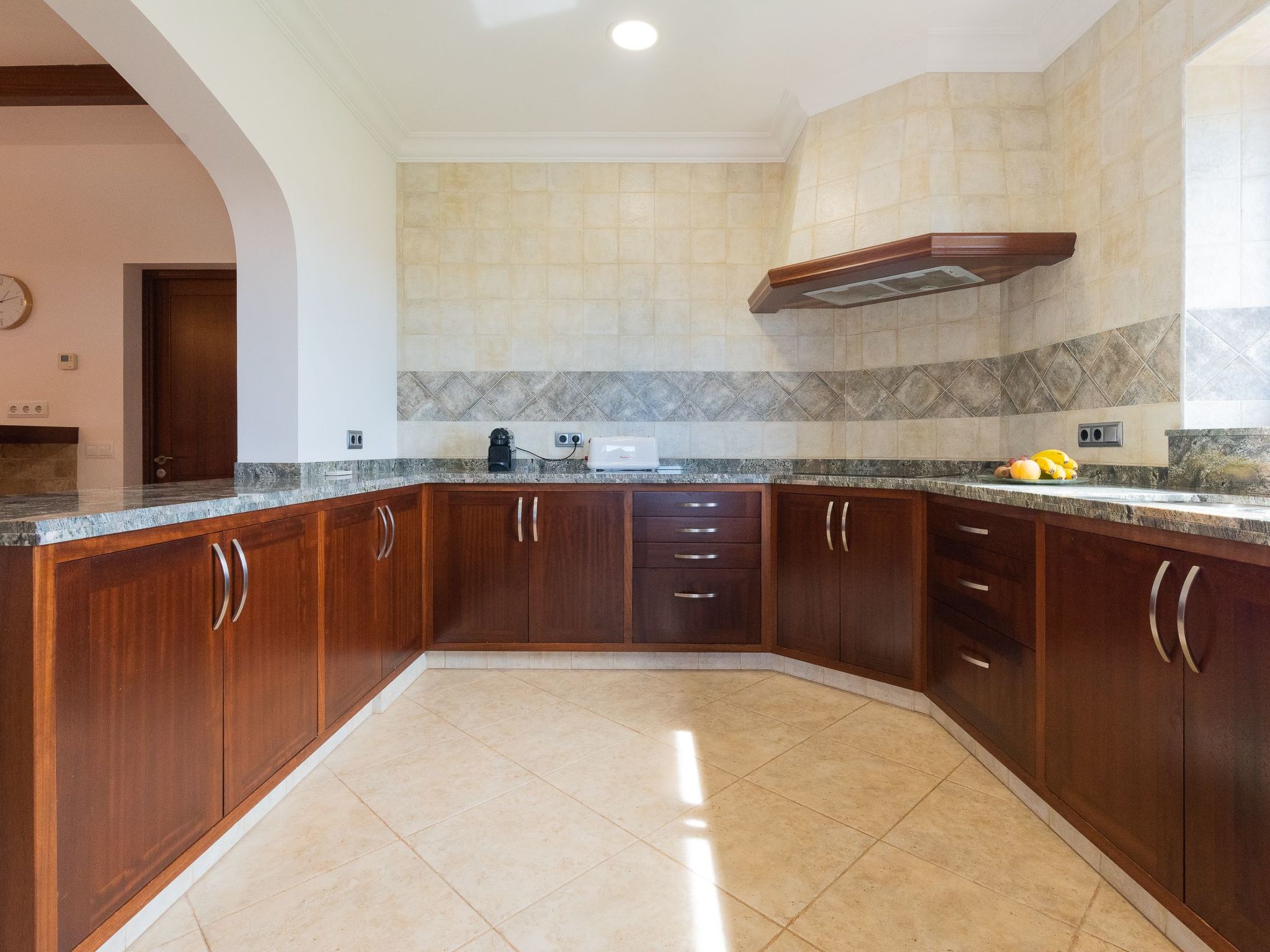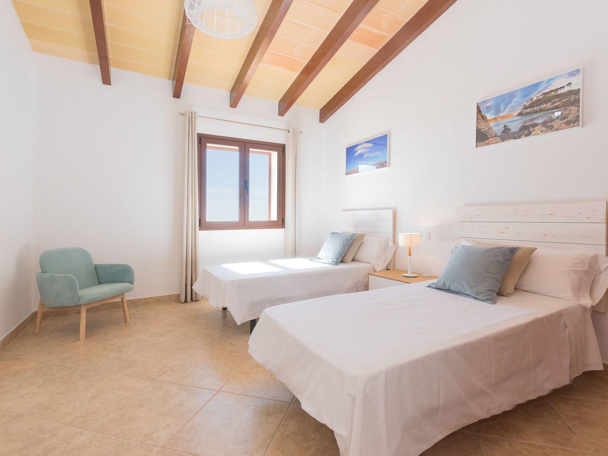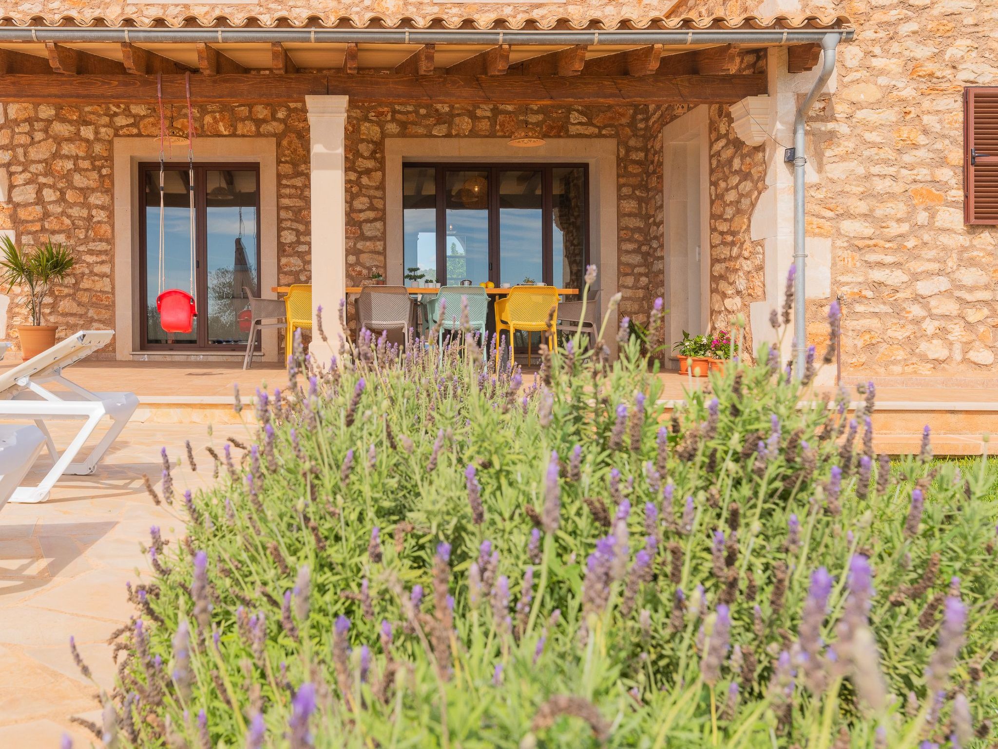Dreamlike noble finca on two floors. On the ground floor is the living room and the open-plan kitchen with dining area. The furnishings are chic but not overloaded. There is also a bedroom with double bed and en suite shower room on the ground floor. There is also a utility room and a guest toilet. 4 further bedrooms are located on the floor. There are two bedrooms with double beds and two bedrooms with two single beds each. These rooms share 2 bathrooms, one with separate bath and shower, the other with shower. Large sun terrace with views of the rural surroundings. Very nice outdoor area. Large long veranda with dining table. Lawned garden, with pool safely fenced for small children and artificial grass area. The magnificent pool has Roman steps. There is also an outdoor shower, outdoor barbecue and garden shed with outdoor bathroom. Air conditioning hot / cold with limited and fixed usage times of 10 hours/day.