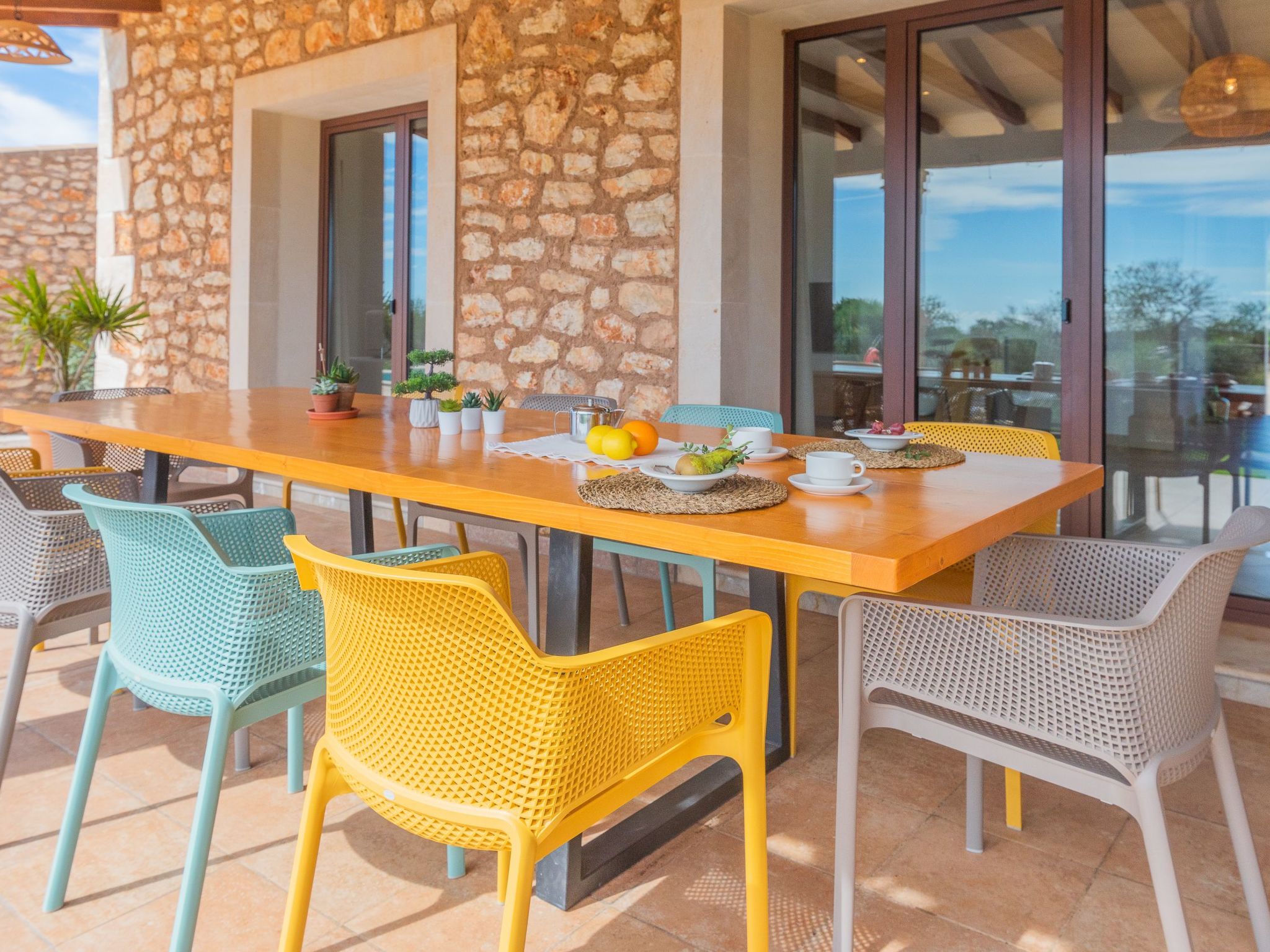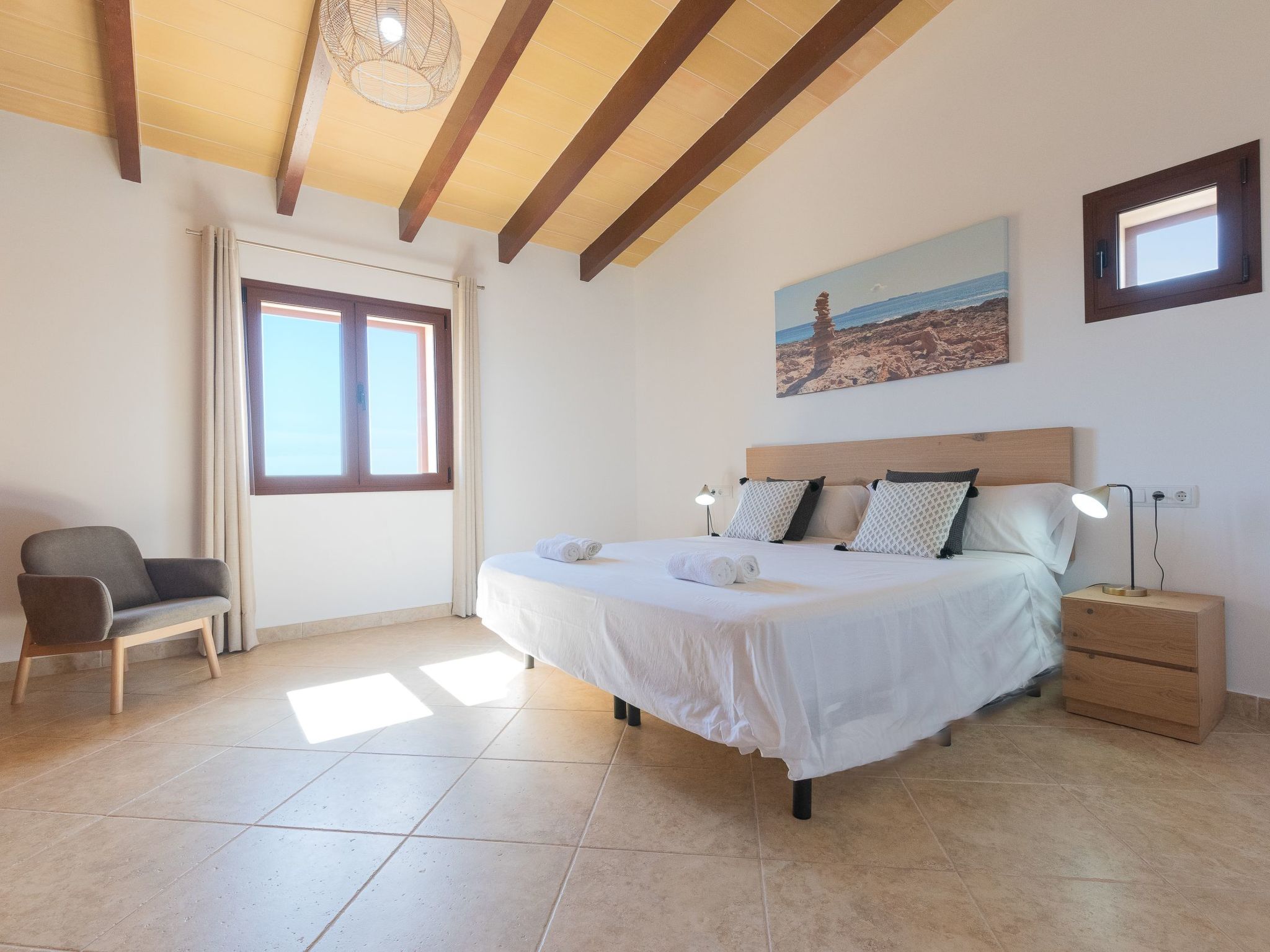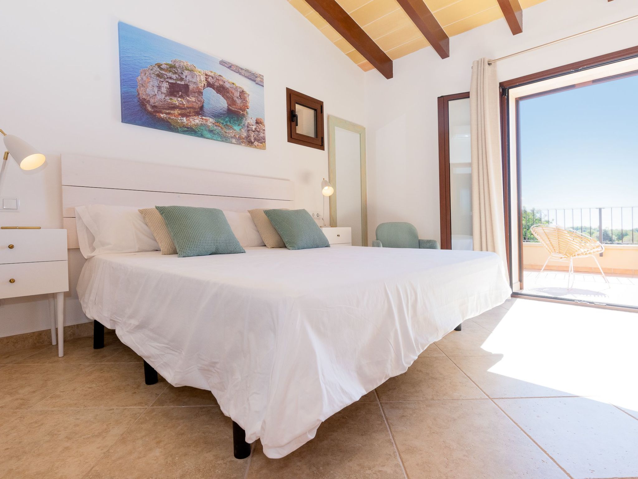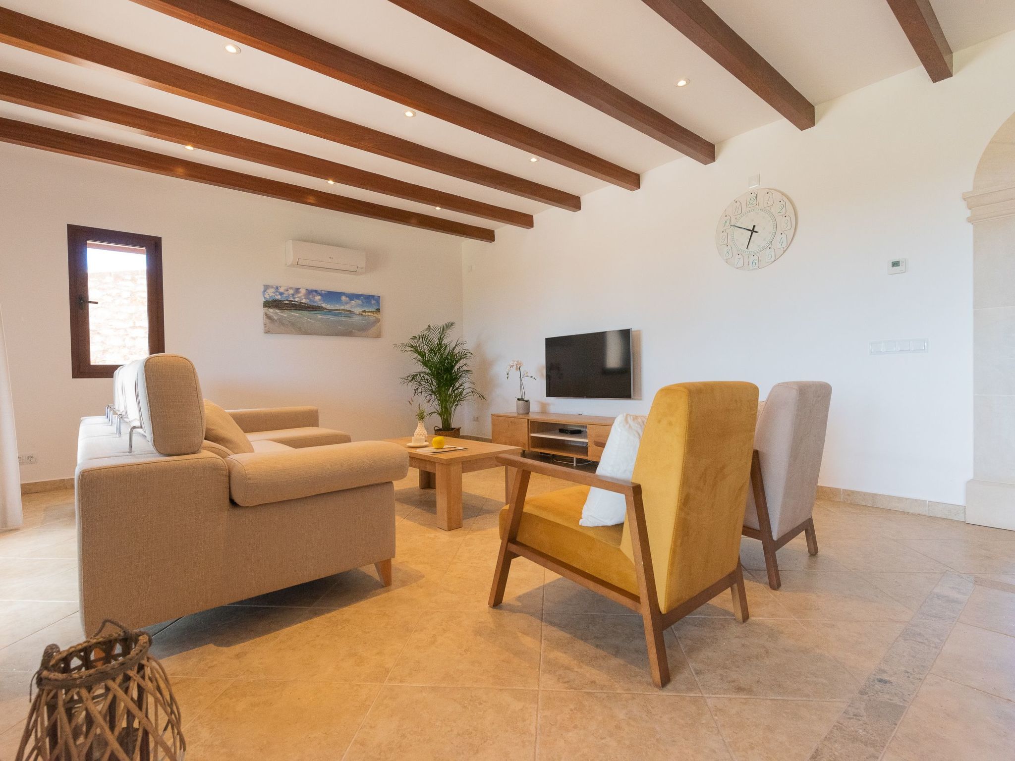 Dreamlike noble finca on two floors. On the ground floor is the living room and the open-plan kitchen with dining area. The furnishings are chic but not overloaded. There is also a bedroom with double bed and en suite shower room on the ground floor. There is also a utility room and a guest toilet. 4 further bedrooms are located on the floor. There are two bedrooms with double beds and two bedrooms with two single beds each. These rooms share 2 bathrooms, one with separate bath and shower, the other with shower. Large sun terrace with views of the rural surroundings. Very nice outdoor area. Large long veranda with dining table. Lawned garden, with pool safely fenced for small children and artificial grass area. The magnificent pool has Roman steps. There is also an outdoor shower, outdoor barbecue and garden shed with outdoor bathroom. Air conditioning hot / cold with limited and fixed usage times of 10 hours/day.