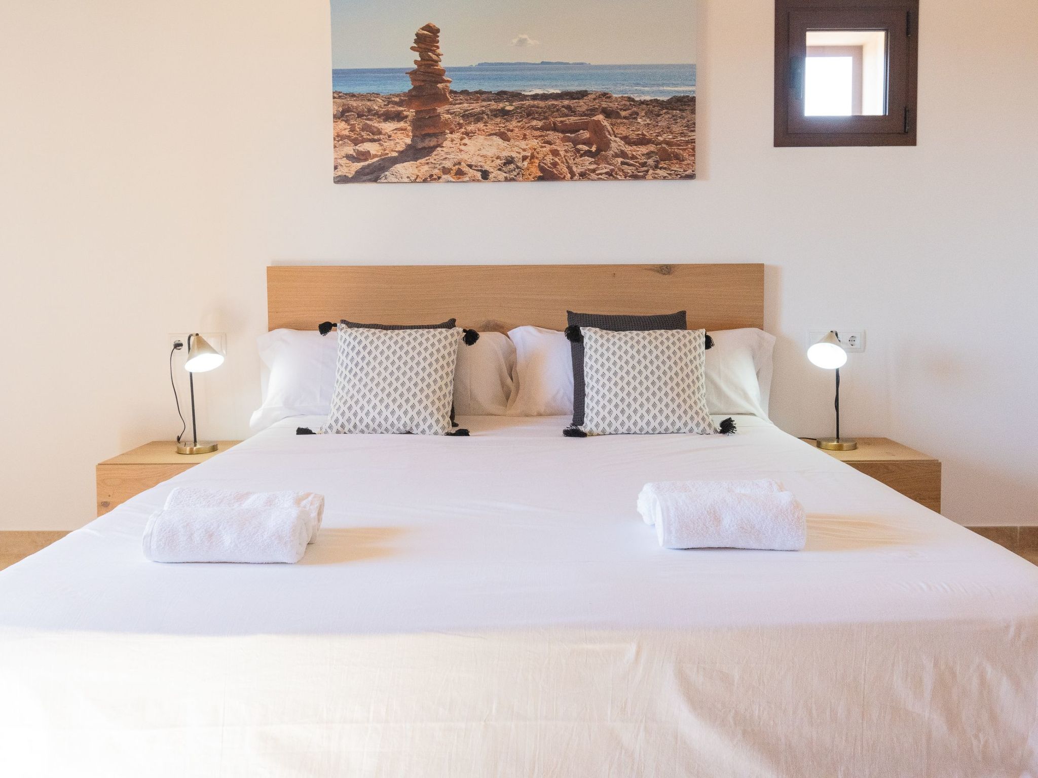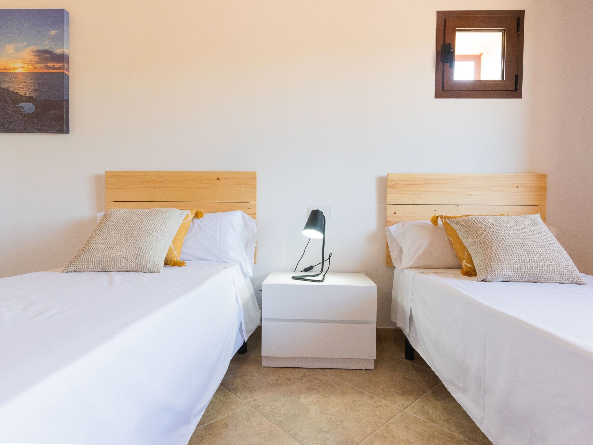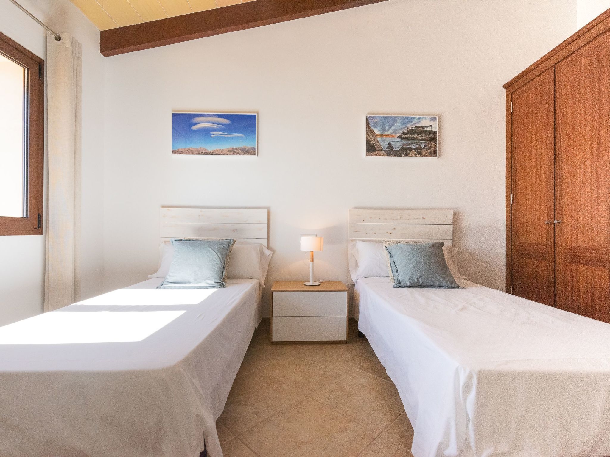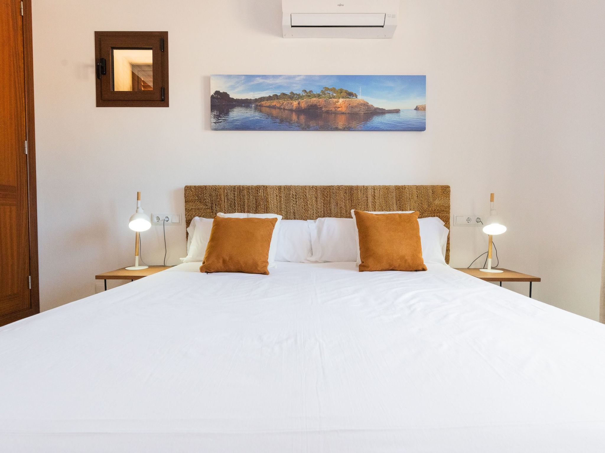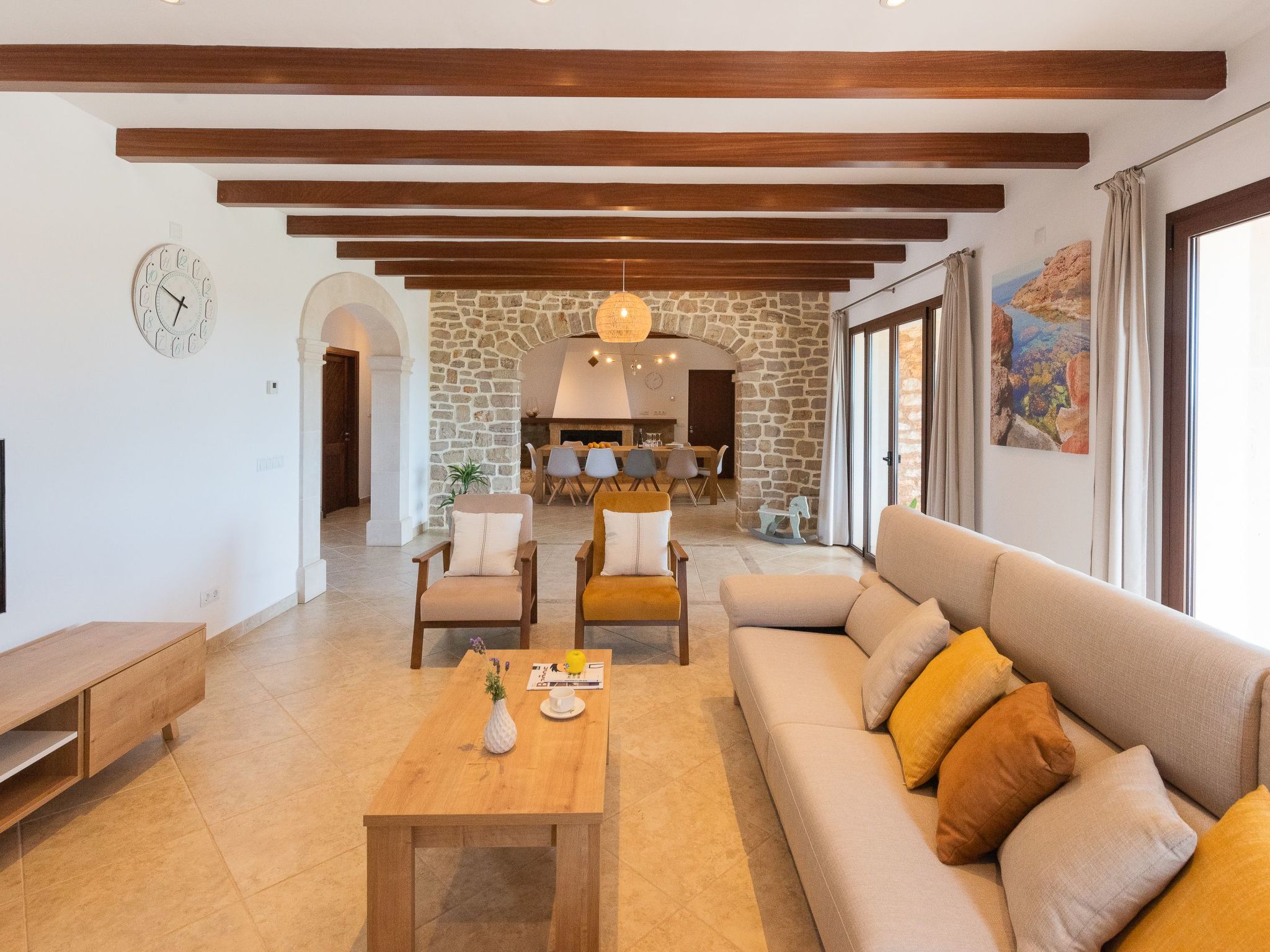 Dreamlike noble finca on two floors. On the ground floor is the living room and the open-plan kitchen with dining area. The furnishings are chic but not overloaded. There is also a bedroom with double bed and en suite shower room on the ground floor. There is also a utility room and a guest toilet. 4 further bedrooms are located on the floor. There are two bedrooms with double beds and two bedrooms with two single beds each. These rooms share 2 bathrooms, one with separate bath and shower, the other with shower. Large sun terrace with views of the rural surroundings. Very nice outdoor area. Large long veranda with dining table. Lawned garden, with pool safely fenced for small children and artificial grass area. The magnificent pool has Roman steps. There is also an outdoor shower, outdoor barbecue and garden shed with outdoor bathroom. Air conditioning hot / cold with limited and fixed usage times of 10 hours/day.