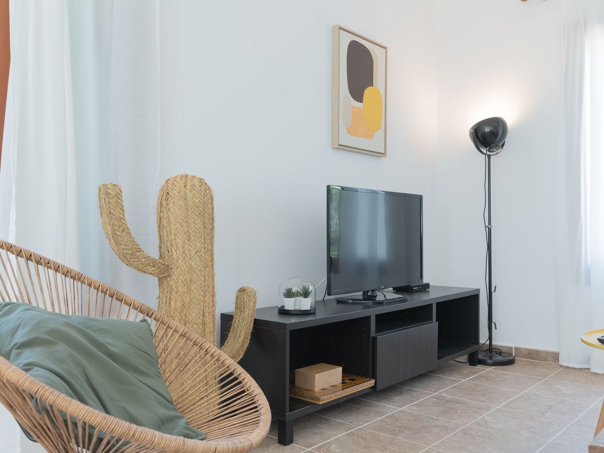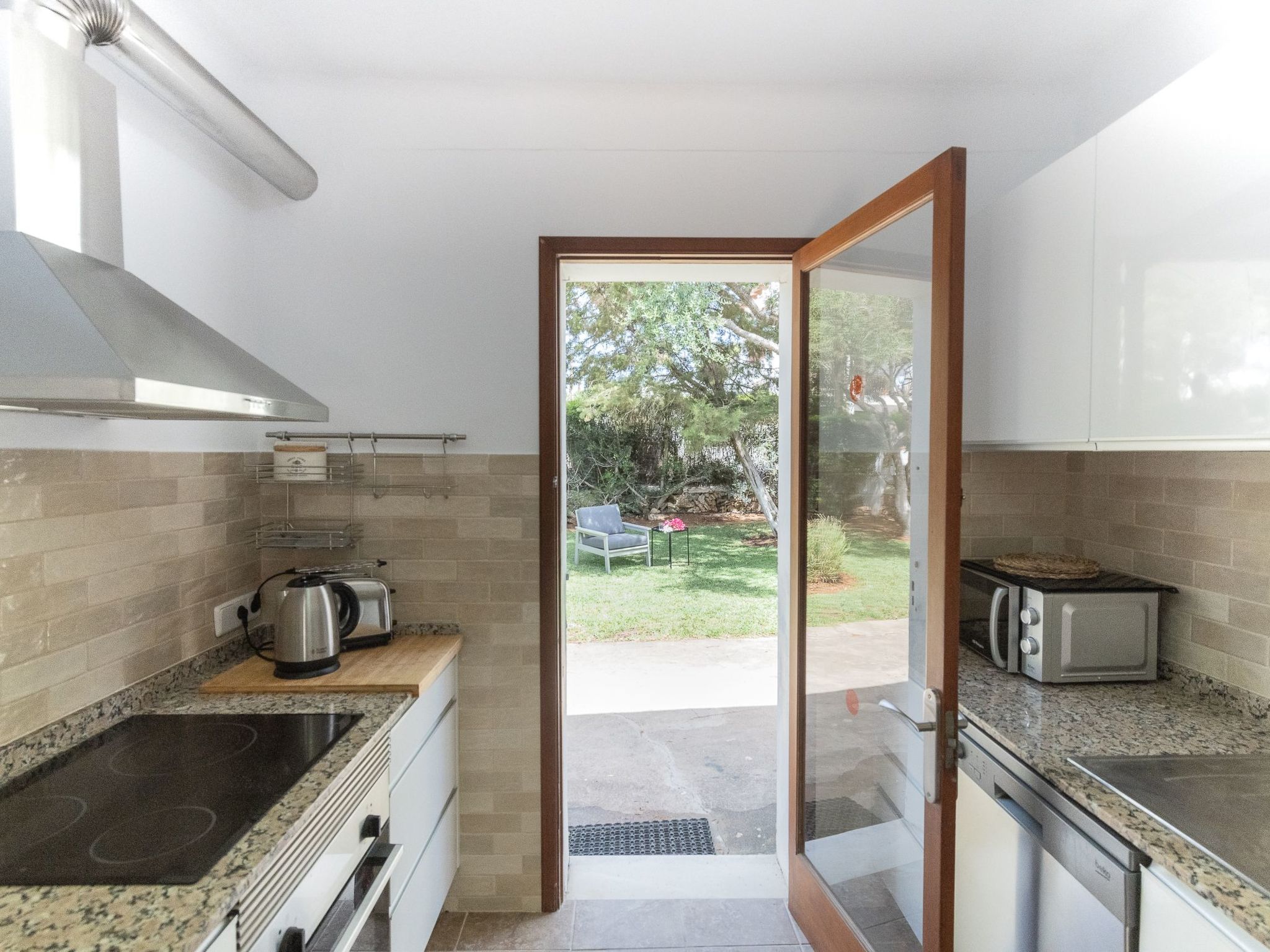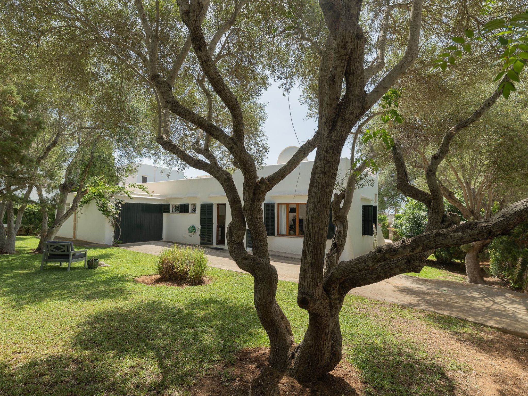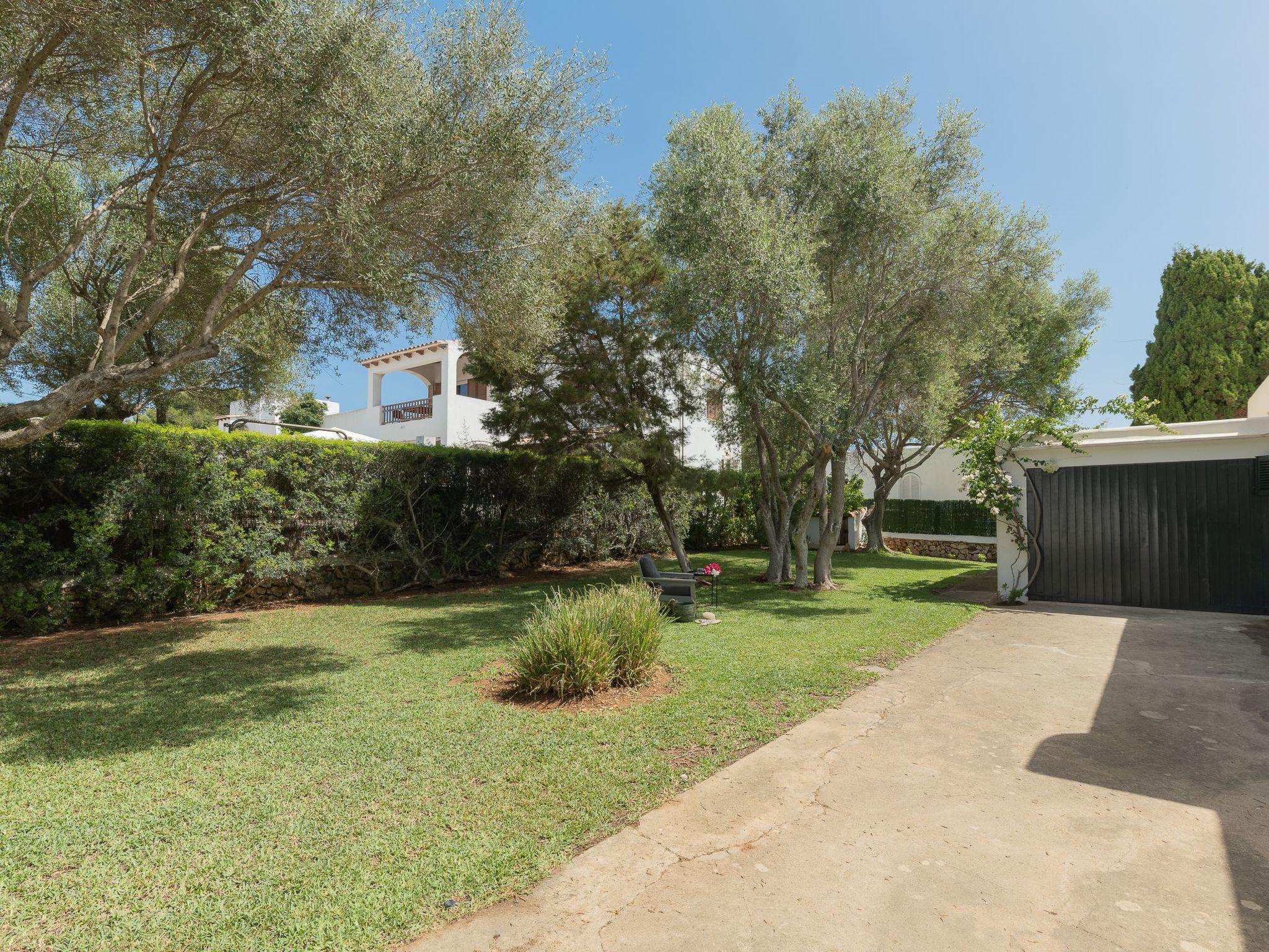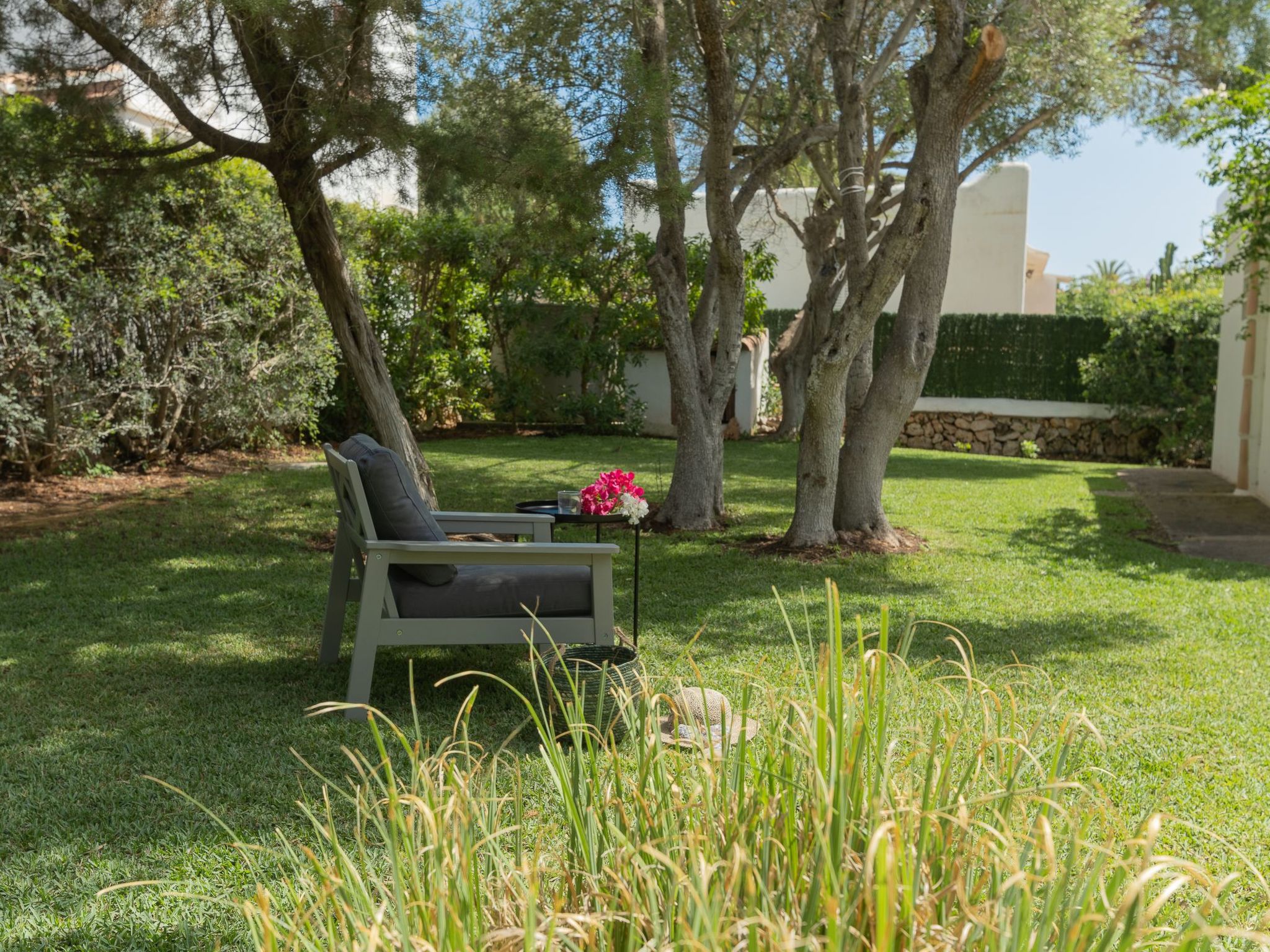 Dora has a garden with a well-kept lawn, Mediterranean plants, palm trees and olive trees, which provide welcome shade during the hot summer days. At the front there is a terrace overlooking the garden and the pool, with a table and chairs so that the delicacies prepared on the barbecue can be enjoyed "al fresco". The kidney-shaped pool with brick steps and a ladder offers refreshment, while the sun loungers invite you to enjoy the long summer days there. A cosy chill-out set also enriches the outdoor area.