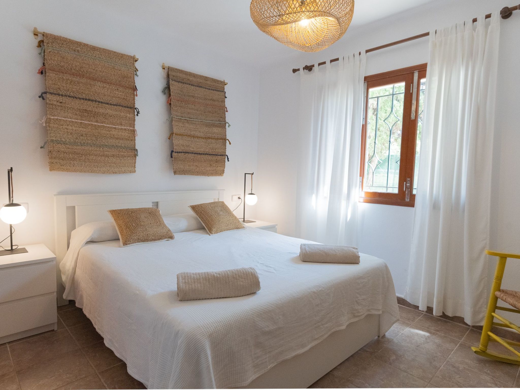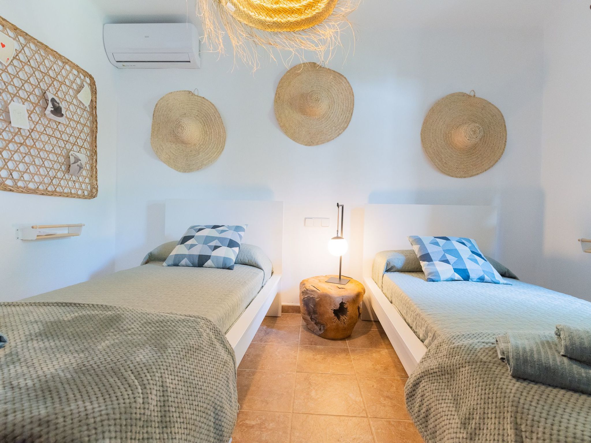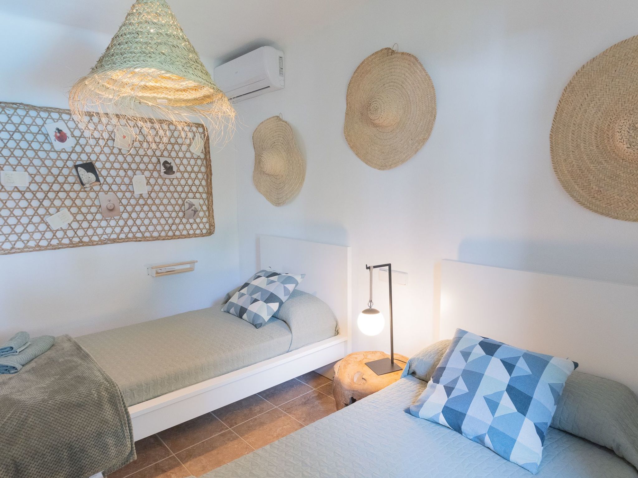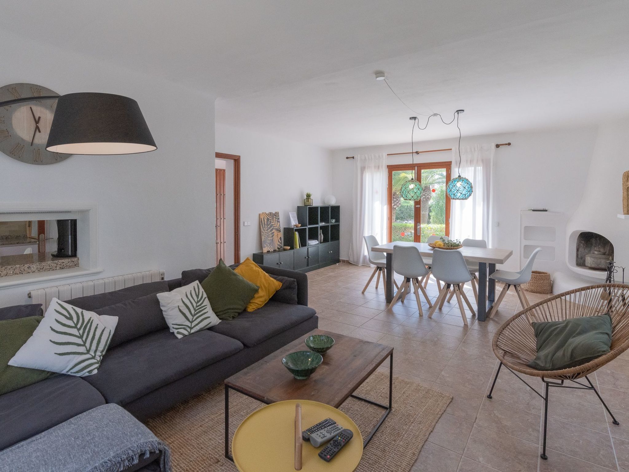 The house Dora is built in the typical Ibizan style of Cala D'Or and has been recently renovated while retaining some original elements. The entrance leads directly into the spacious living/dining room with a cosy sofa and dining area. French doors lead out onto the terrace and pool area. The well-equipped kitchen has access to the terrace and the rear garden. Three bedrooms are available. Two rooms each have two single beds, the third room has a double bed. The bedrooms share two modern bathrooms with showers.