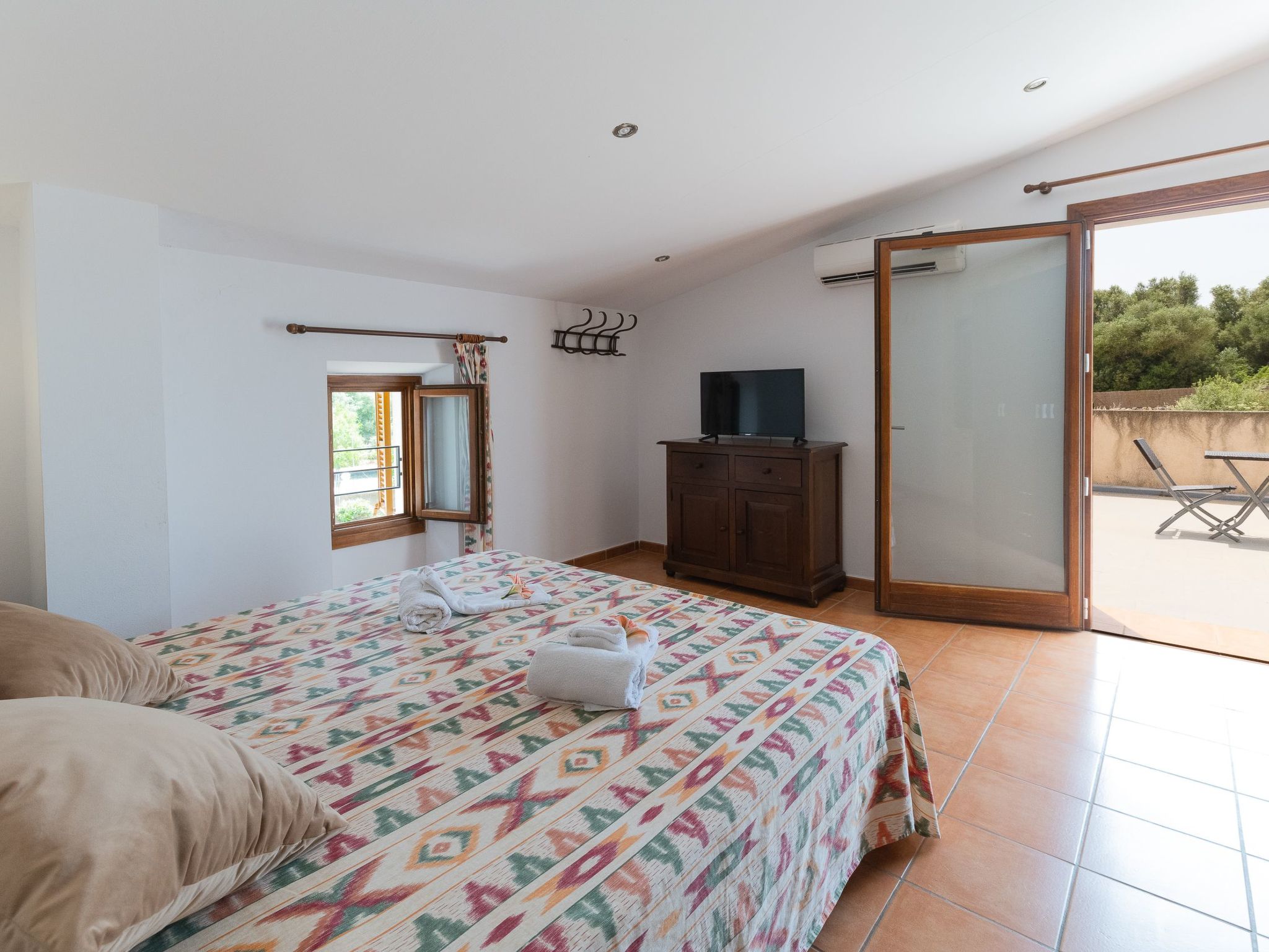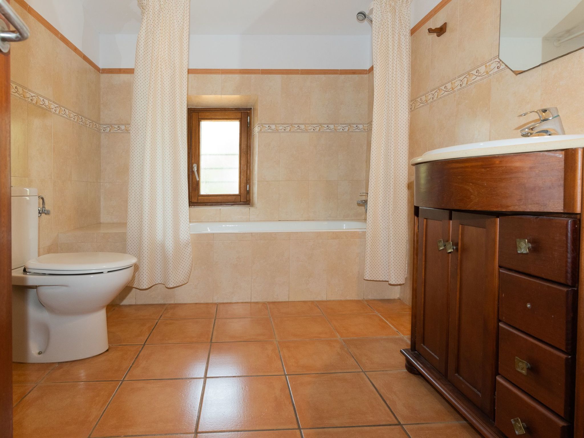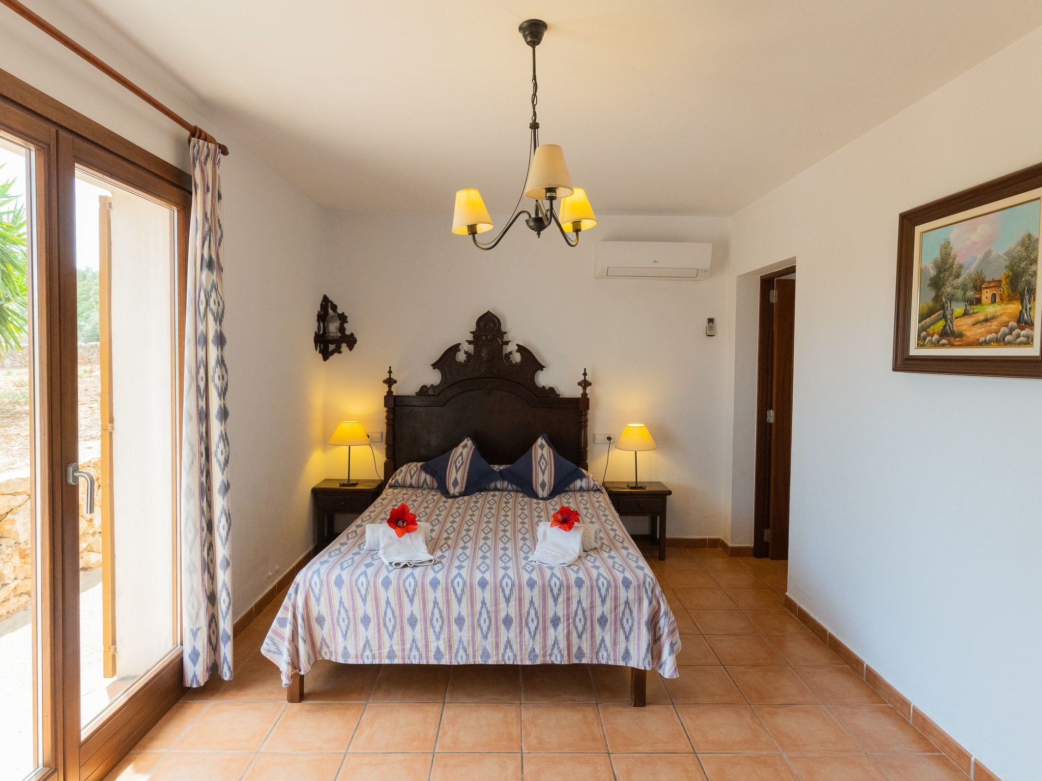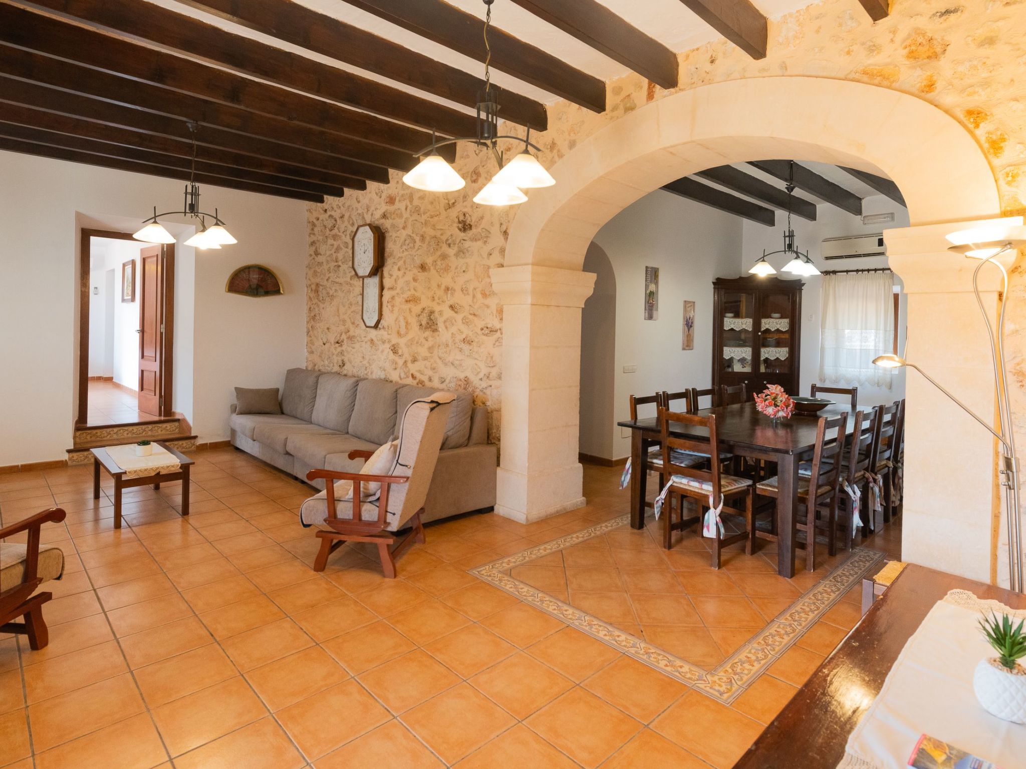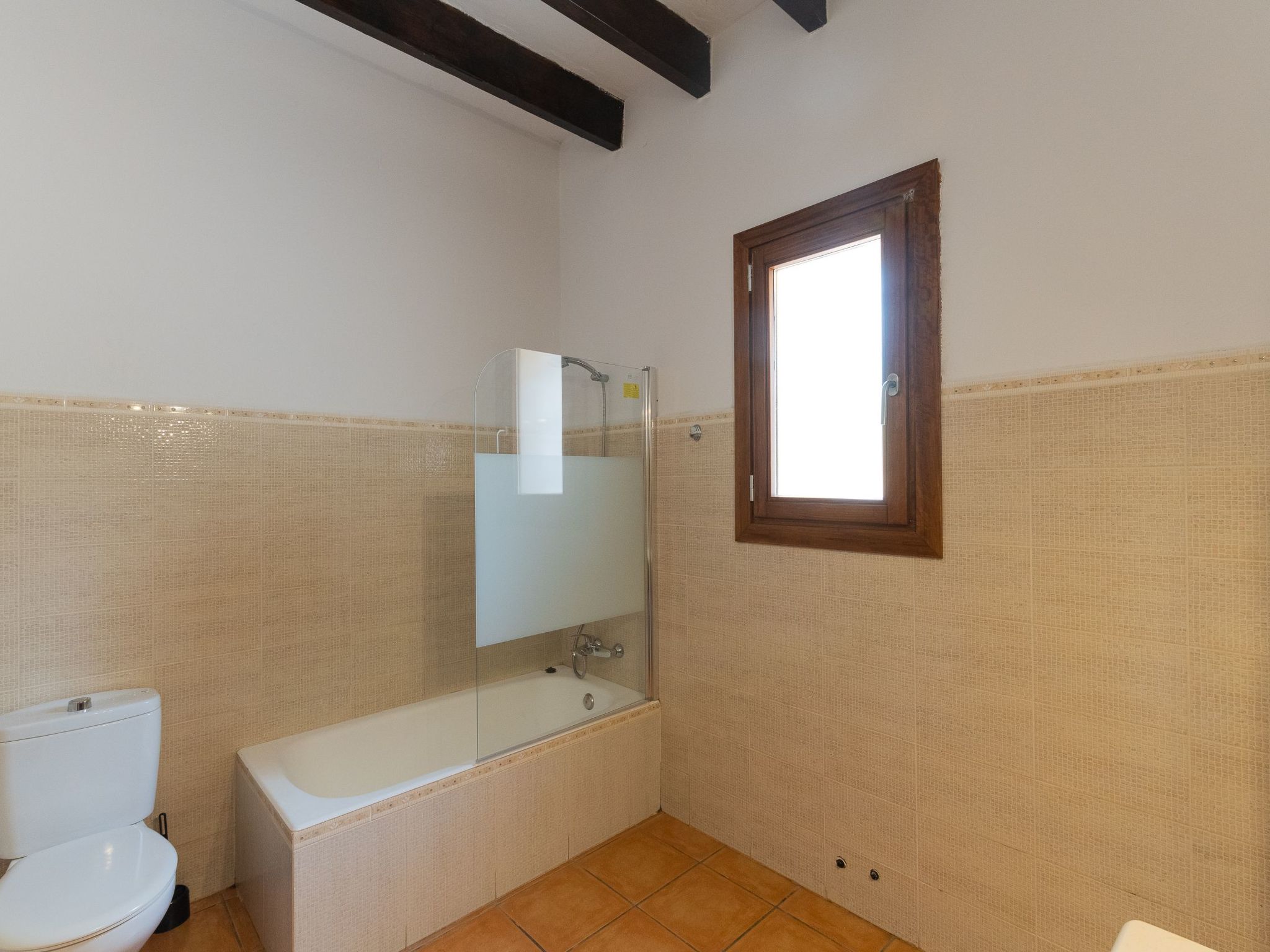 Traditional house in rustic Mallorcan style with main house and a small casita. In the main house. The entrance leads directly into the living and dining area. Kitchen and laundry room. Double bedroom with exit to the outside and bathroom en suite. Bedroom with single beds and bathroom en suite. On the floor is the master bedroom with a double bed (two single beds pushed together), an en-suite bathroom and access to a terrace with wonderful views of the surrounding area. There are two further bedrooms, each with two single beds and en-suite bathrooms. One of these bedrooms also has access to the terrace. Near the pool there is a small cottage, the casita, with a living room with sofa bed, a kitchen area with fridge and a 2-burner cooker and dining area. On the upper floor there is a bedroom with a double bed and en-suite bathroom.