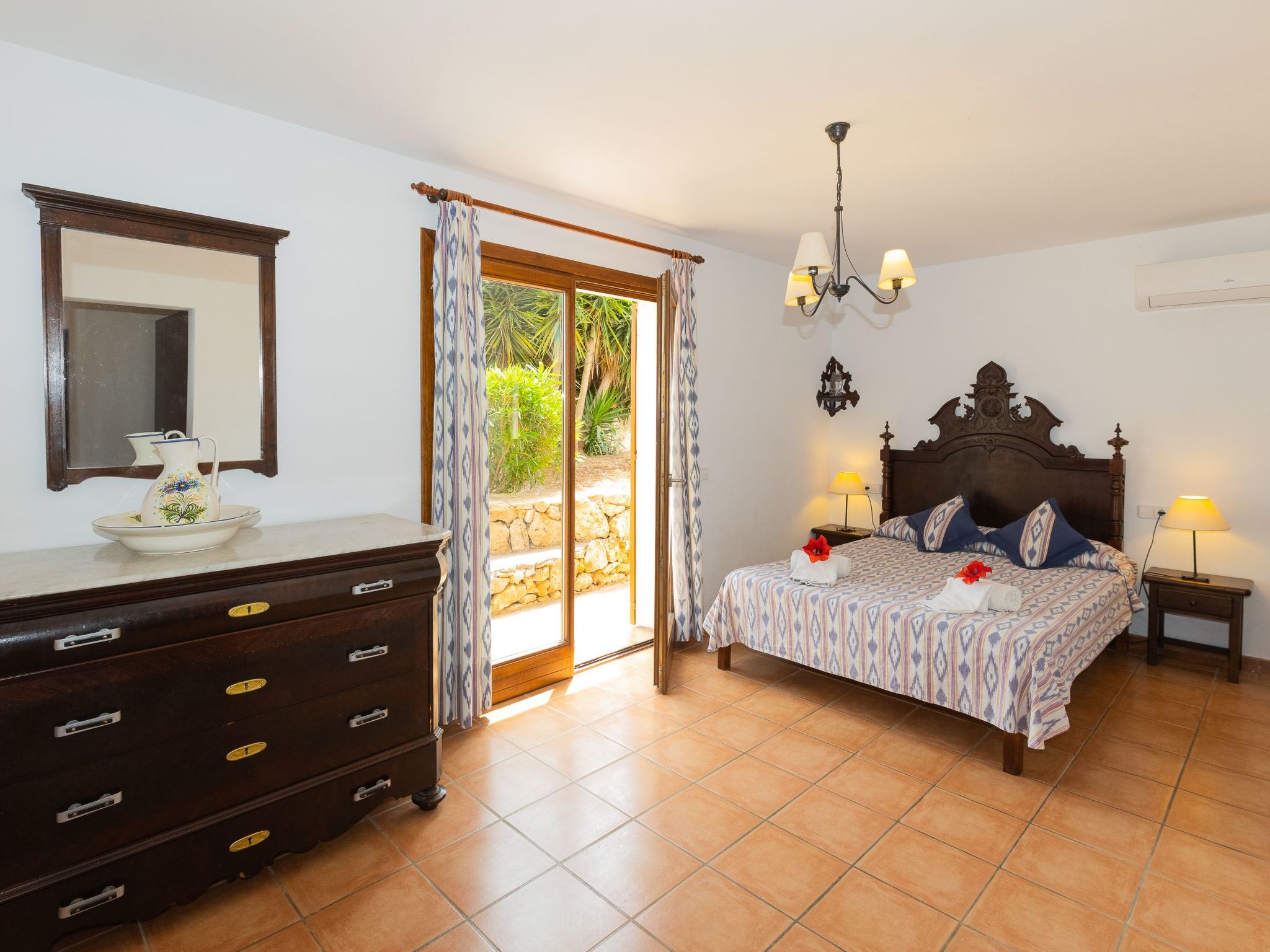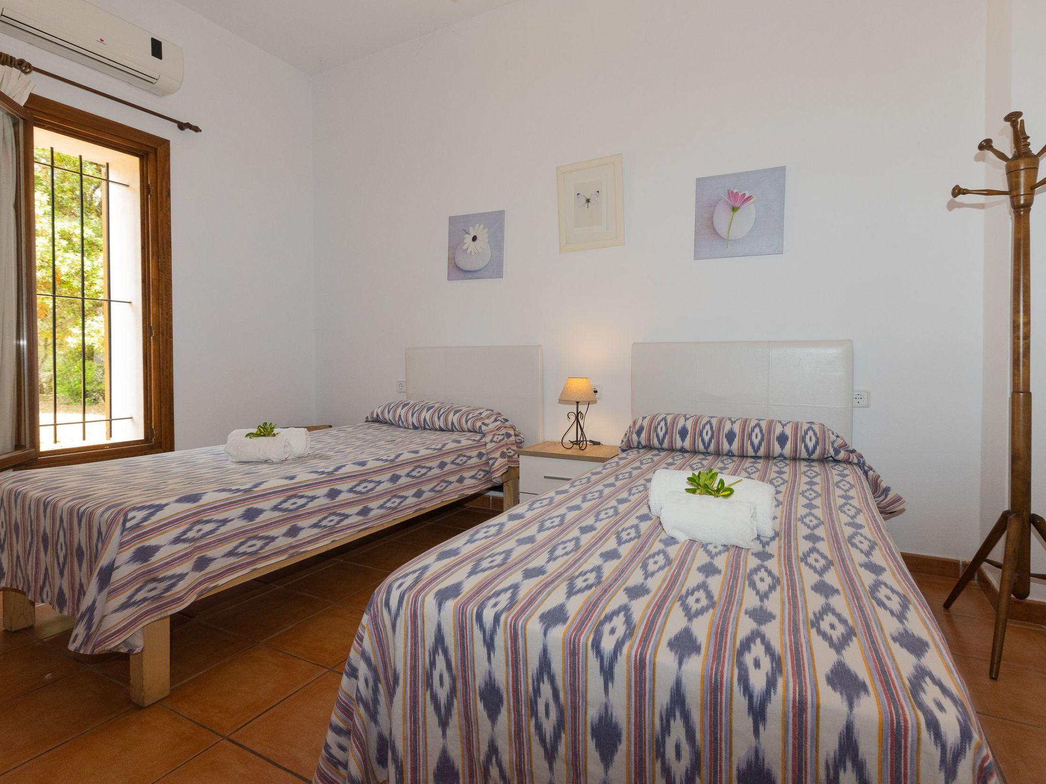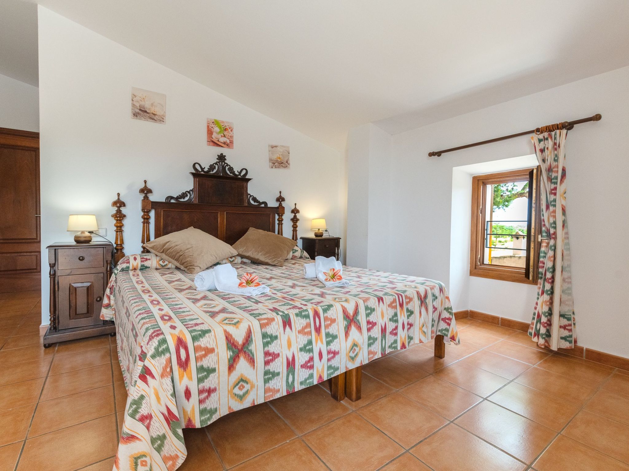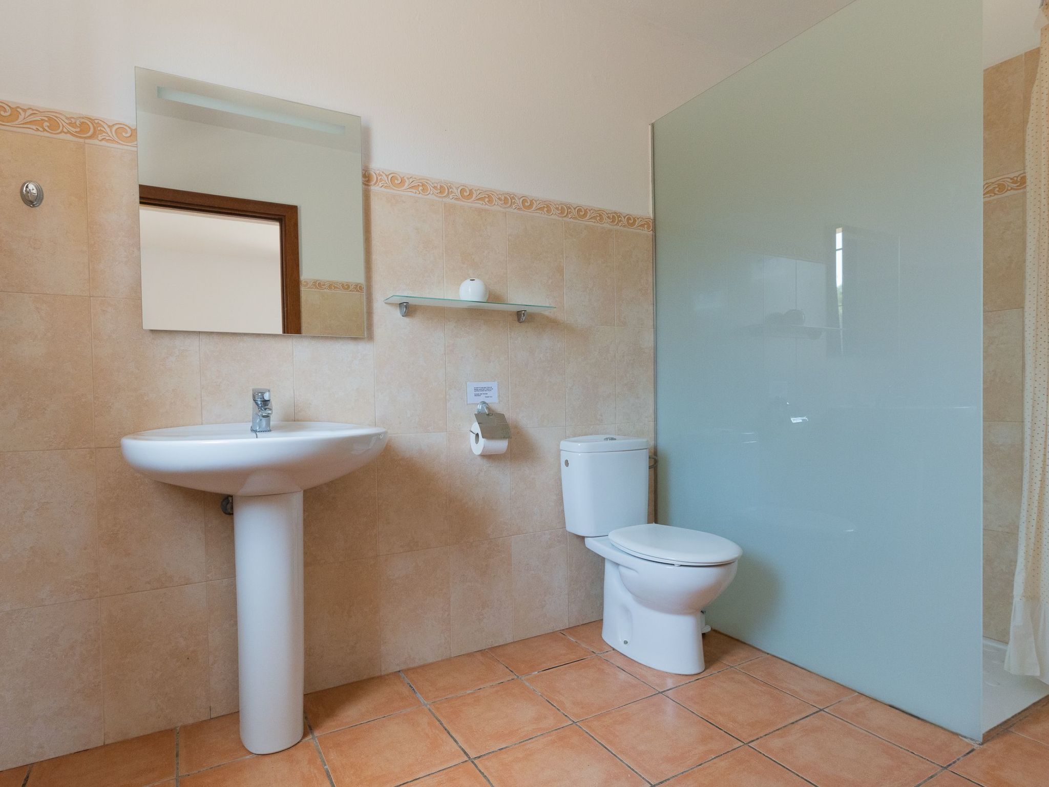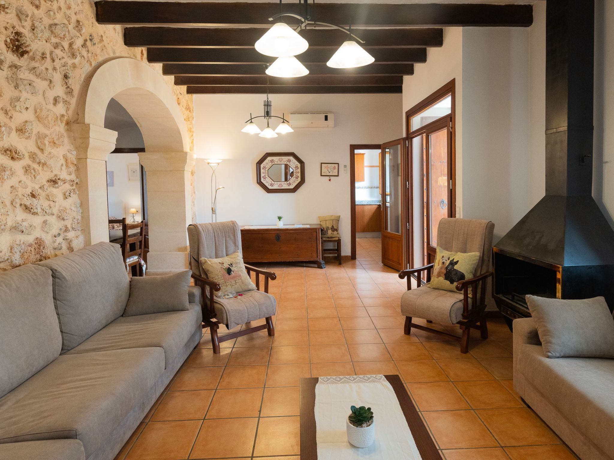 Traditional house in rustic Mallorcan style with main house and a small casita. In the main house. The entrance leads directly into the living and dining area. Kitchen and laundry room. Double bedroom with exit to the outside and bathroom en suite. Bedroom with single beds and bathroom en suite. On the floor is the master bedroom with a double bed (two single beds pushed together), an en-suite bathroom and access to a terrace with wonderful views of the surrounding area. There are two further bedrooms, each with two single beds and en-suite bathrooms. One of these bedrooms also has access to the terrace. Near the pool there is a small cottage, the casita, with a living room with sofa bed, a kitchen area with fridge and a 2-burner cooker and dining area. On the upper floor there is a bedroom with a double bed and en-suite bathroom.