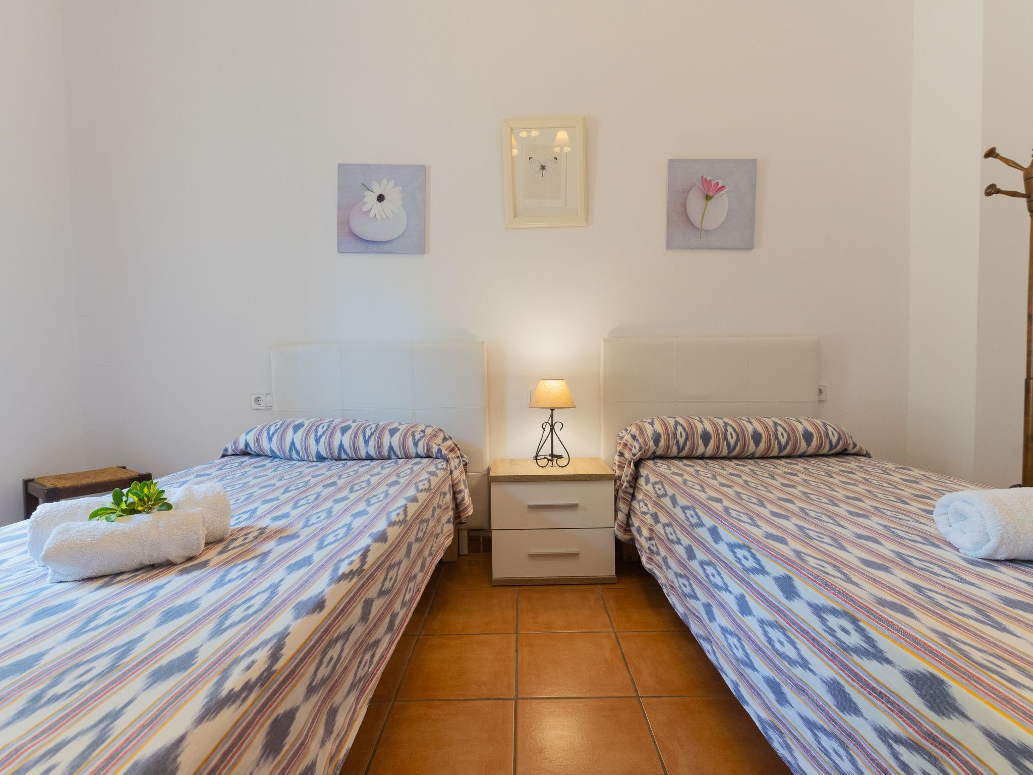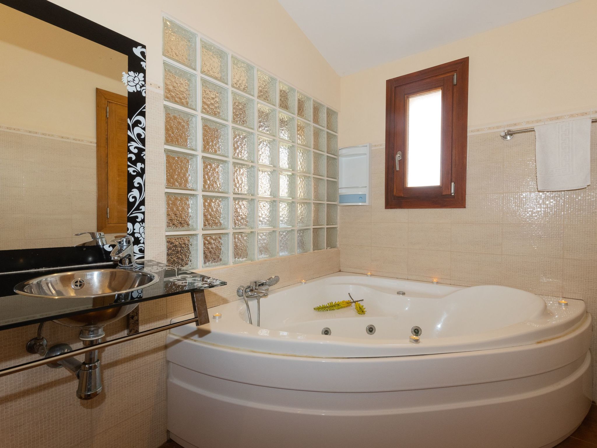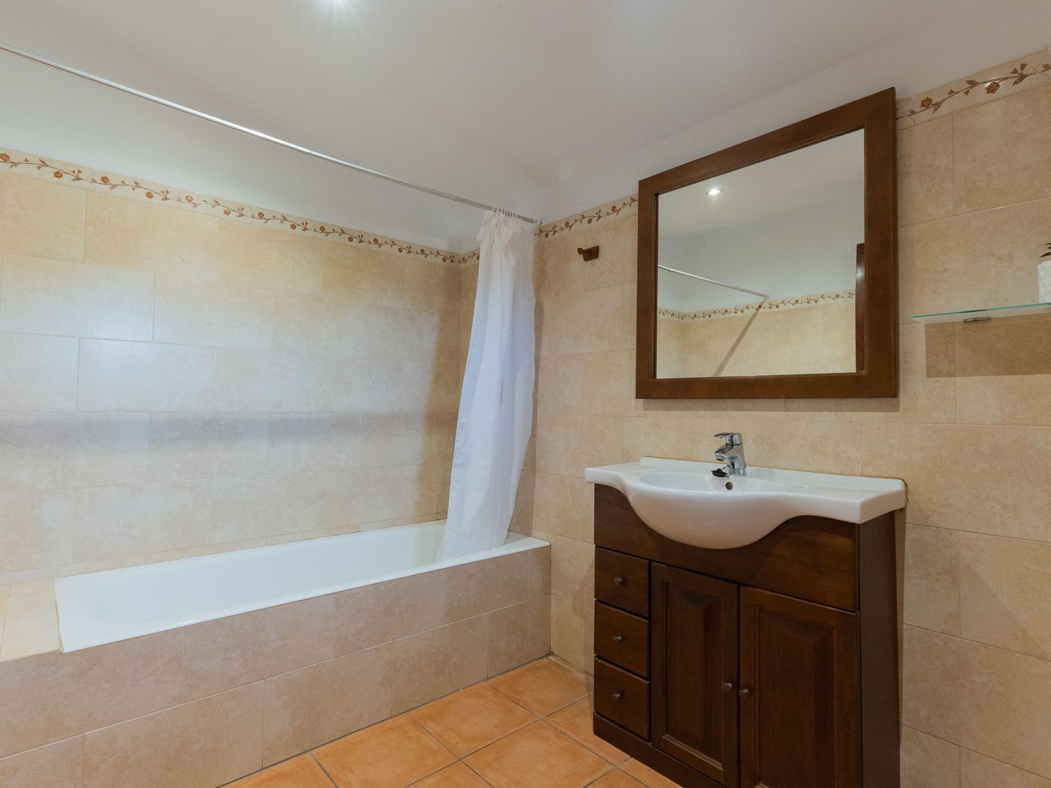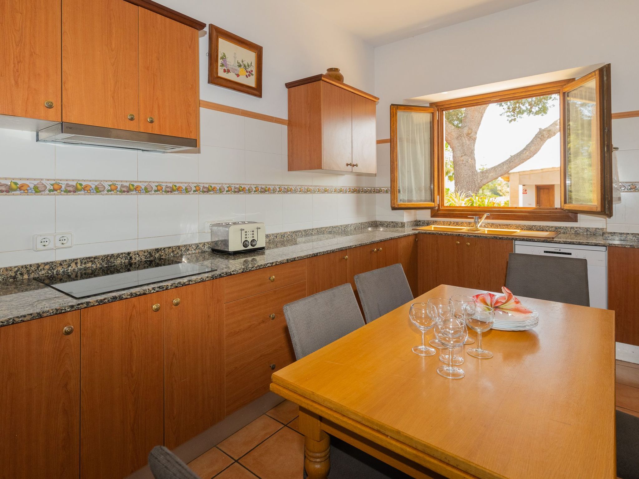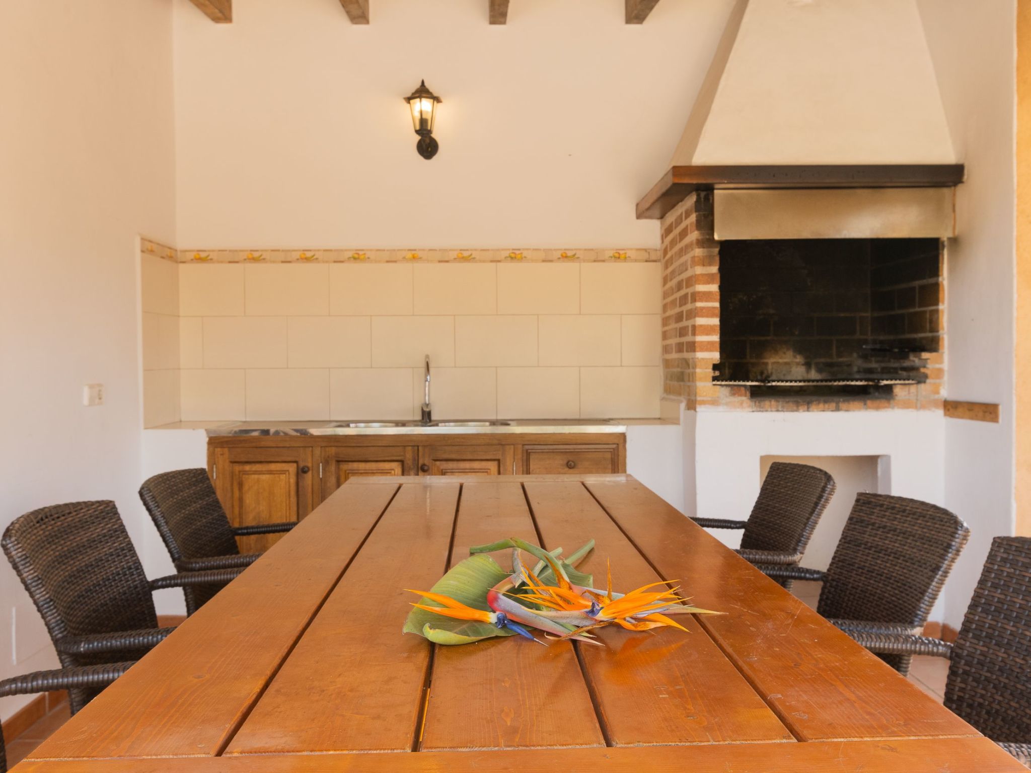 Traditional house in rustic Mallorcan style with main house and a small casita. In the main house. The entrance leads directly into the living and dining area. Kitchen and laundry room. Double bedroom with exit to the outside and bathroom en suite. Bedroom with single beds and bathroom en suite. On the floor is the master bedroom with a double bed (two single beds pushed together), an en-suite bathroom and access to a terrace with wonderful views of the surrounding area. There are two further bedrooms, each with two single beds and en-suite bathrooms. One of these bedrooms also has access to the terrace. Near the pool there is a small cottage, the casita, with a living room with sofa bed, a kitchen area with fridge and a 2-burner cooker and dining area. On the upper floor there is a bedroom with a double bed and en-suite bathroom.