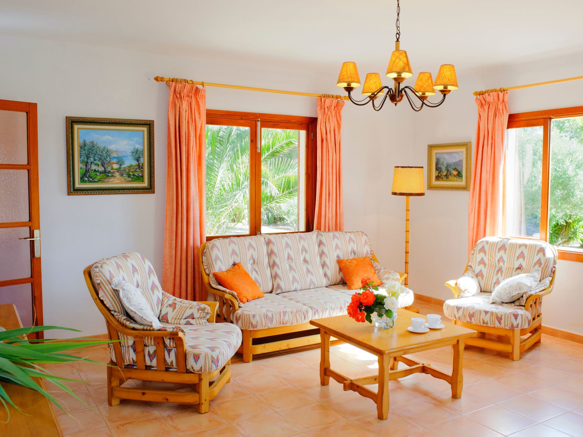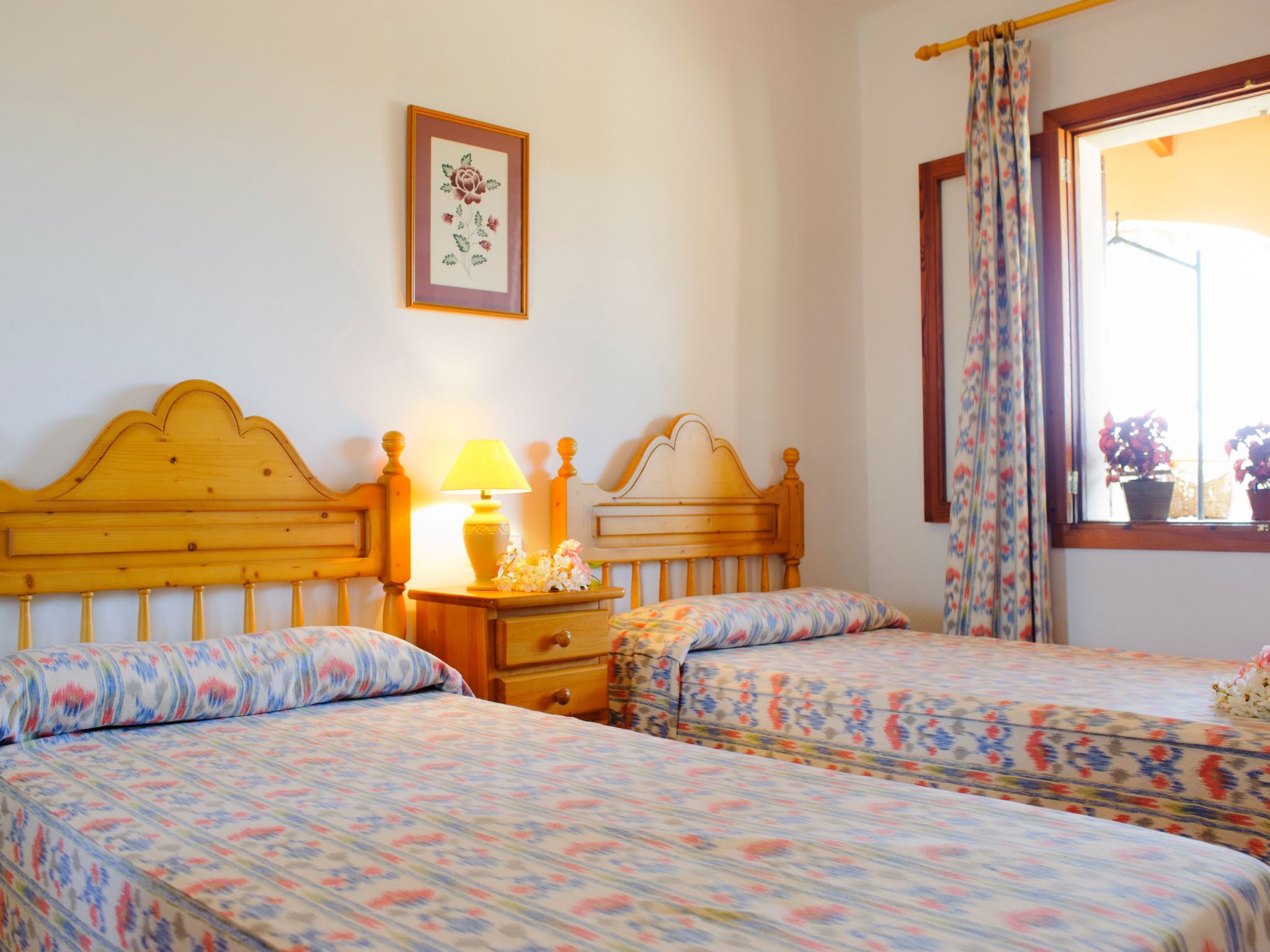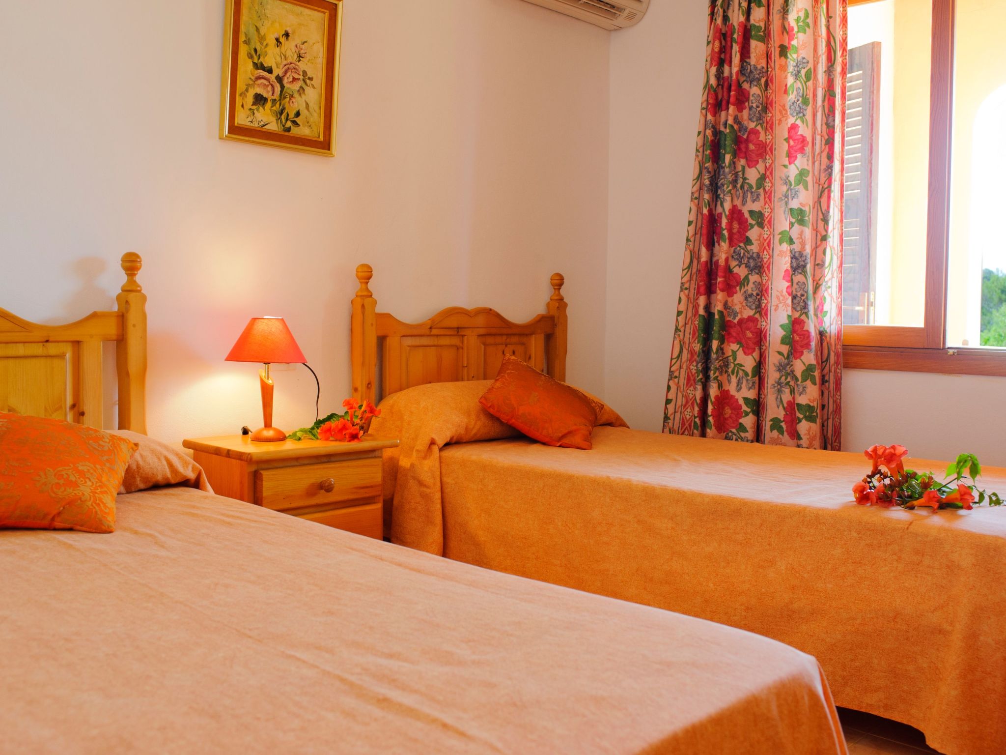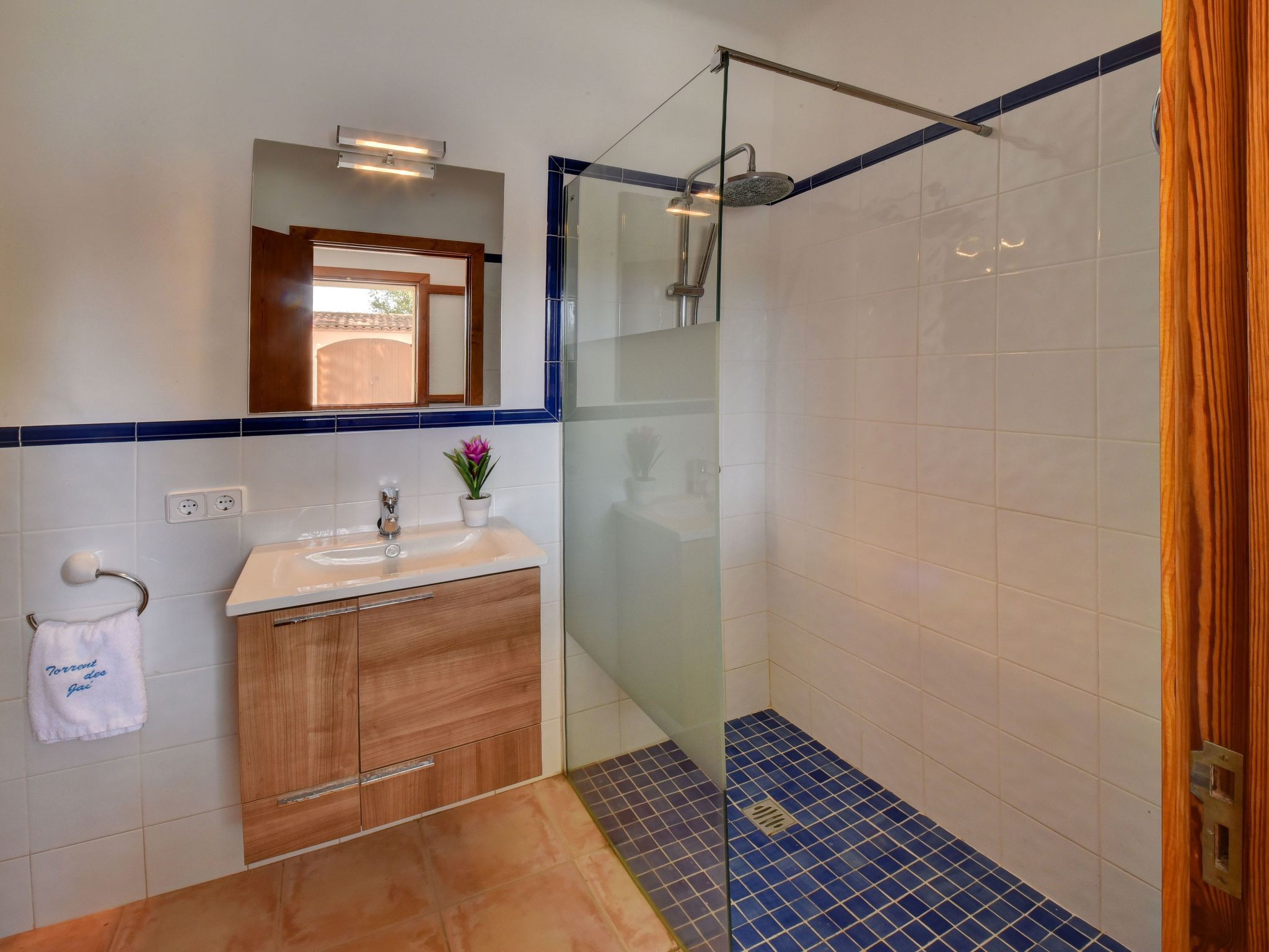 The finca is made up of two separate houses and is therefore ideal for large families and groups who like to holiday together but want to enjoy a certain degree of independence. The main house has a beautiful traditionally furnished living/dining area with vaulted ceilings and the American kitchen directly connected to it. In the main house there are two bedrooms with en suite bathrooms, one with a double bed and the other with two single beds. From the living/dining area you have access to the covered terrace and the pool. Here you can enjoy meals in the open air.