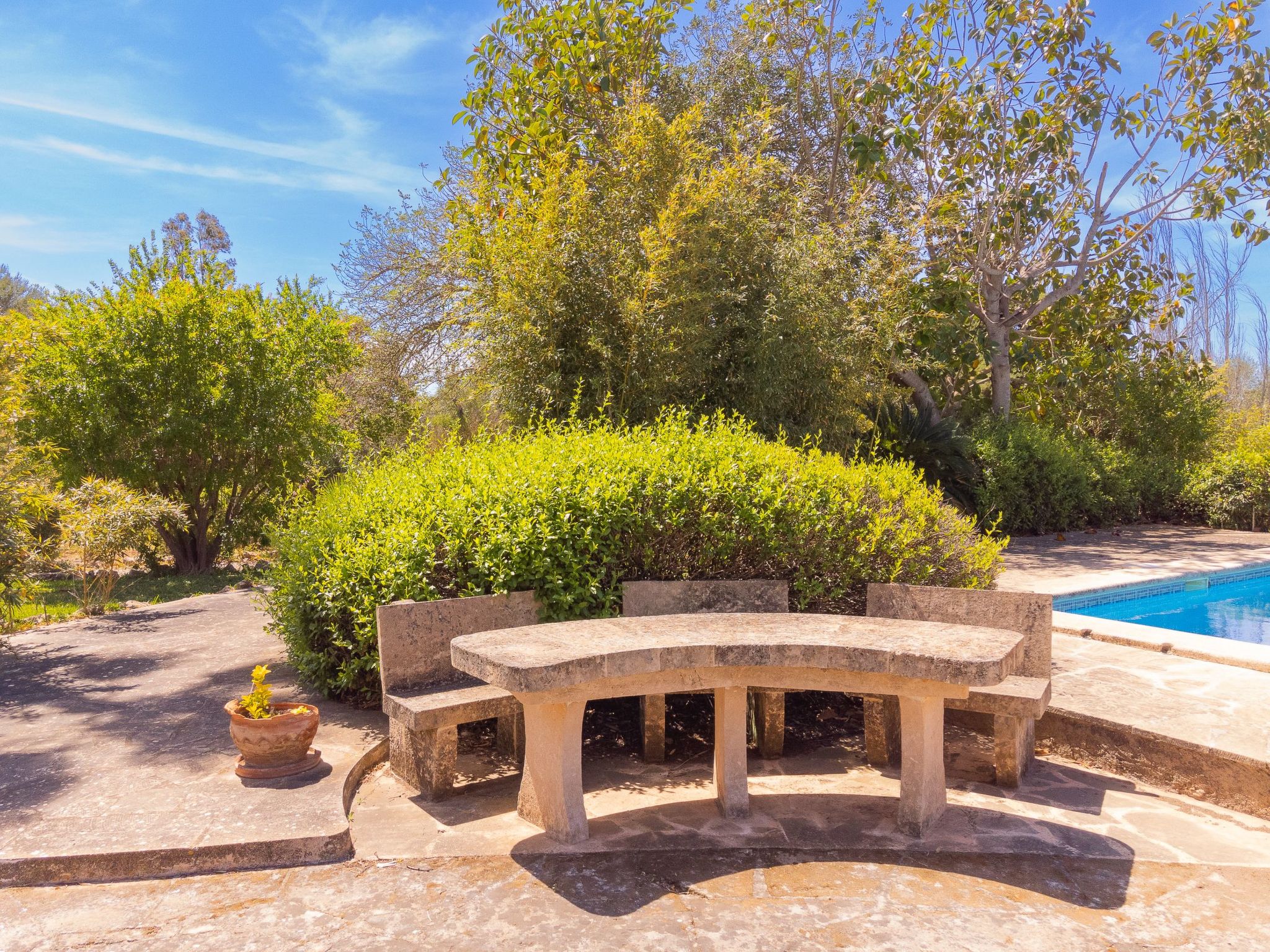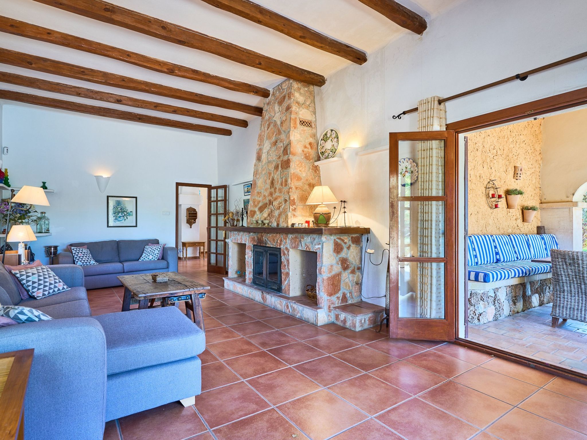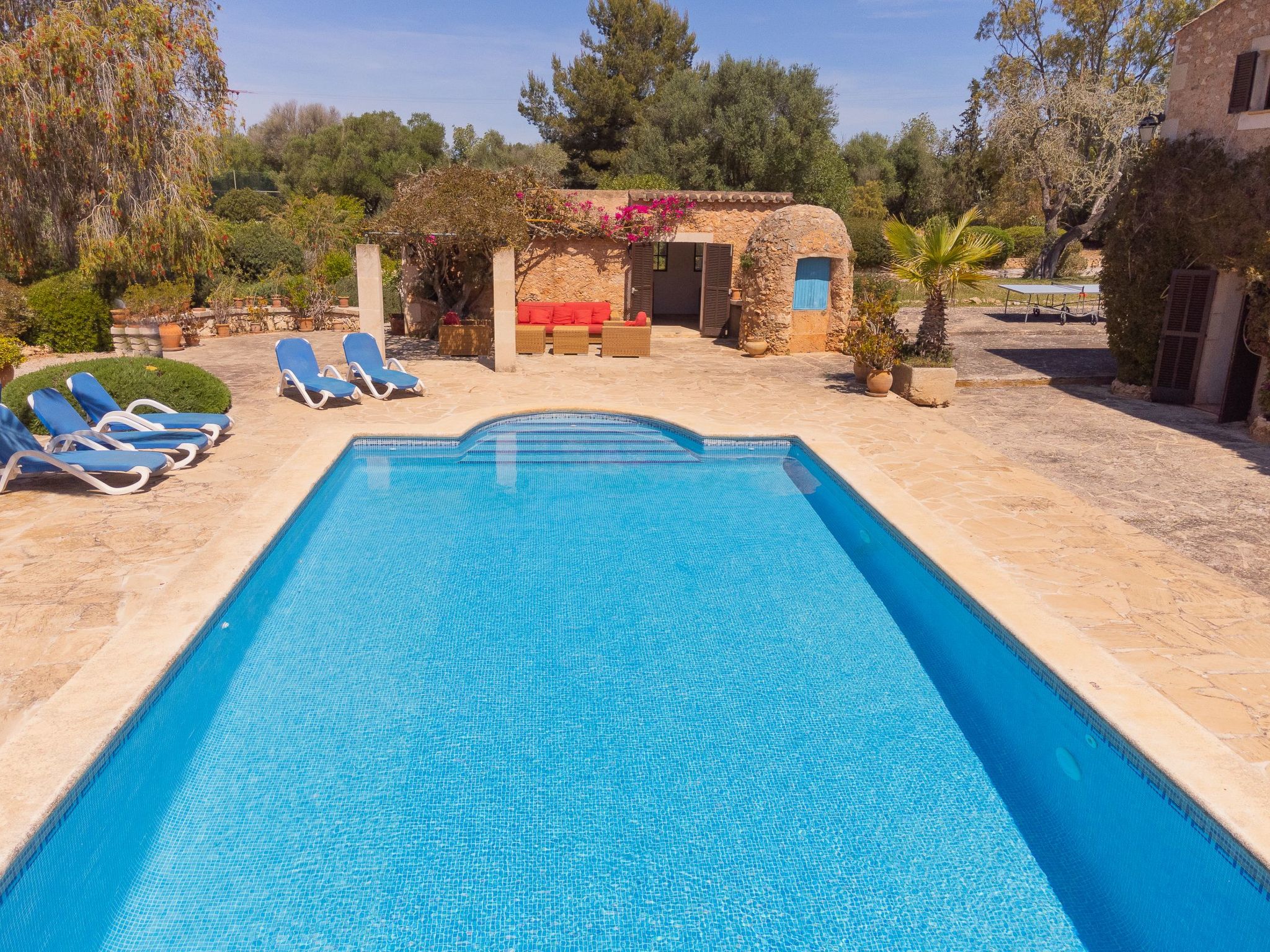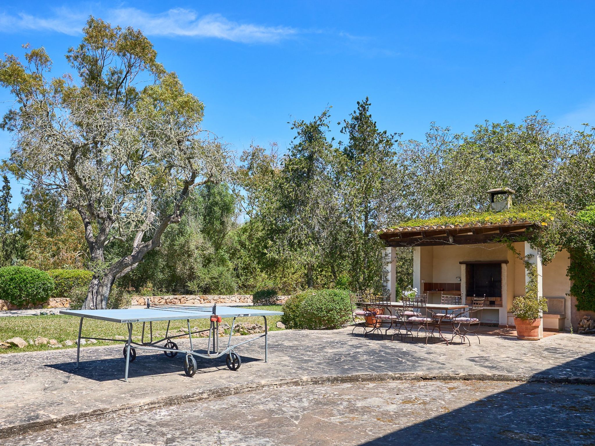 The outdoor area is very beautiful and spacious. With a large swimming pool, terraces, garden, which is partly landscaped and partly natural. There is a brick barbecue and several areas where you can dine and relax.