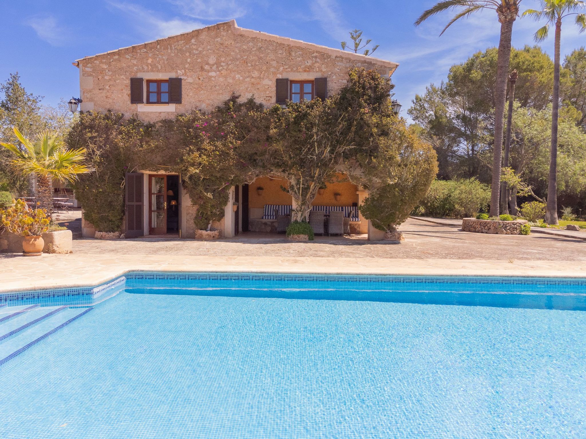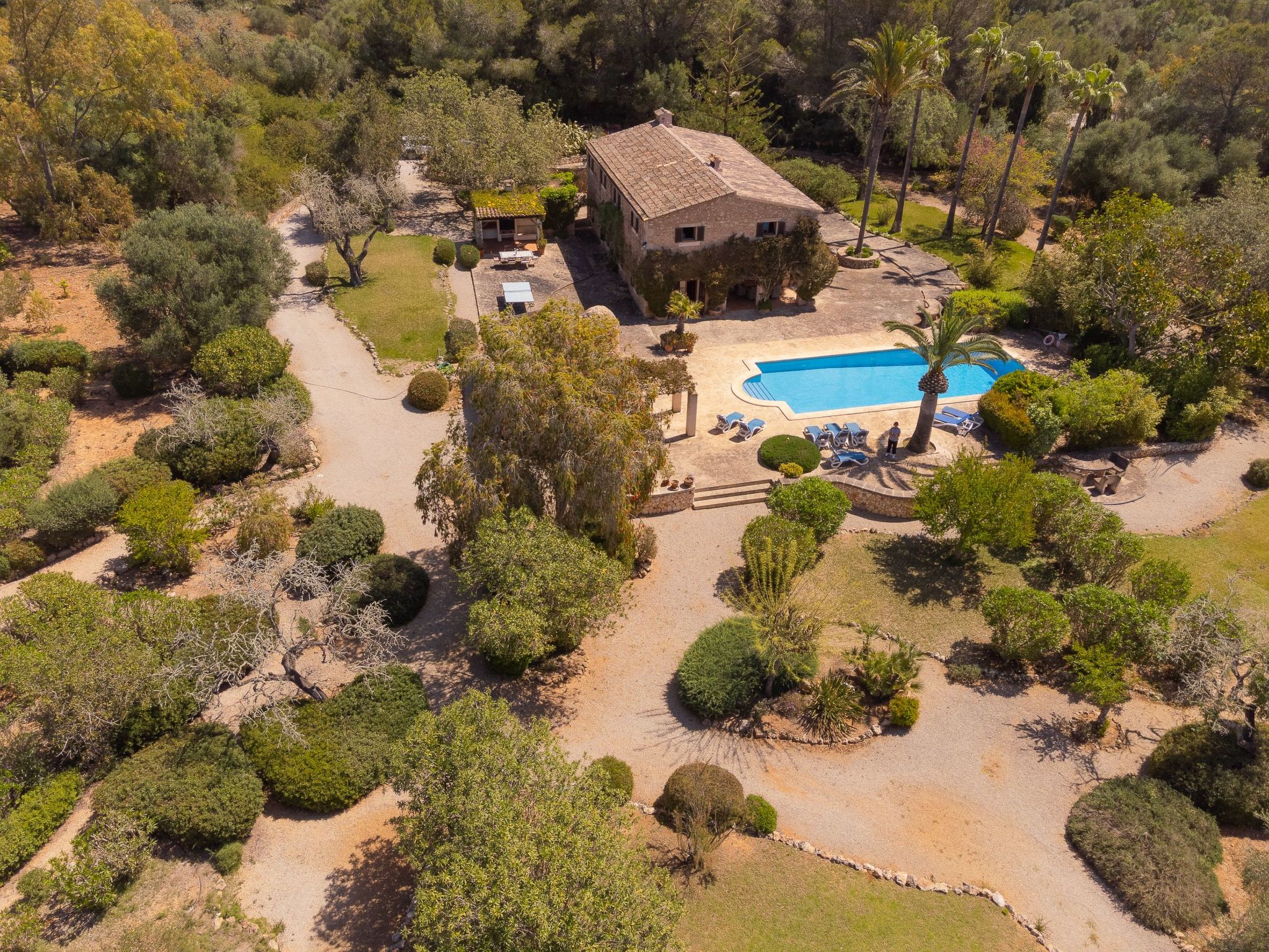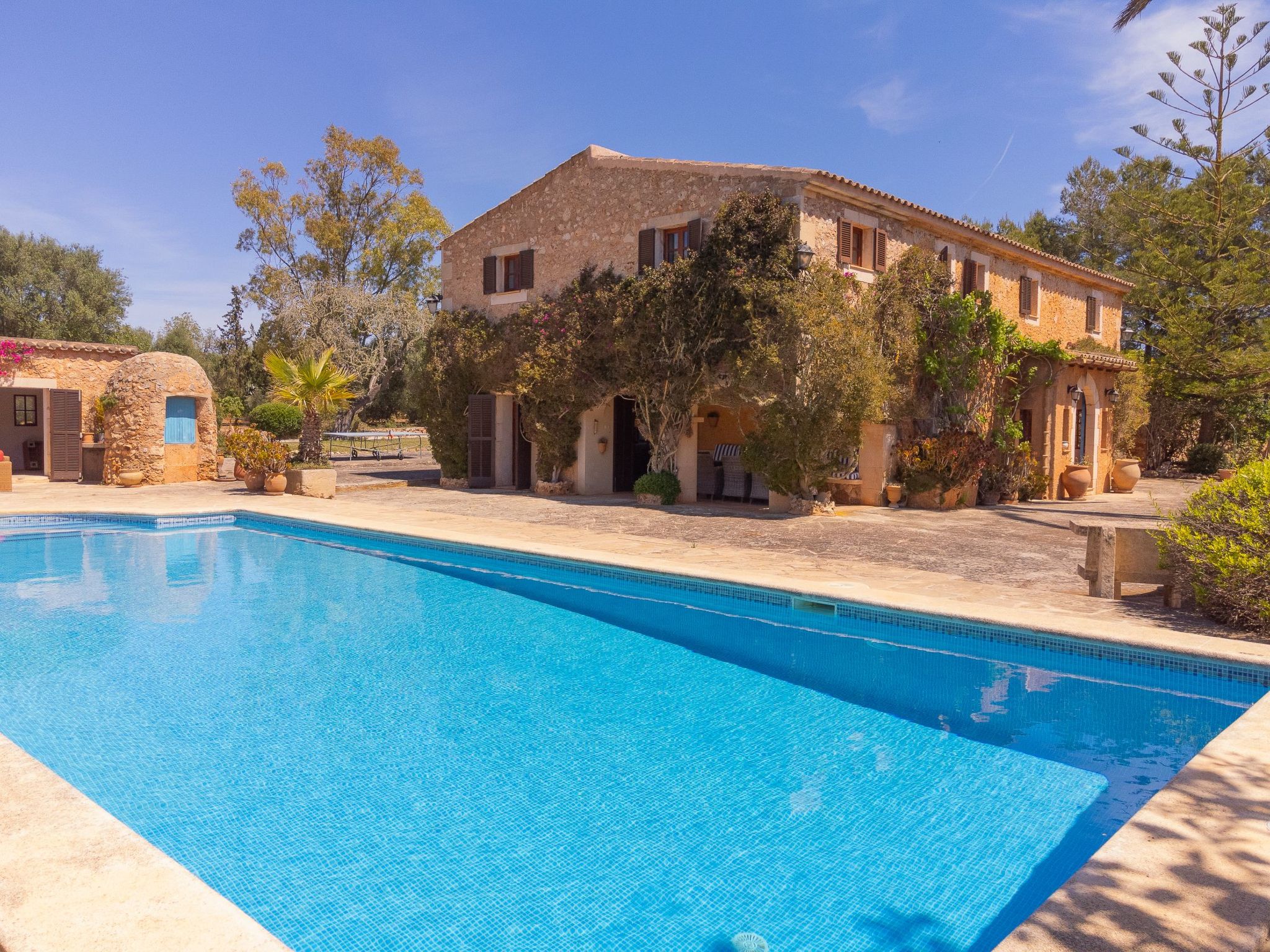 Large rustic finca in Mallorcan style for 8 people. Large pool, terraces and garden between Cas Concos y Santanyi.