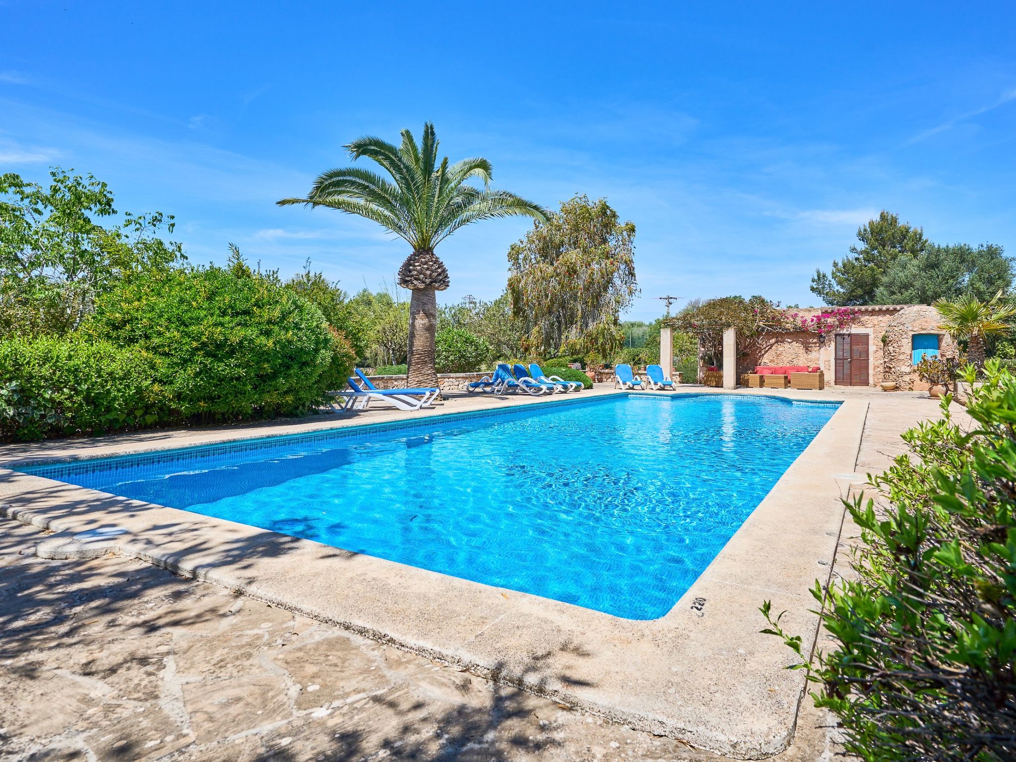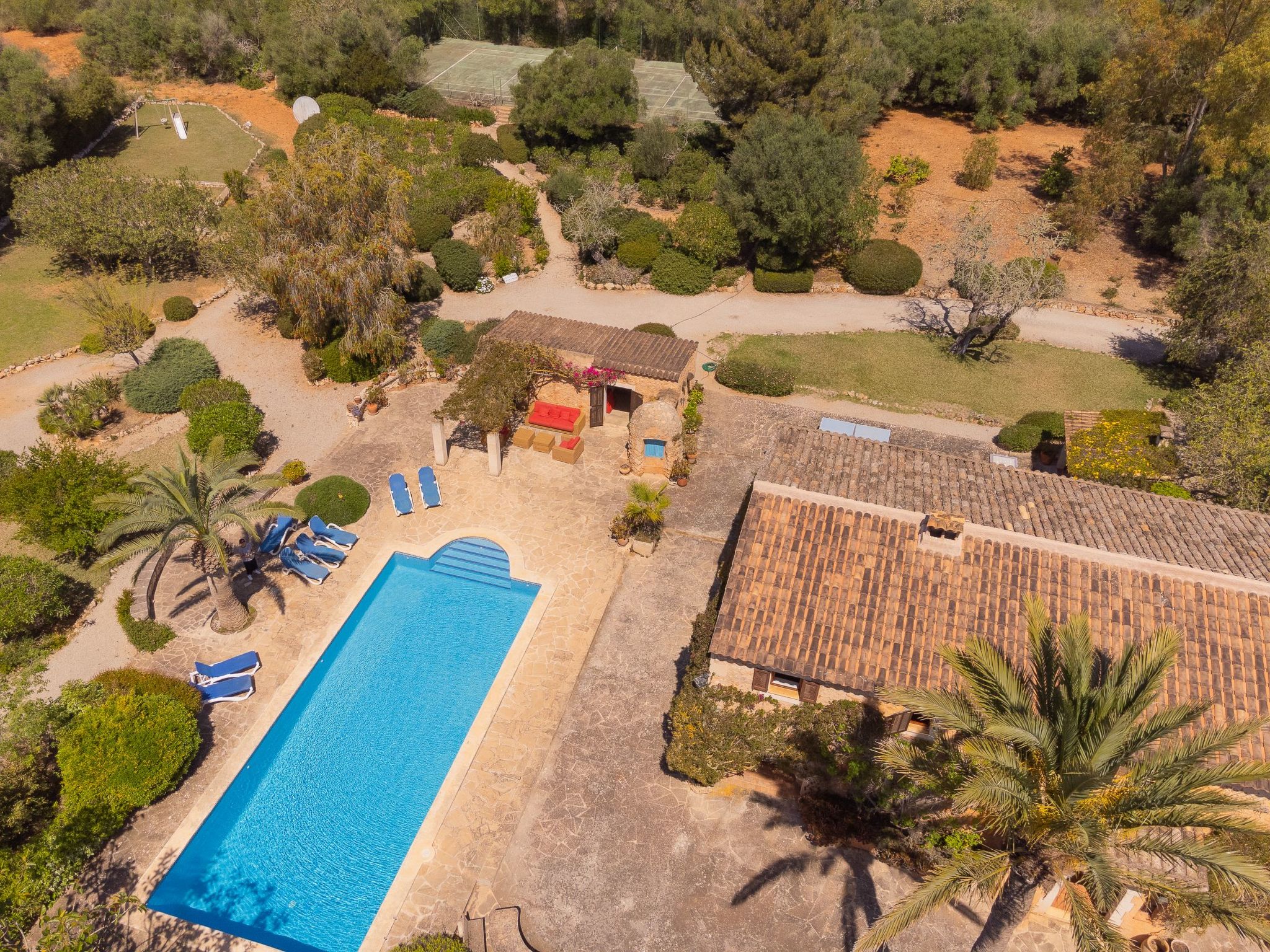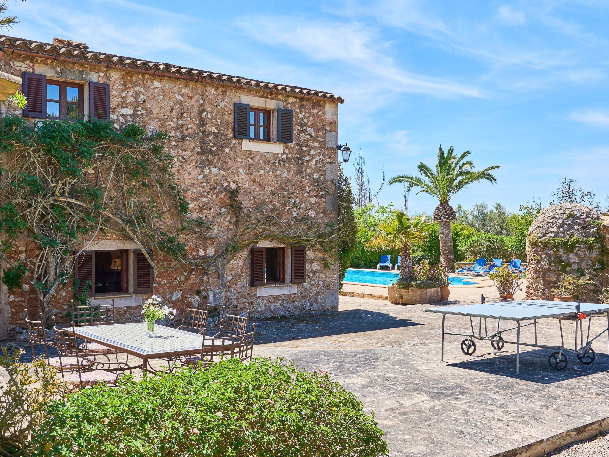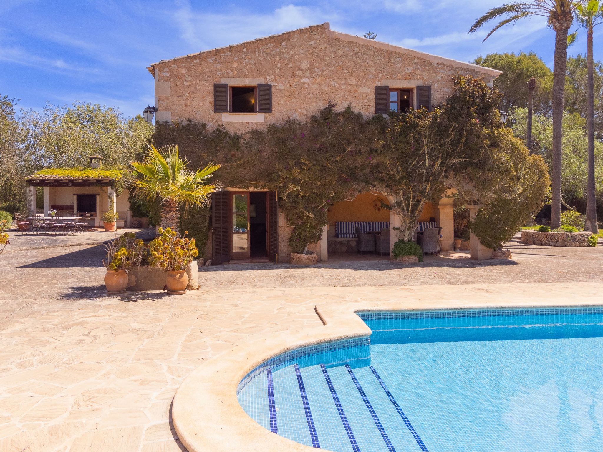 Large rustic finca in Mallorcan style for 8 people. Large pool, terraces and garden between Cas Concos y Santanyi.