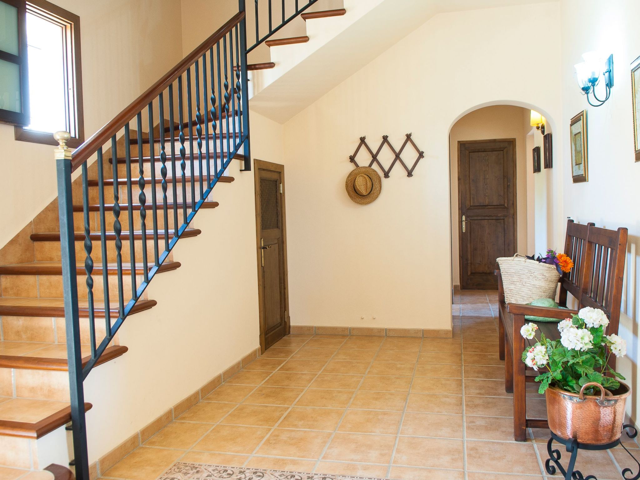 The spacious outdoor area offers sunny areas as well as covered terraces, a front garden with lawns, some palm and carob trees and a large sun terrace. The covered terrace overlooking the pool area has a table and chairs. Perfect for al fresco dining. With the brick-built outdoor barbecue, which can be reached from this terrace as well as from the kitchen, a delicious dinner can be prepared in no time at all. The beautiful view of the idyllic landscape and the hilly hinterland is a wonderful place to switch off and relax. The large pool with Roman steps (10m x 5m. - depth min. 1m. max. 2 m.) is surrounded by a large terrace with sun loungers. Perfect for enjoying the long summer days. The enclosed plot offers parking for several vehicles.