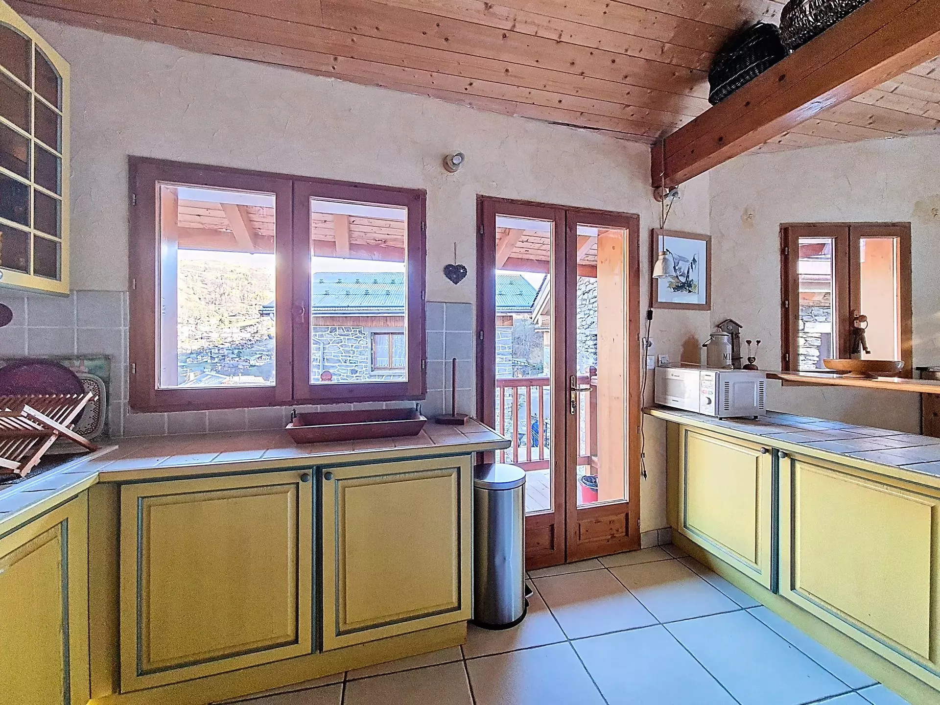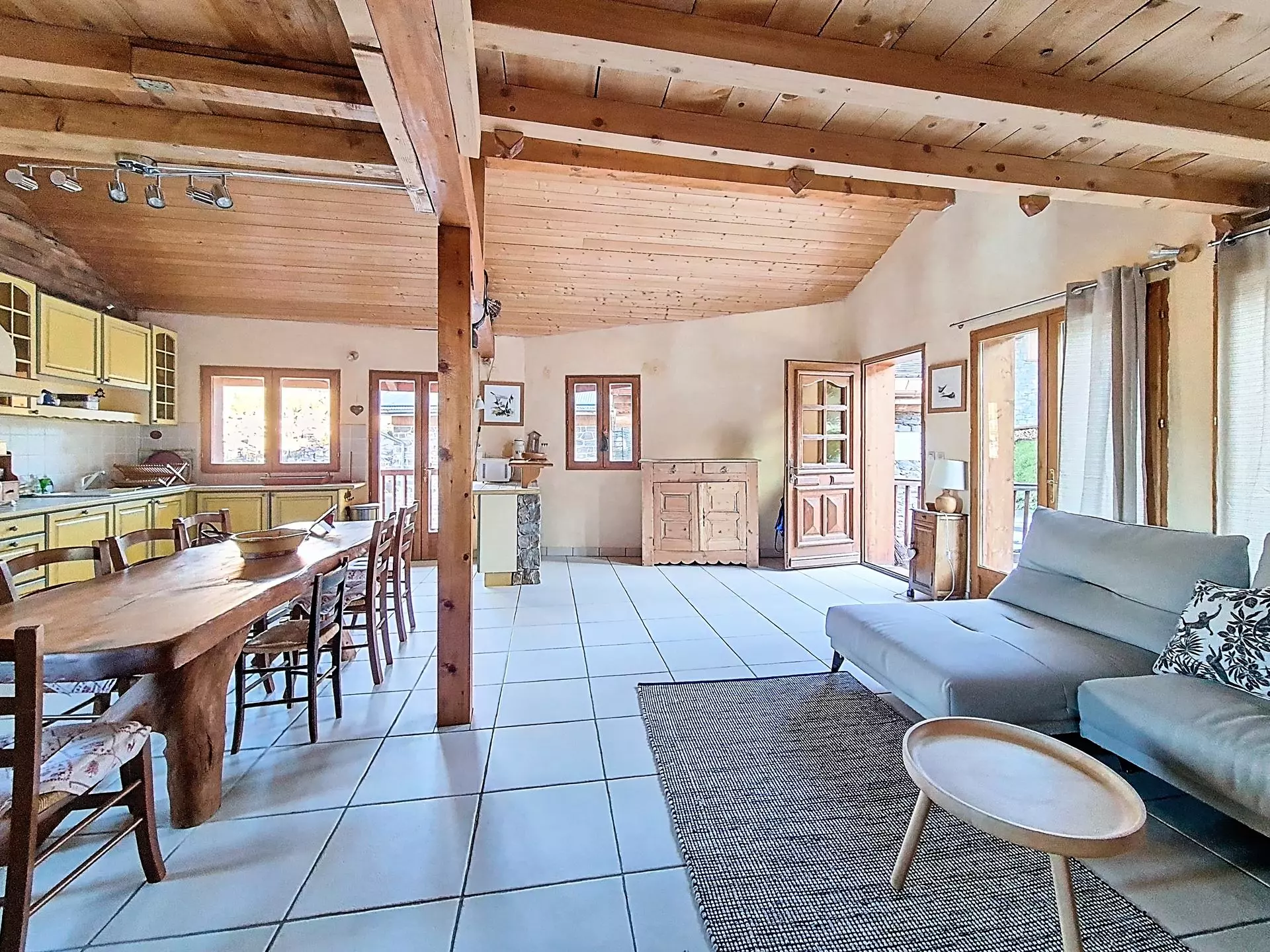 Salle à manger avec accès direct sur la terrasse qui a vue sur le cochet.