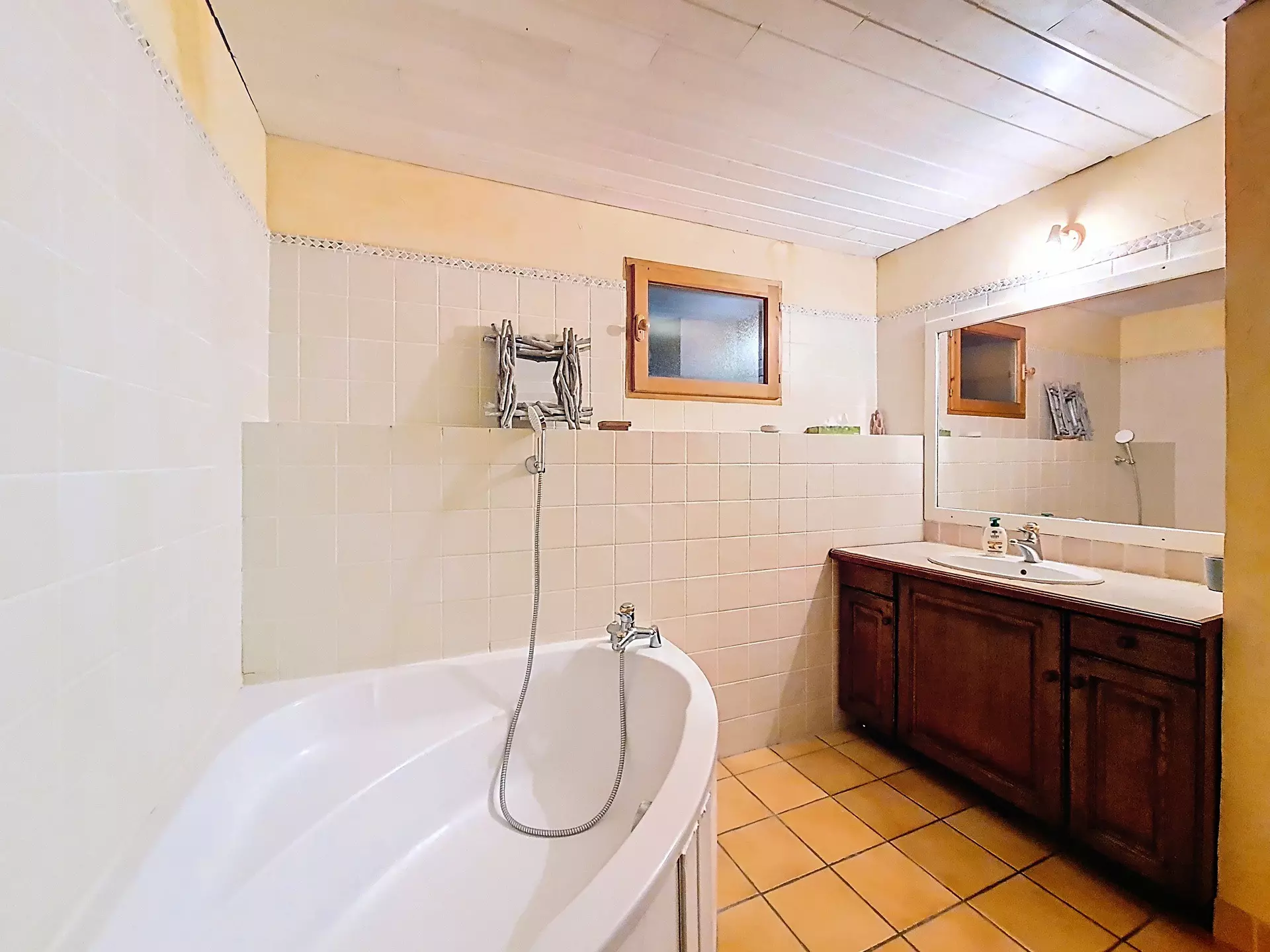Salle de bains avec baignoire.