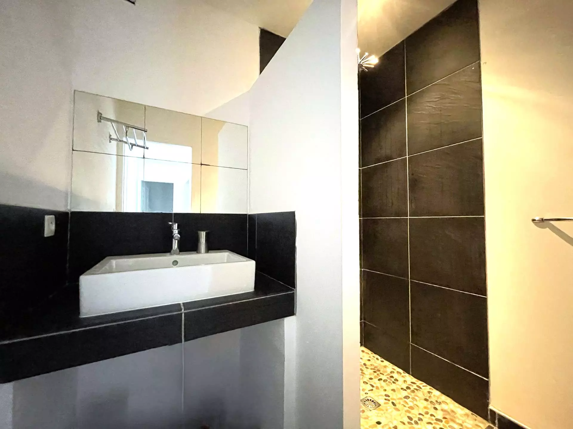 La villa dispose de trois salles d’eau, dont deux attenantes aux chambres double, ainsi que de deux WC indépendants, offrant une organisation fonctionnelle et confortable pour plusieurs occupants.