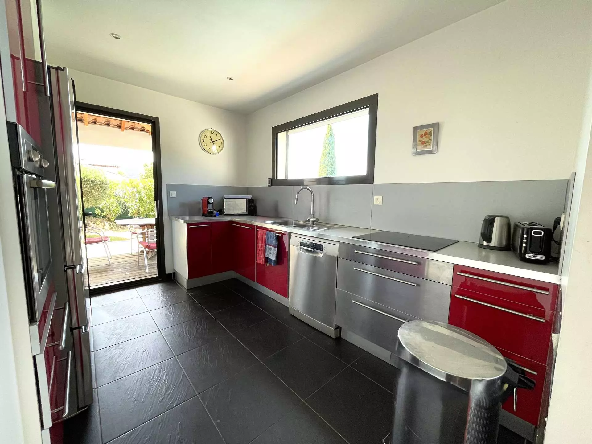 Pour votre confort : climatisation dans le séjour, télévision, plaque de cuisson, four, réfrigérateur combiné, cafetière, grille pain, bouilloire, mobilier d'extérieur, piscine privative...