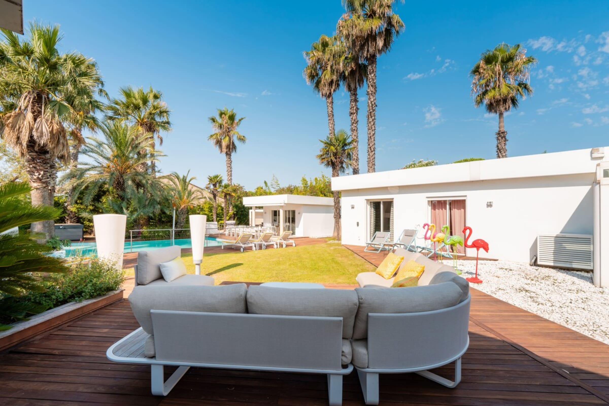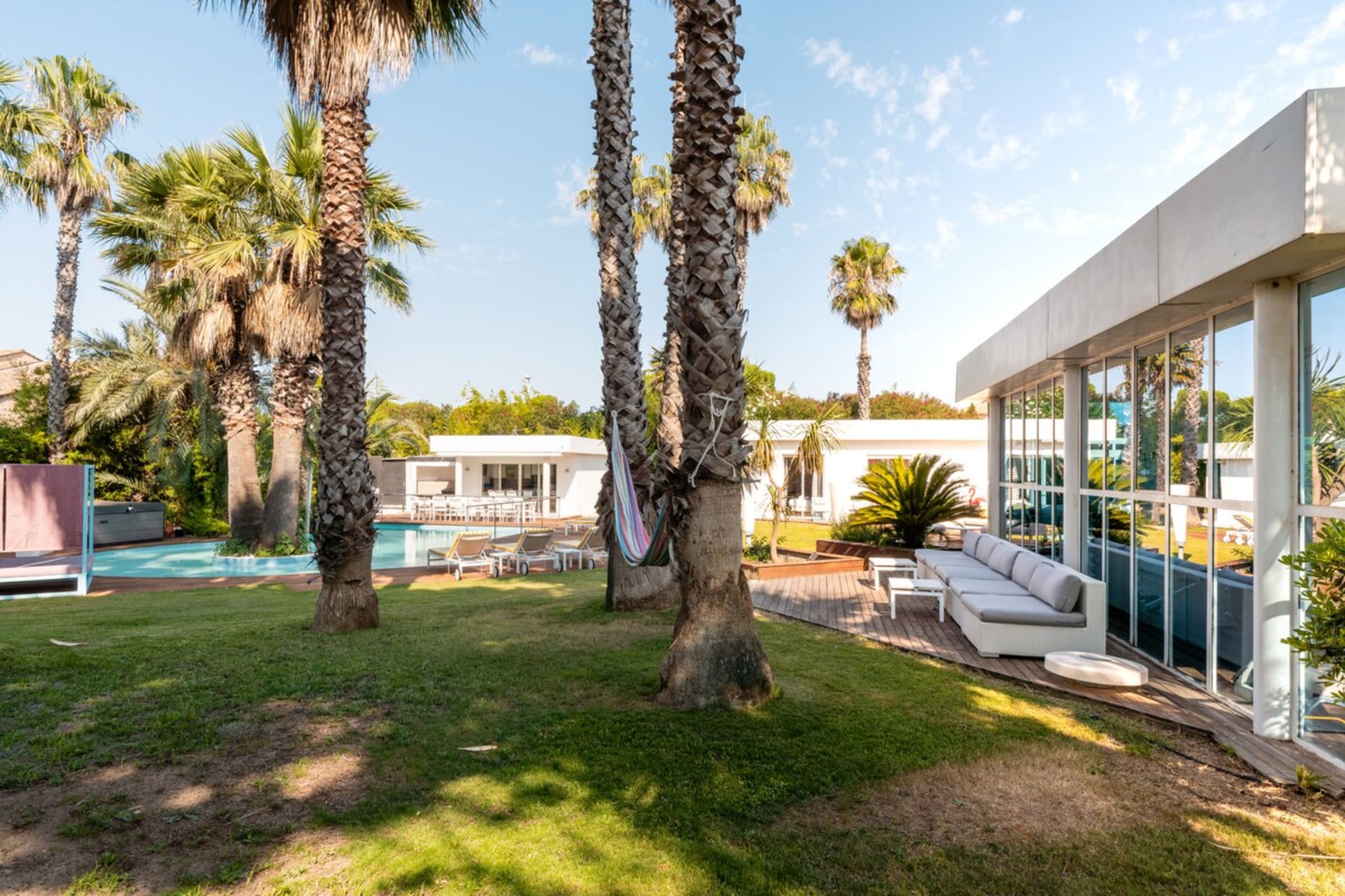 Avec ses 8 chambres somptueusement décorées, "Summer Wind" est parfaite pour ceux qui recherchent des moments familiaux et la tranquillité. Les intérieurs dynamiques et colorés de la villa reflètent du mode de vie méditerranéen. En sortant, le vaste jardin, orné de nombreux palmiers, entoure une piscine de 12x5m avec une île dotée de deux palmiers, une cuisine d'été et un jacuzzi – une véritable oasis de détente.
