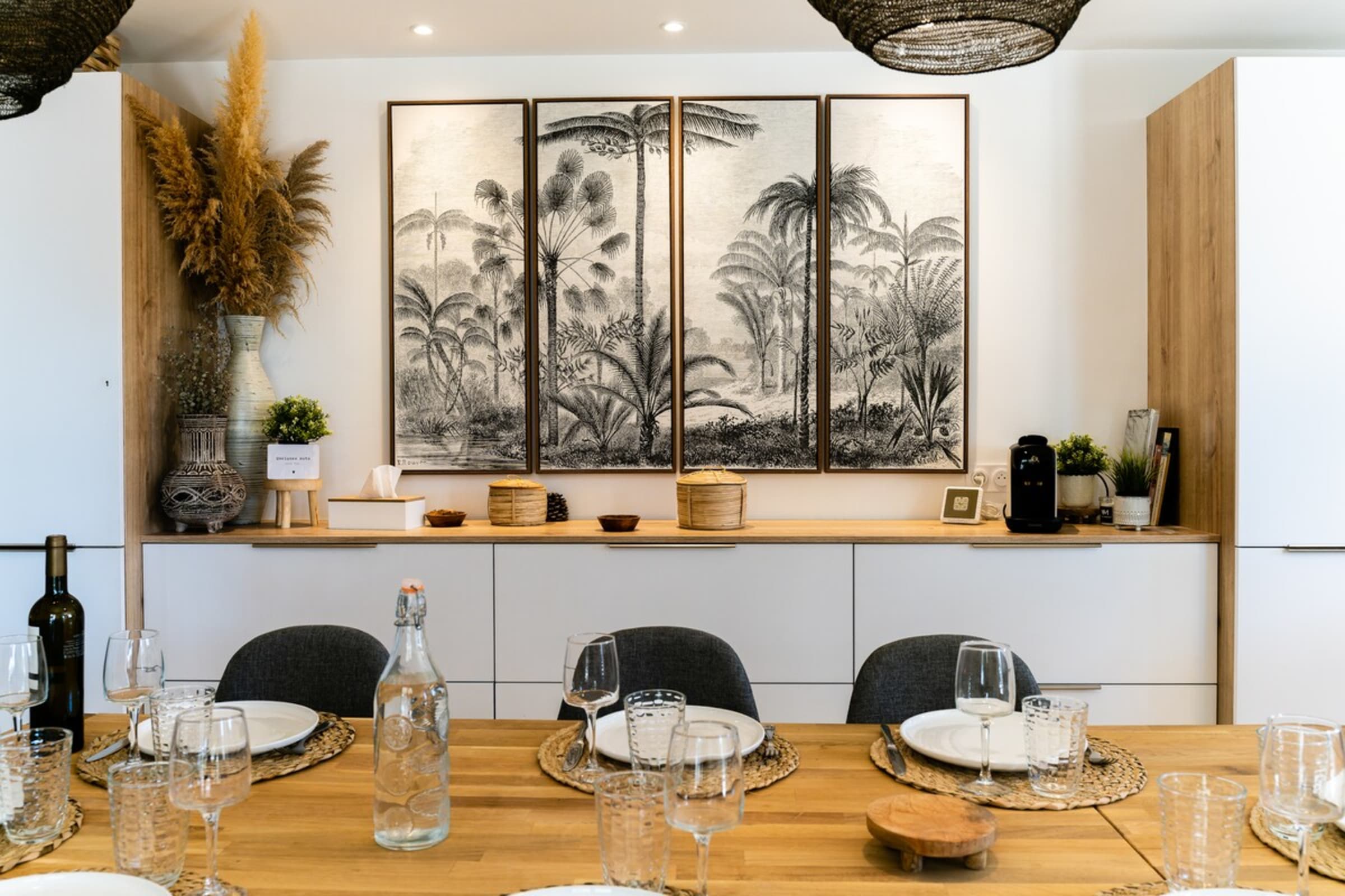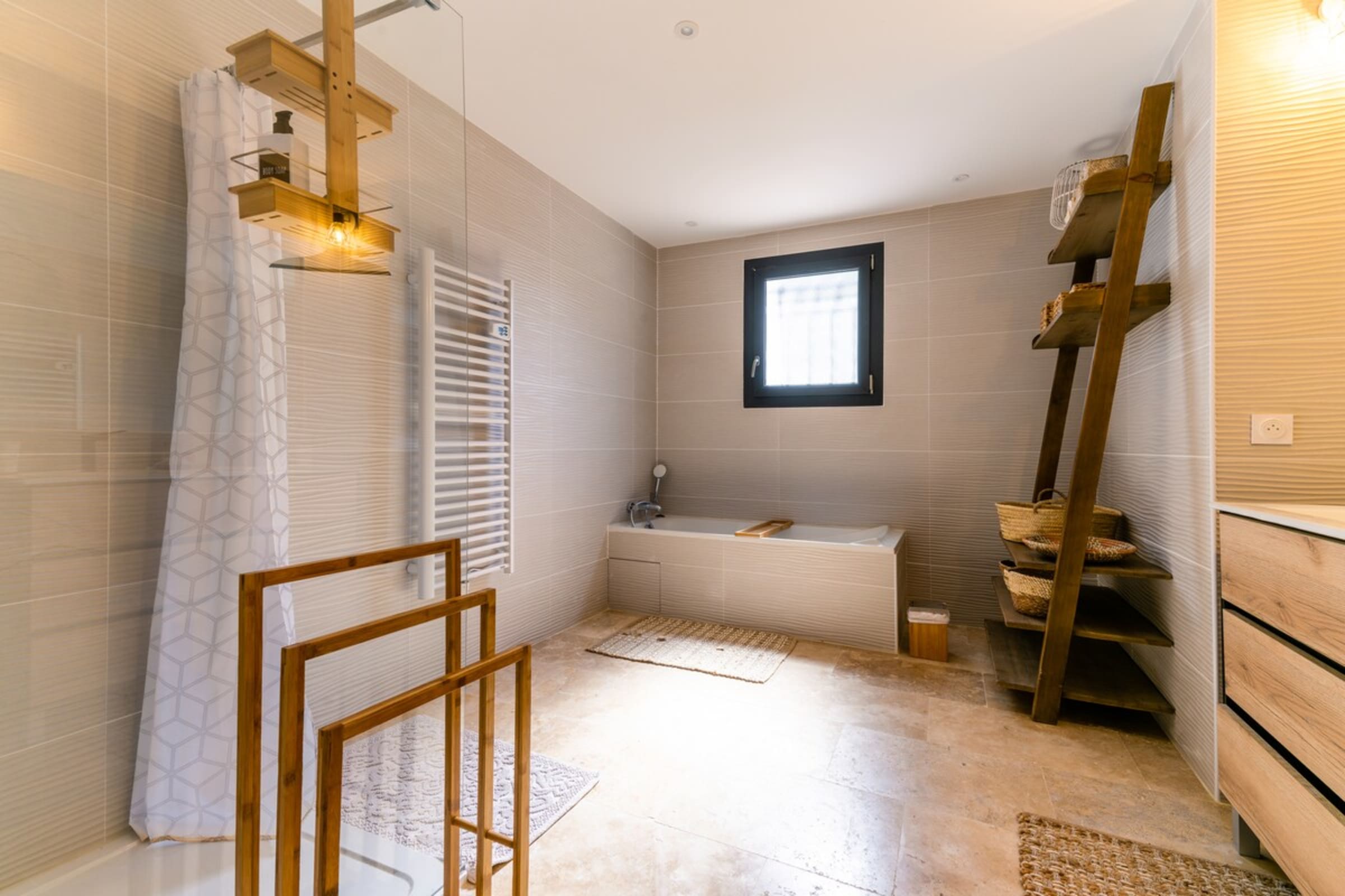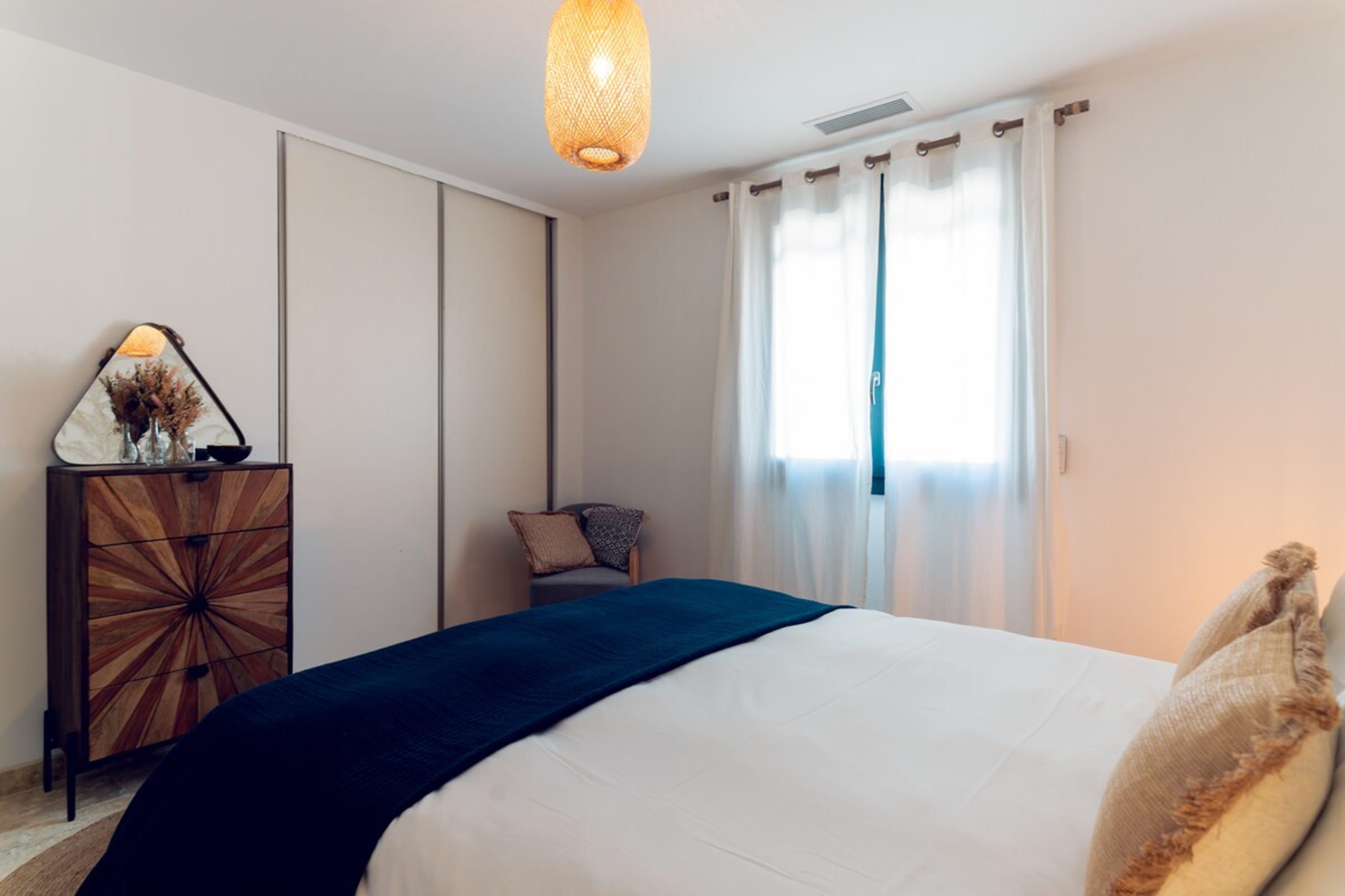 À environ 500 m de la mer (5 min à pied), la Villa Margot vous offre une parenthèse chic et sereine. Son bassin en pierre de Bali installe une ambiance de resort : premières brasses au petit matin, siestes à l’ombre, apéritifs dorés au bord de l’eau. À l’intérieur, mobilier haut de gamme, équipements soignés et belles finitions composent un cadre élégant, pensé pour des vacances faciles et mémorables.