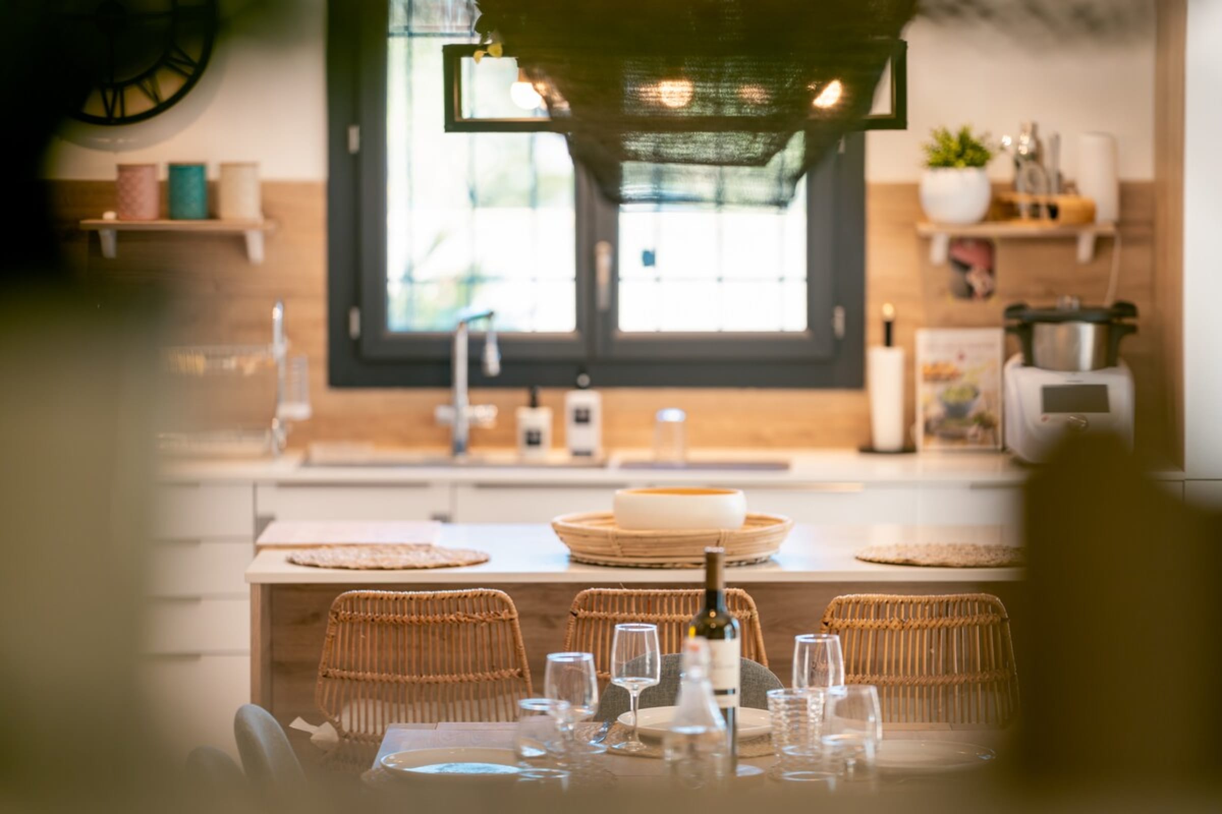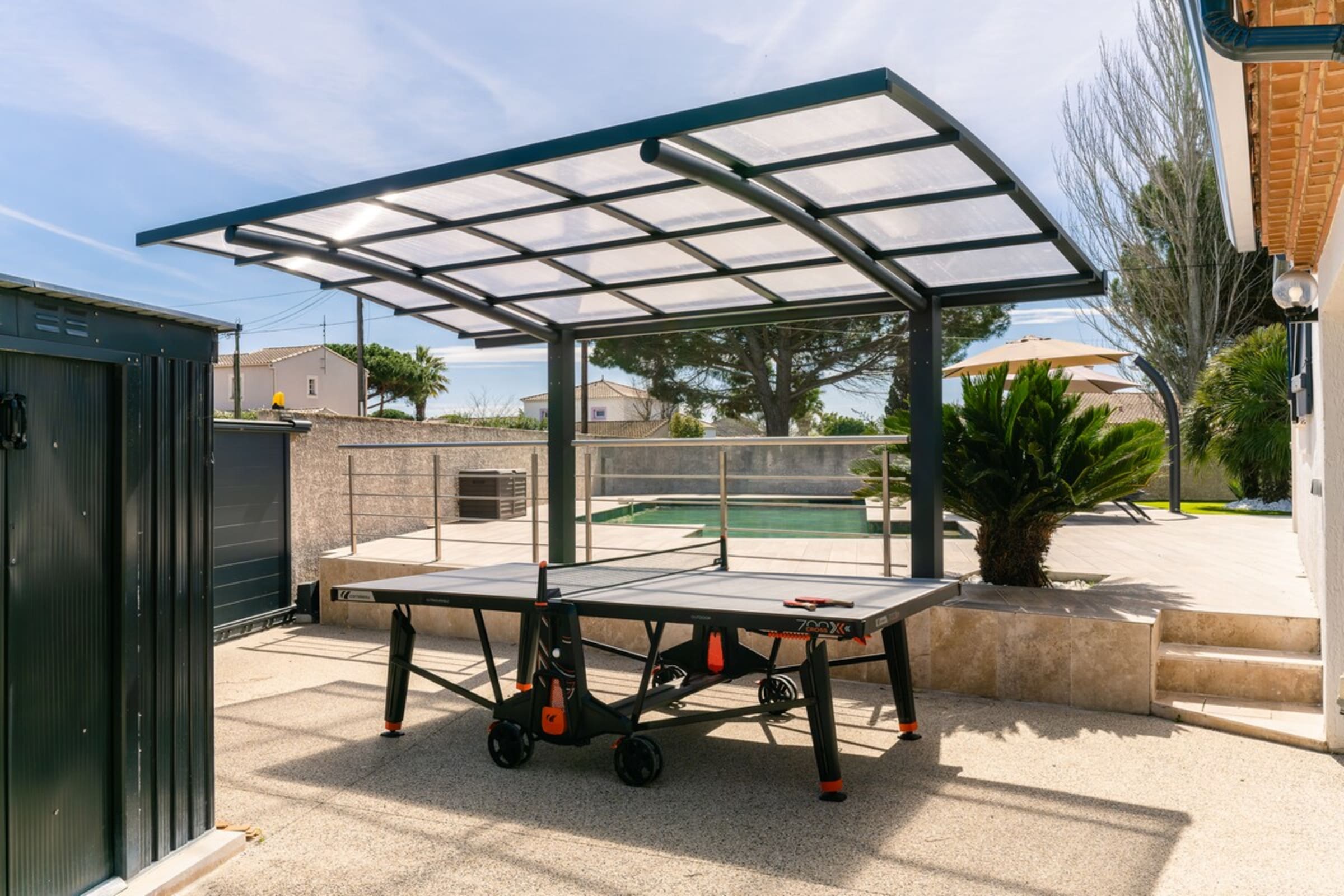 Conçue pour les familles et les tribus d’amis, la maison multiplie les moments de jeu : boulodrome pour des parties de pétanque, table de ping-pong pour des défis express, jeux à disposition pour les enfants, en chambre comme au jardin. Le vaste séjour ouvert sur la terrasse devient le cœur de vie : déjeuners qui s’étirent, soirées étoilées et douceur de vivre. La cheminée intérieure est décorative uniquement ; son usage est interdit pour des raisons de sécurité.