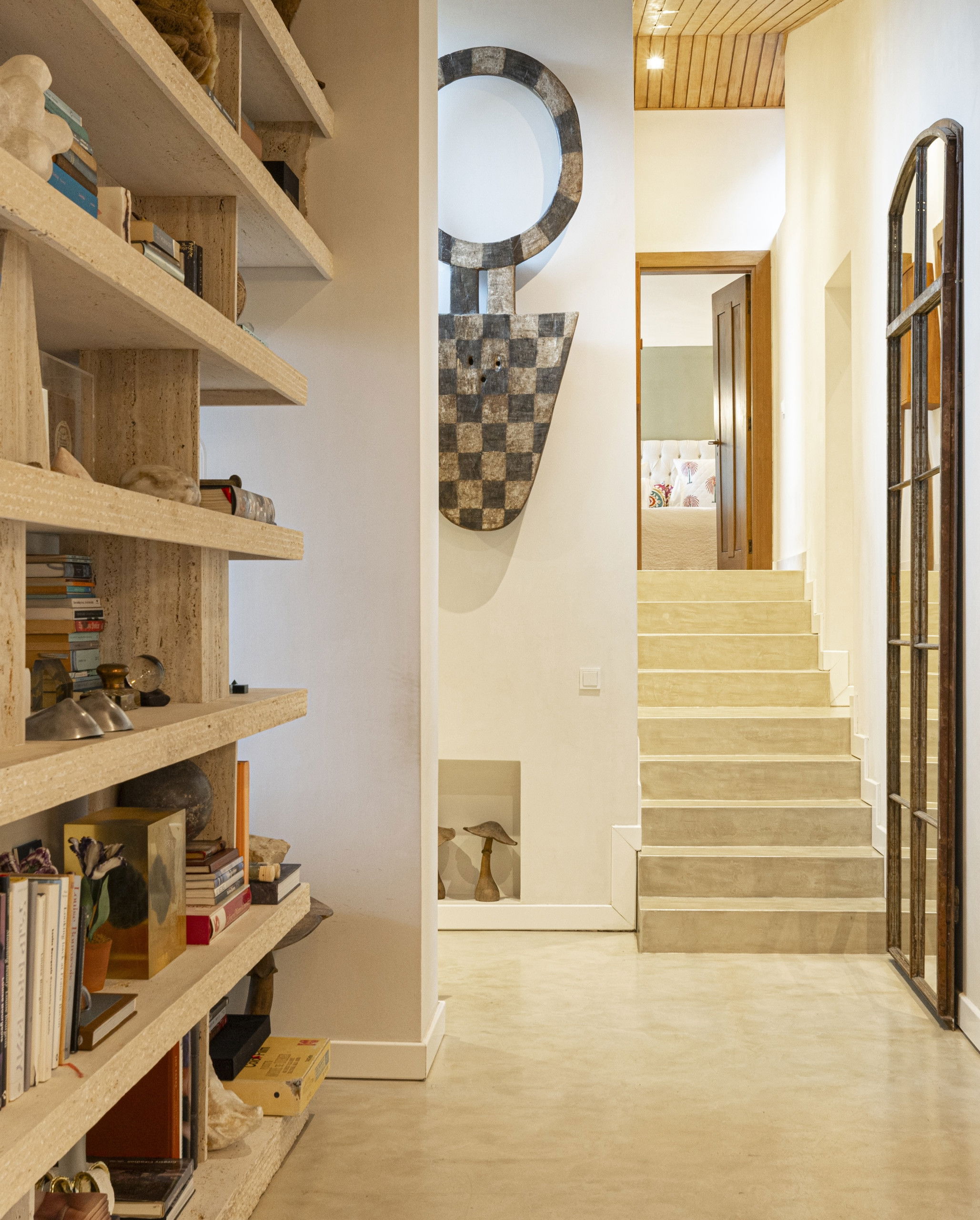 This villa also boasts a painting studio. Outside, a charming staircase leads down to a stone paved sun kissed area surrounding an aquamarine tiled swimming pool.