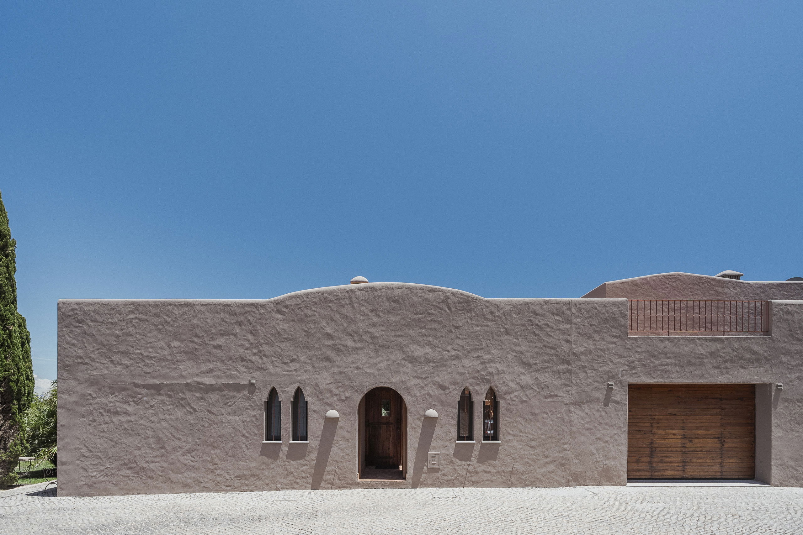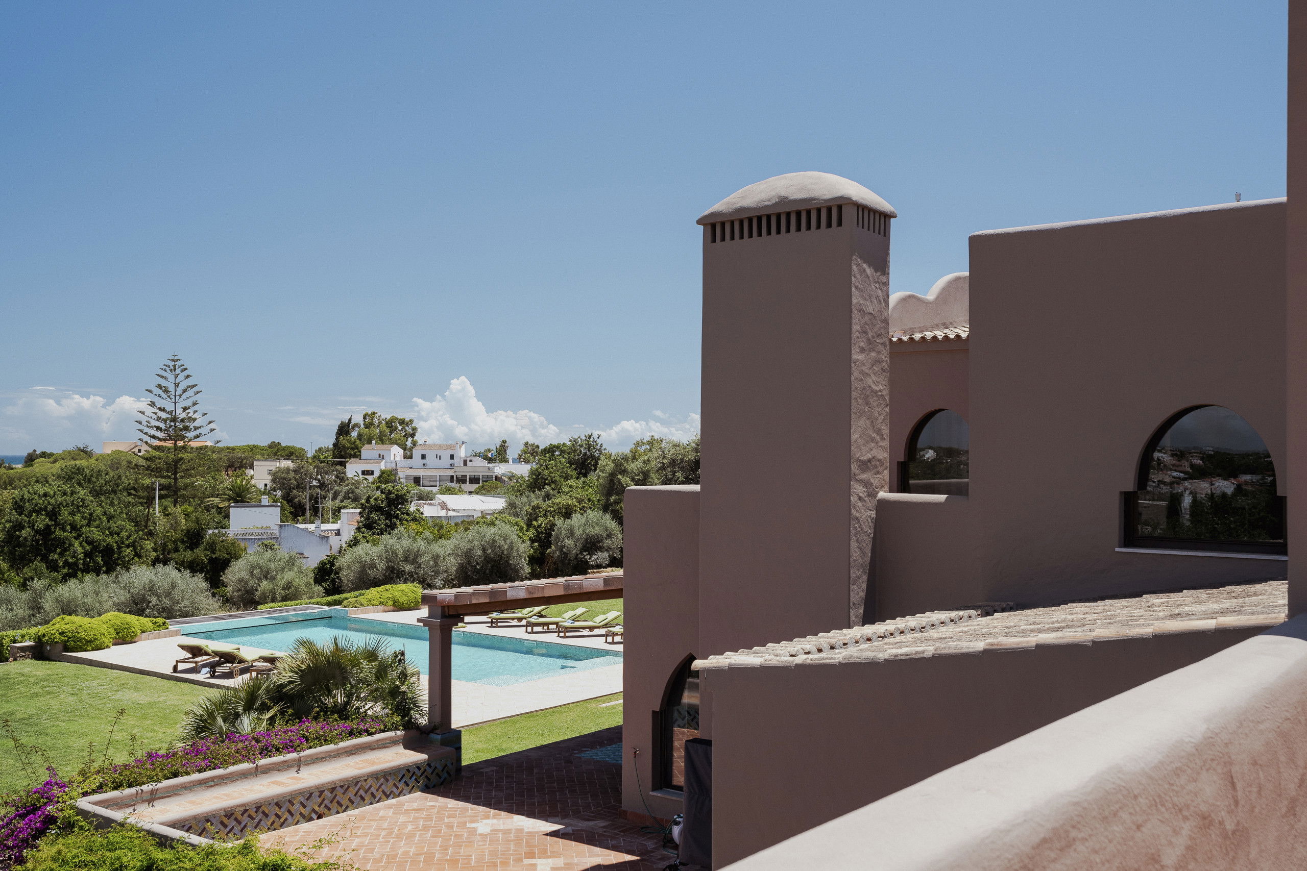 Une villa à couper le souffle inspirée par l'architecture mauresque de la péninsule ibérique, située sur un coteau doux avec une vue panoramique sur la mer.