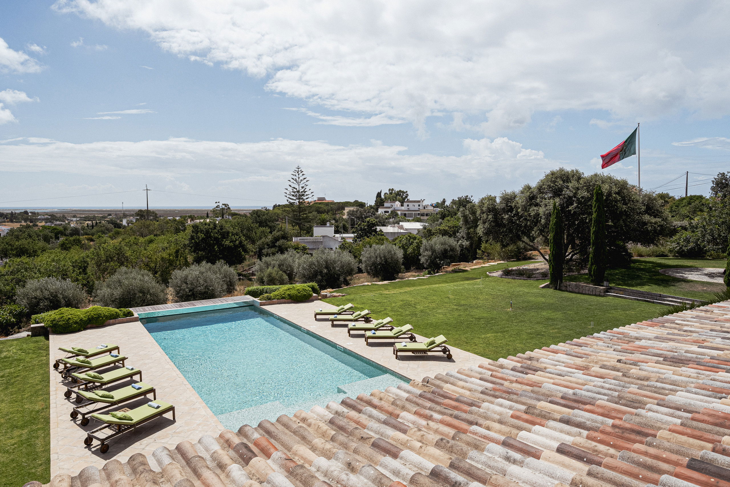 Totalisant 7000m², avec 6 chambres doubles avec salle de bain privative réparties sur 2 maisons, entourées de près d'un hectare de jardins soignés, avec des terrasses ensoleillées privées et une grande piscine à filtration au sel, offrant des vues imprenables sur la côte et l'île d'Ilha da Armona au sud et la montagne de Monte Figo au nord.