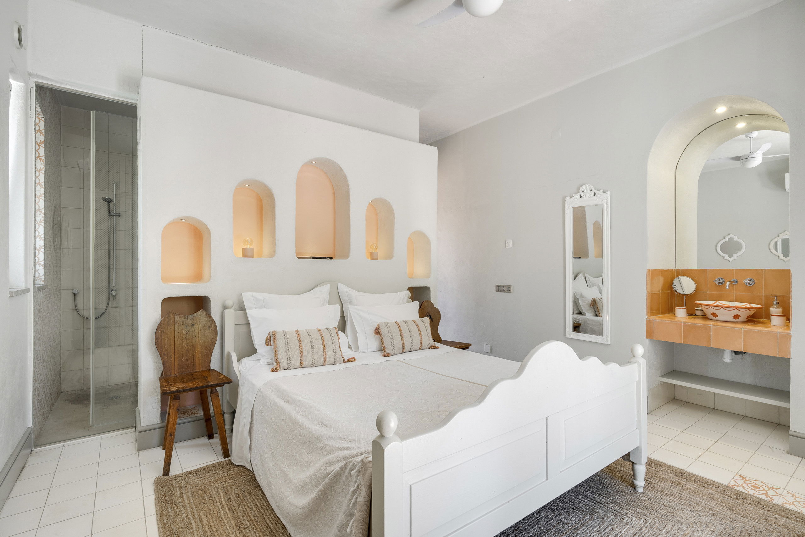L'intérieur est conçu de manière intéressante avec des détails tels que des arches mauresques, des plafonds voûtés, des carrelages, des textiles colorés et des portes en bois massif à double battant qui vous transportent dans un autre monde.