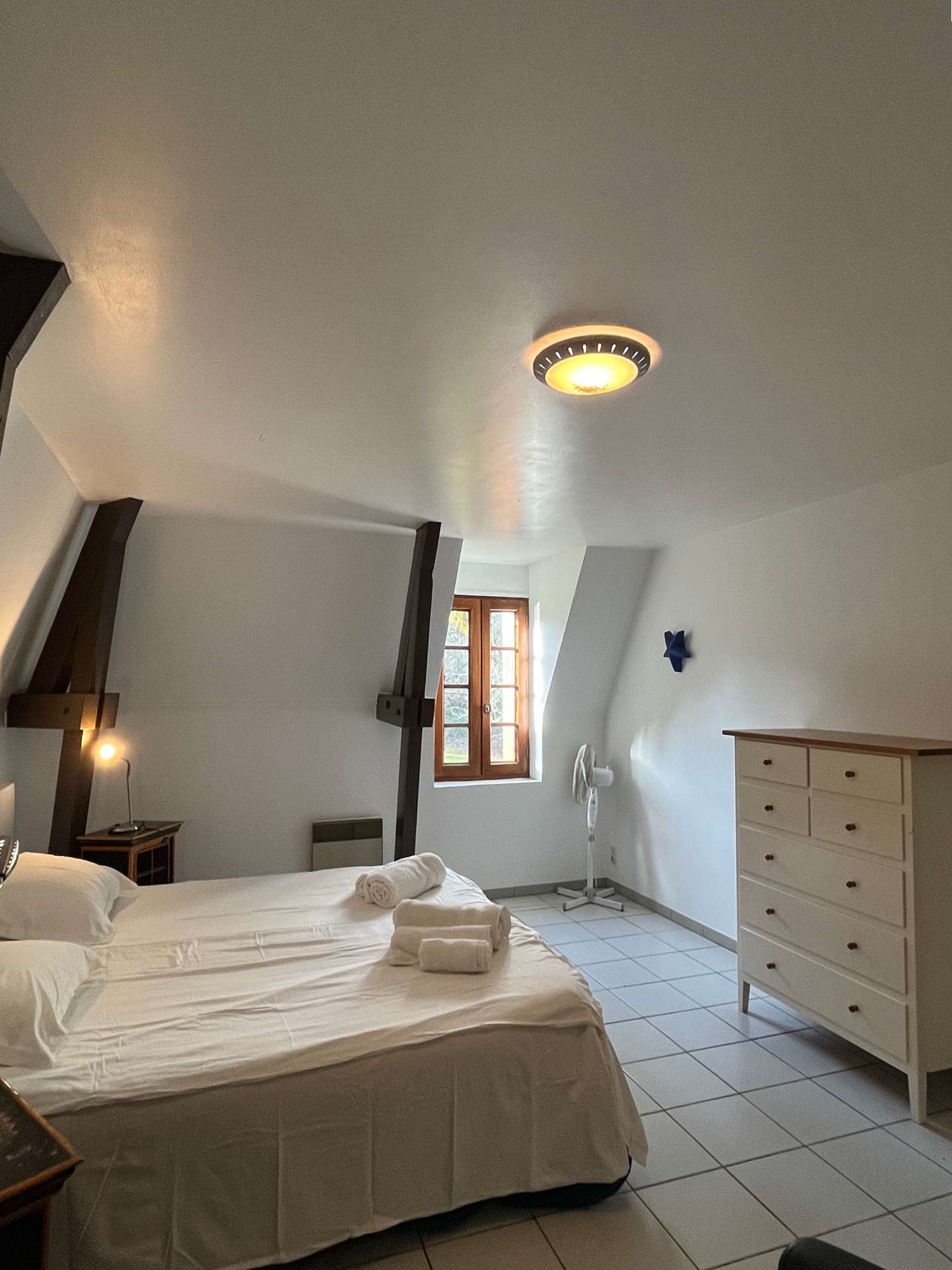 La première dispose d'un grand lit double de 180x200, la deuxième, particulièrement spacieuse, est aménagée en deux parties et propose deux lits doubles de 140x200cm, tandis que la troisième chambre offre deux lits simples, parfaite pour les enfants. une grande salle de bain avec baignoire, douche et toilettes dessert ces chambres.