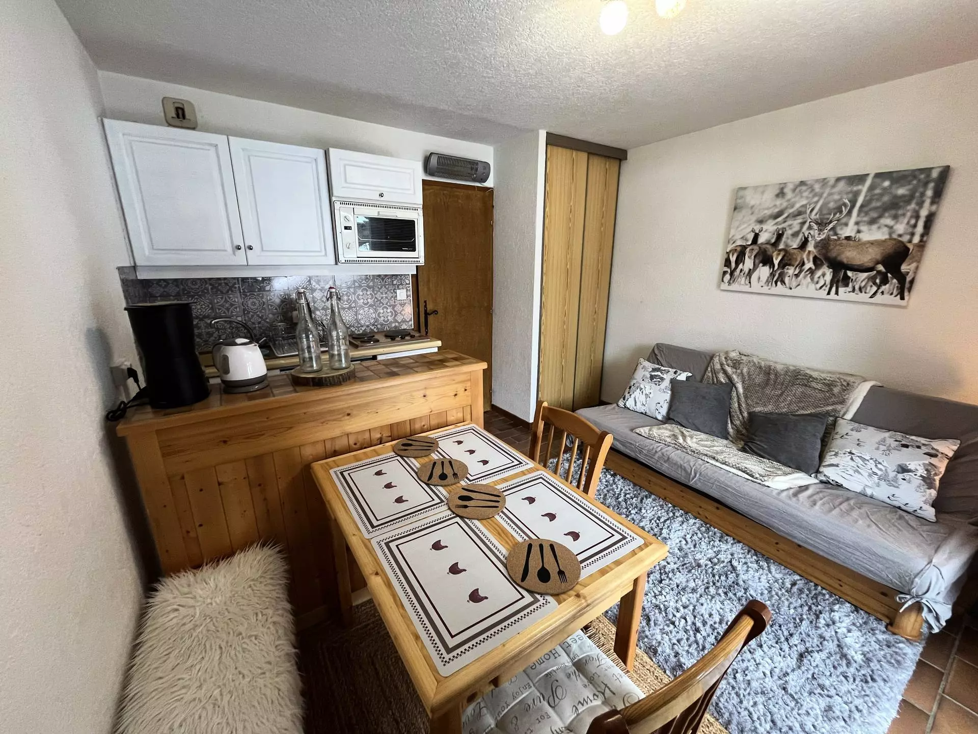 Charmant appartement 2 pièces de 26m², situé en rez-de-chaussée, avec coin montagne, idéal pour un séjour à la montagne en toute saison. Il se compose d’une chambre avc lit double 140/190, d’un coin montagne, d’une salle de bain, de WC séparés, ainsi que d’une cuisine ouverte sur un séjour lumineux avec canapé convertible.